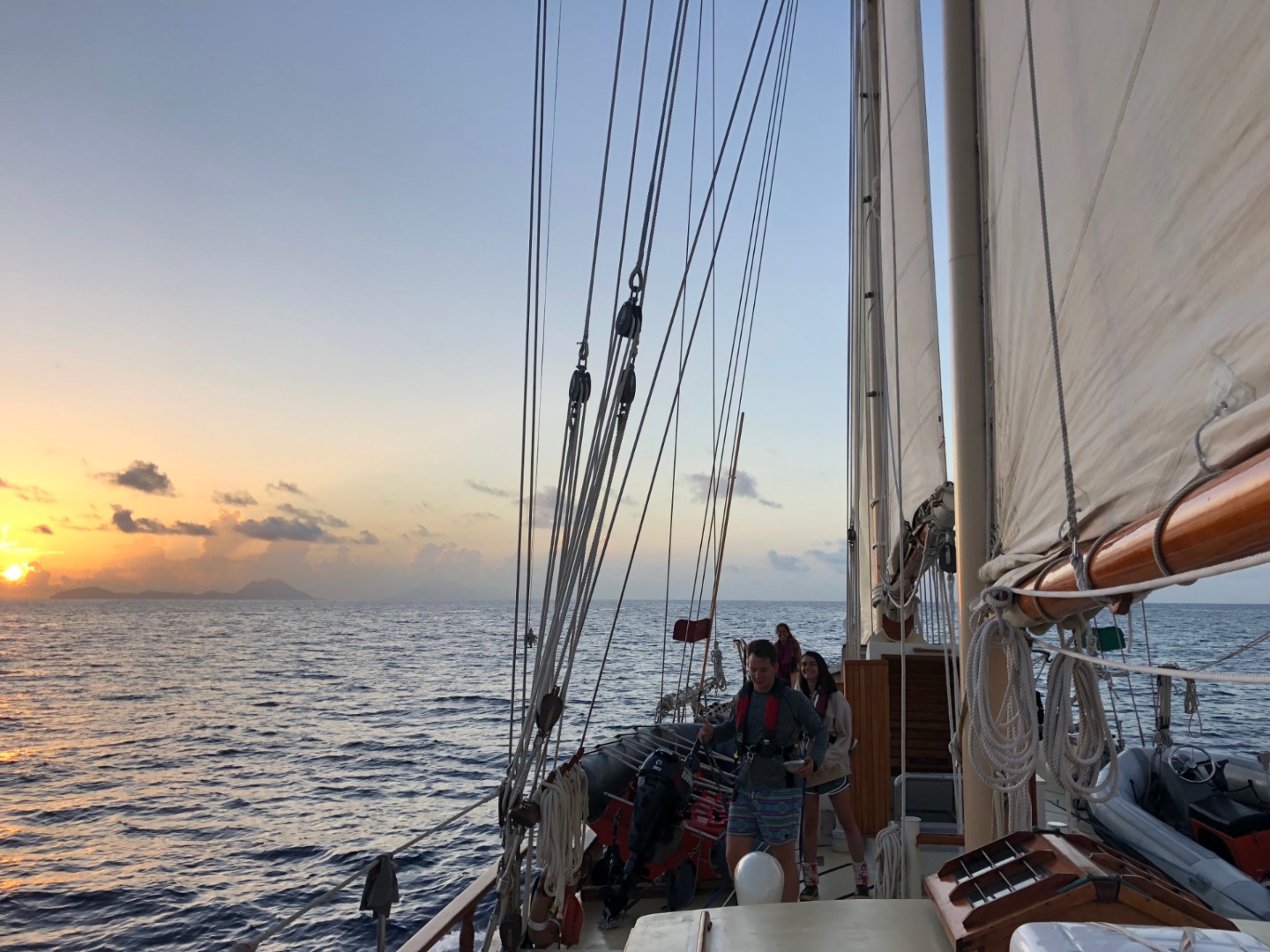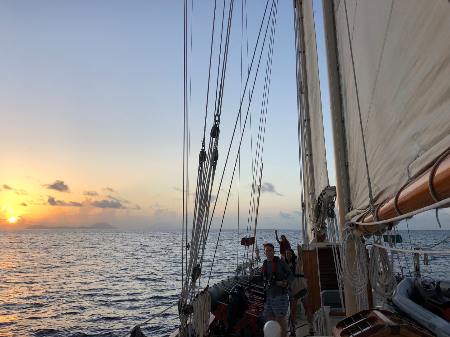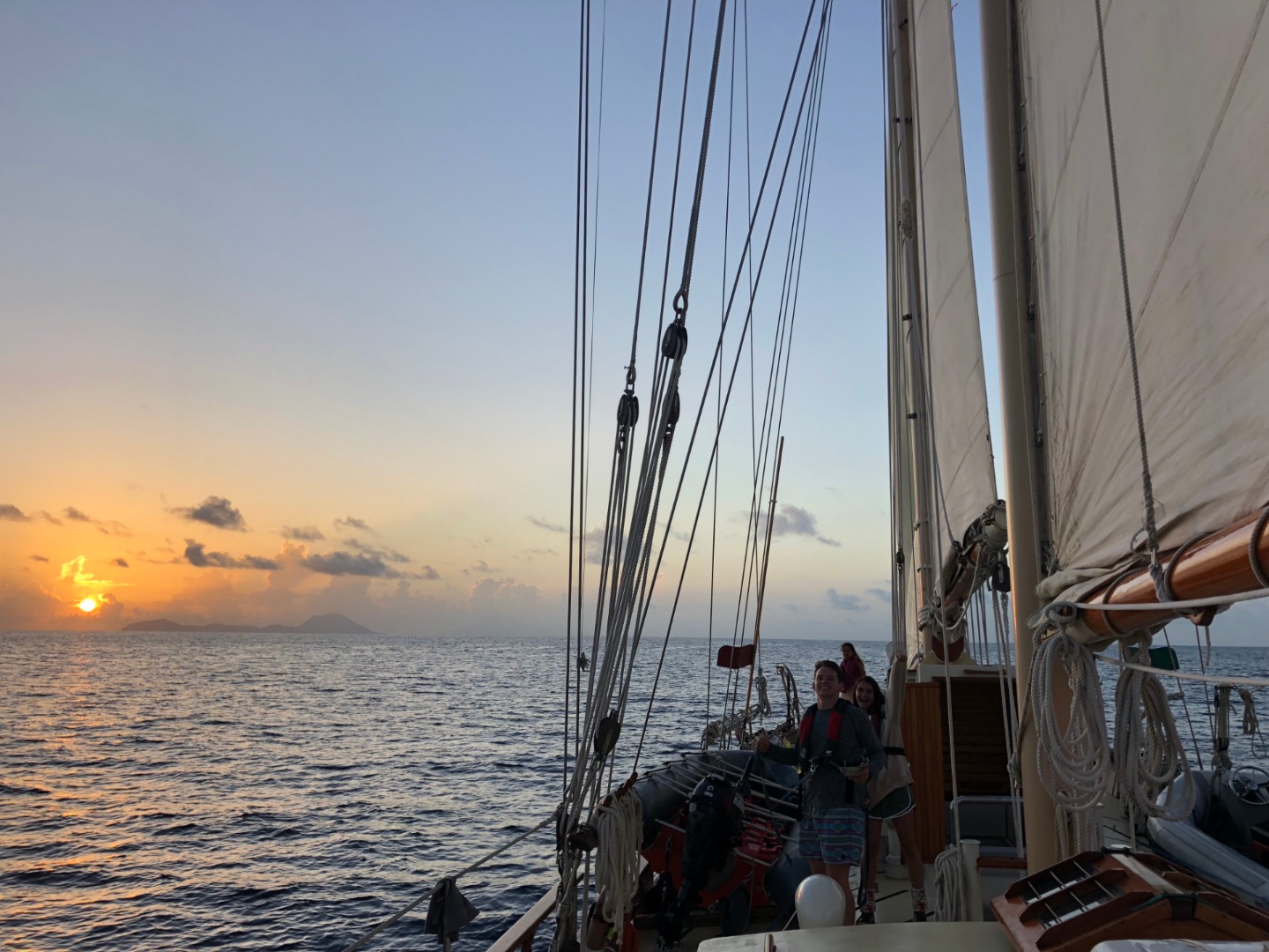 After arriving off the shore of St. Kitts, we dropped anchor and had lunch, which was stuffed bell peppers, and afterward, a quick clean-up. We got ready for a BA, boat appreciation, where after a long passage, we take an afternoon to clean the entire boat thoroughly so that everything looked great again. Once that was done, everyone had some time to do some studying or, as was many students chose, have a nice nap before shower time and dinner. After dinner, we had a leadership class with Jon going over the first chapter of the leadership book that everyone was supposed to read.