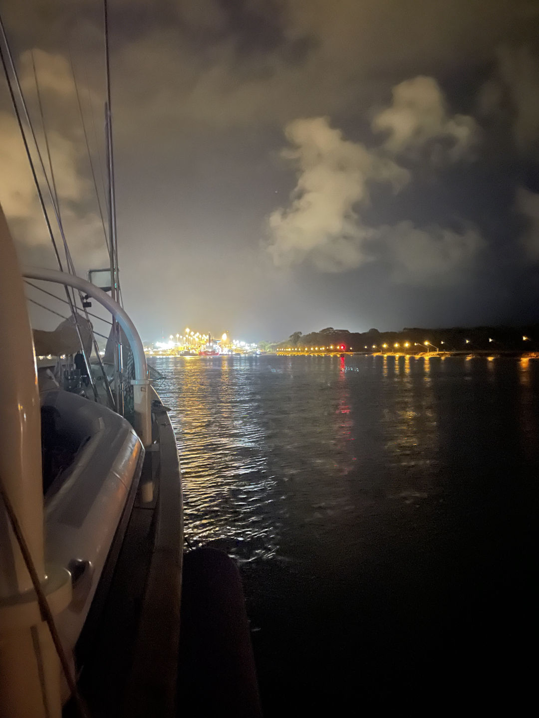 Wake-ups were promptly at 8:00, meaning we all got an extra hour to catch up on some much-needed sleep after a very early day yesterday. Our head chef, Gabe, made a yummy mango fried rice for breakfast before we all moved on to classes for the day. After a content-heavy day of both Biology and Oceanography, it was time for lunch. Shortly after lunch, everyone got ready to go to shore for a few hours to check out the marina we are currently anchored off of. Our shuttle, Nopadone, took groups towards the dinghy dock, and then we were free to explore! We all got some good shopping and sightseeing in before it was time to go back at 1600. After making it back home to Argo, we all worked together during Boat to Bed to rinse some lines, put fender covers away, as well as tighten up on a few halyards. Then, it was time for dinner, and another day quickly came to an end! Stay tuned for more adventures in Panama City 🙂 Until next time!