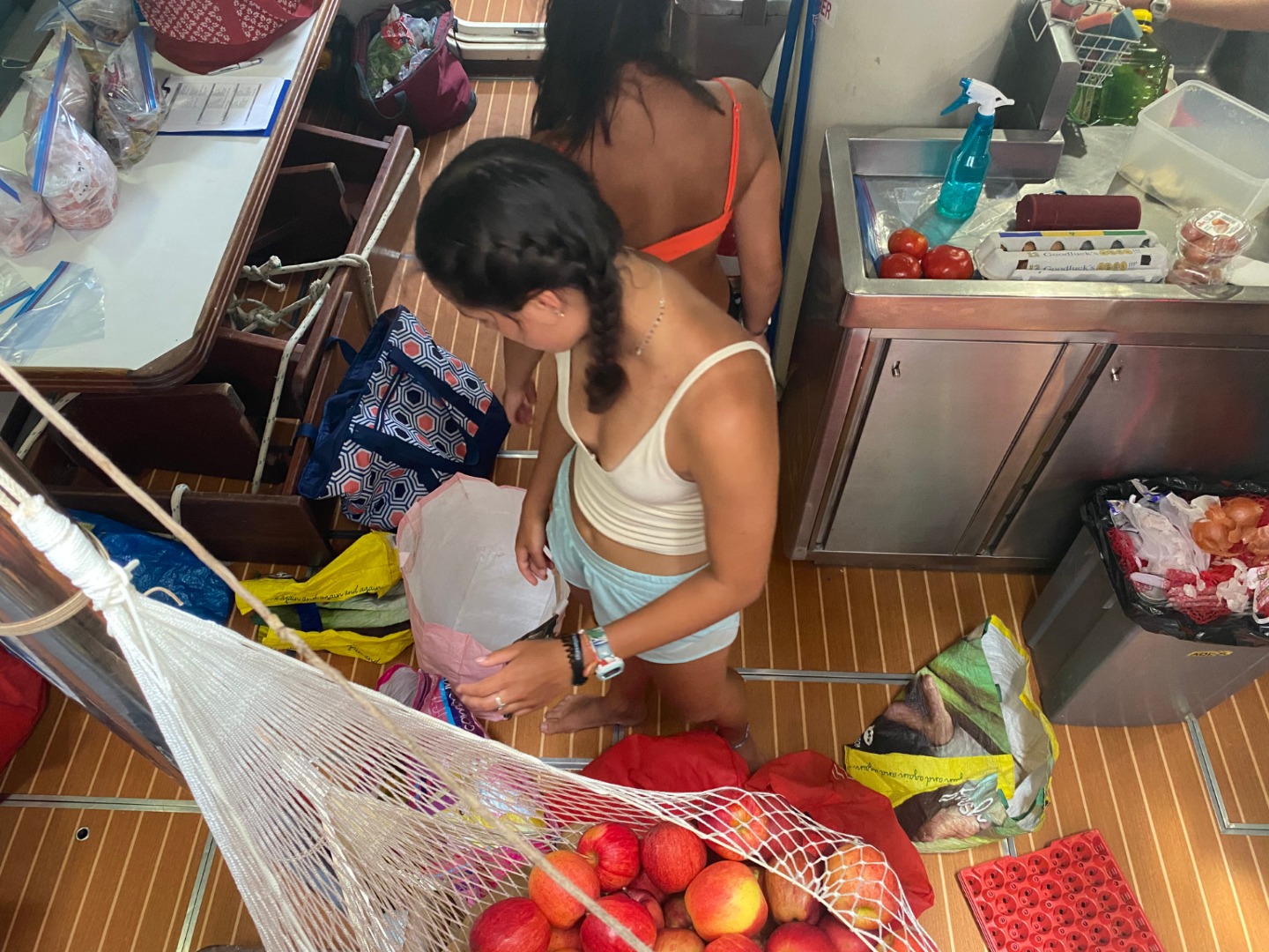 Today we began our week-long passage to Panama! Everyone aboard is so stoked to be starting this part of our journey and finally making our way over to the Pacific Ocean. I woke up this morning and jumped off the bowsprit for my daily morning swim, trying to take in every moment and feeling since we likely won’t be able to swim until we make it to the Galapagos in about three weeks. The water was glassy and soft, as Sam and I like to call it, and the bubbles from Izzy finishing up her Advanced Open Water certification (!!!!! YAY IZZY!!!!!) were coming up all around me. We ate breakfast and had free time until everyone got shuttled to shore for our Covid tests. It was absolutely DOWNPOURING for the first group, but they saw Humpback whales breaching just past the harbor, so I don’t think anyone was too upset about being soaking wet for a little while. After all the groups had made it back from being tested, we had lunch and began passage prep, in which we finished up a few things that allow us to make a safe passage. An army of people were in the salon helping put away food from a huge provisioning run that Lolo had made earlier in the day, and I can confidently say that I have never, and will likely never again, see so many cans of garbanzo beans all in one place. After what felt like hours and hours of prep, the mooring ball was finally dropped, booms were lifted, sails were raised, and we were off. Although I think I have said this every single time I’ve ever been sailing, but the moment when the engine turned off, and we were just using the wind in our sails to move through the bright blue water was one of the most peaceful and freeing feelings.