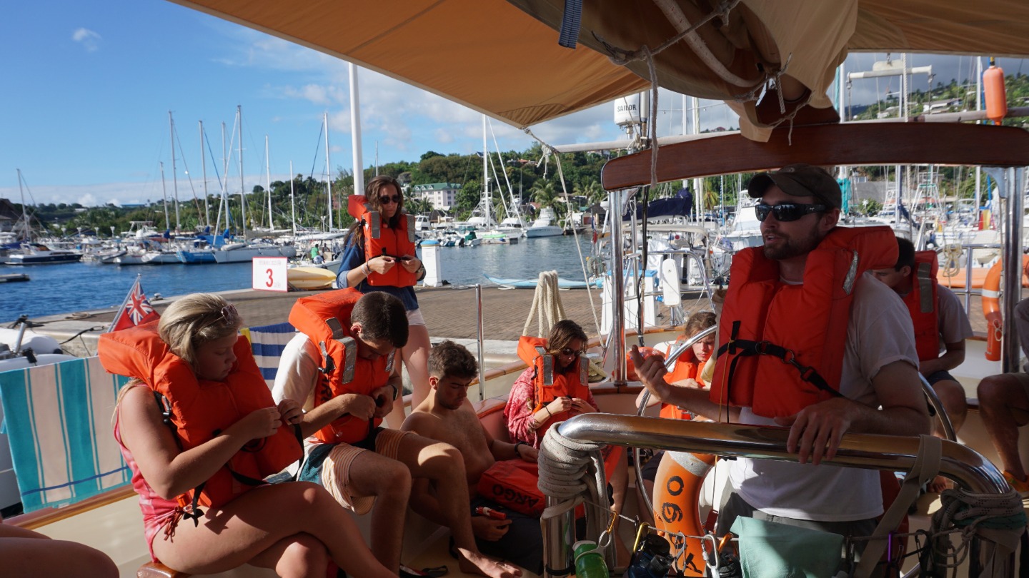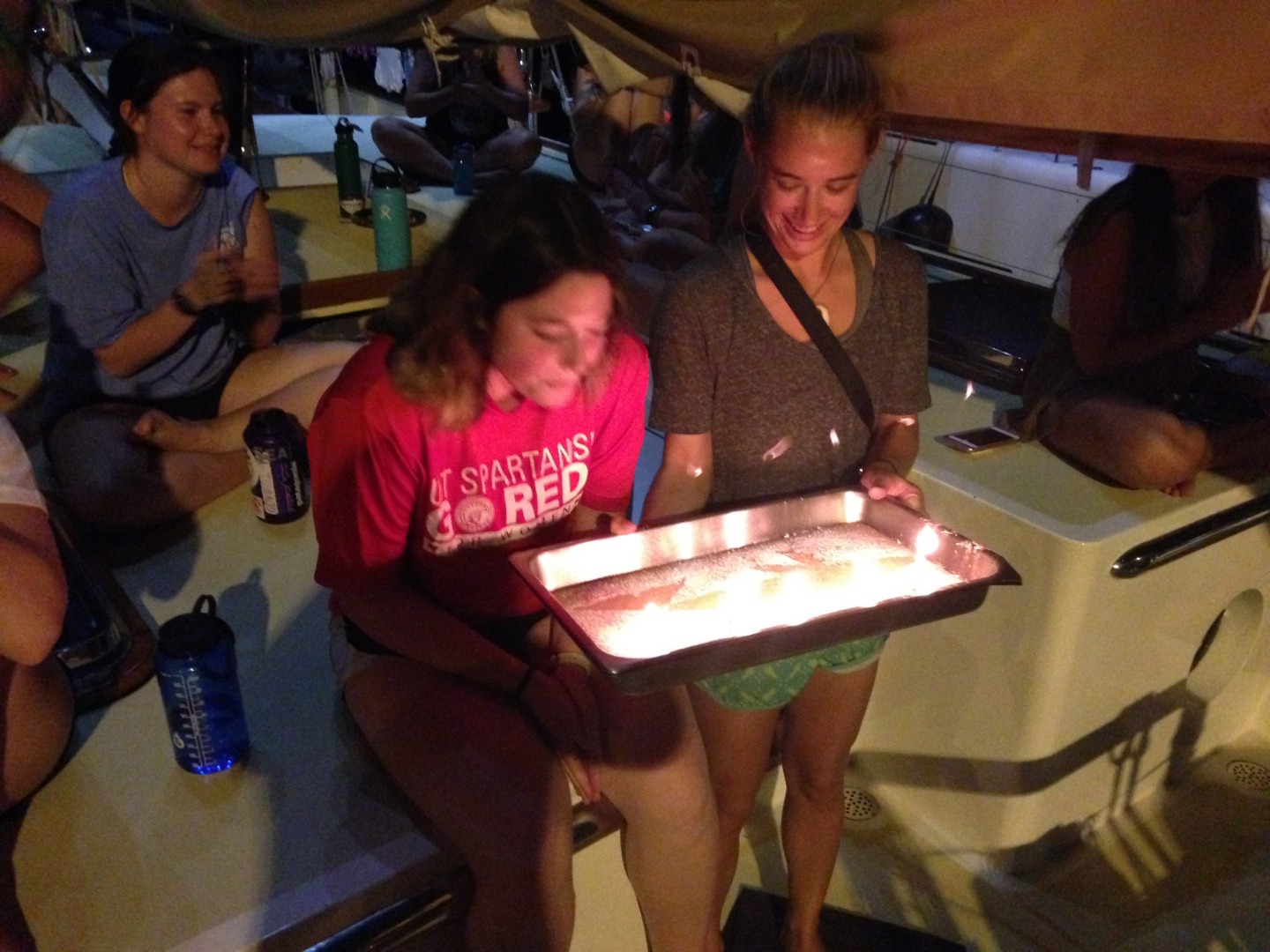 There goes day one! I think I can speak for the whole crew when I say that everyone is in paradise. After an incredible amount of anticipation and daydreaming, we are all finally here, although I’m sure the full weight of the situation has yet to sock us in our noses. We had some free time today while we waited for the whole crew to arrive, and it helped some of us soak up the sun…at a bouncy McDonald’s water park. I didn’t know those existed! Amazing how new cultures can really open your eyes to all sorts of new and unexpected experiences :). We had an absolute blast. Once the whole crew made it on board and unpacked, the indescribably amazing staff helped familiarize us with our new home, Argo. We topped off the night with dinner and cake to celebrate our first birthday of the trip (many more to come). Our new huge family is incredibly excited to make the most of the saturated days ahead. Tomorrow we head out to Moorea! Until next time! 🙂