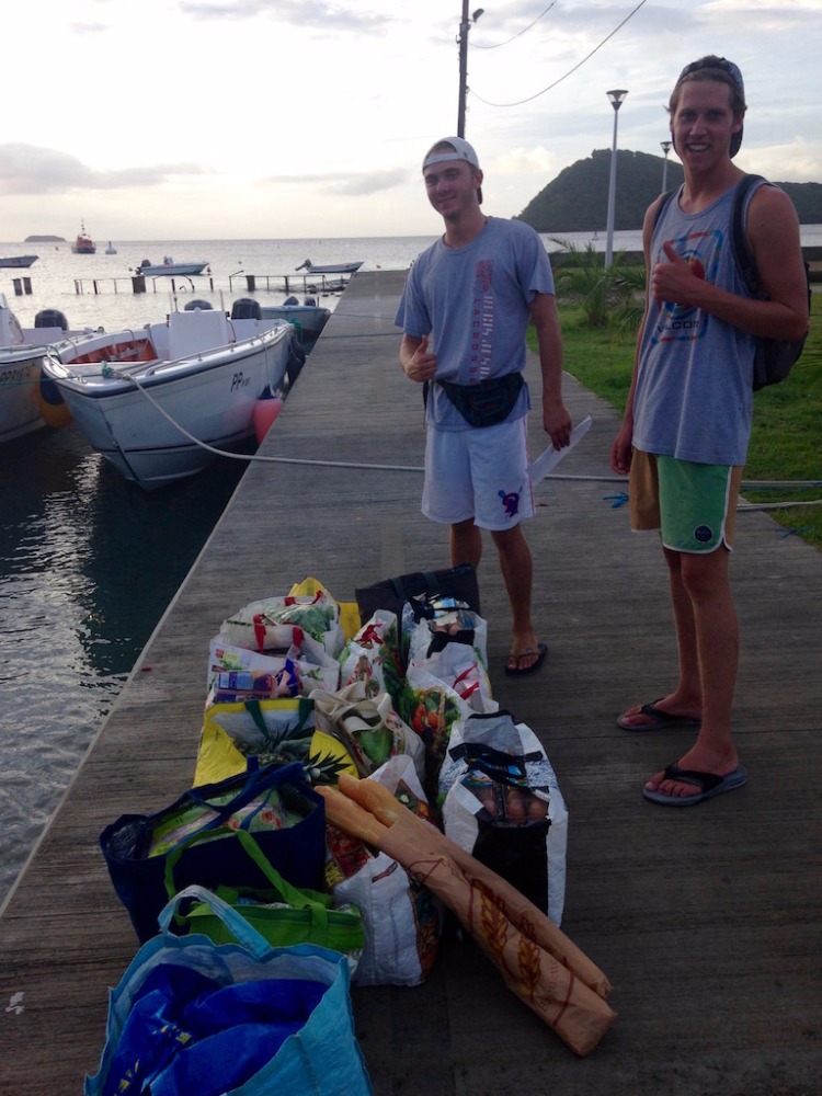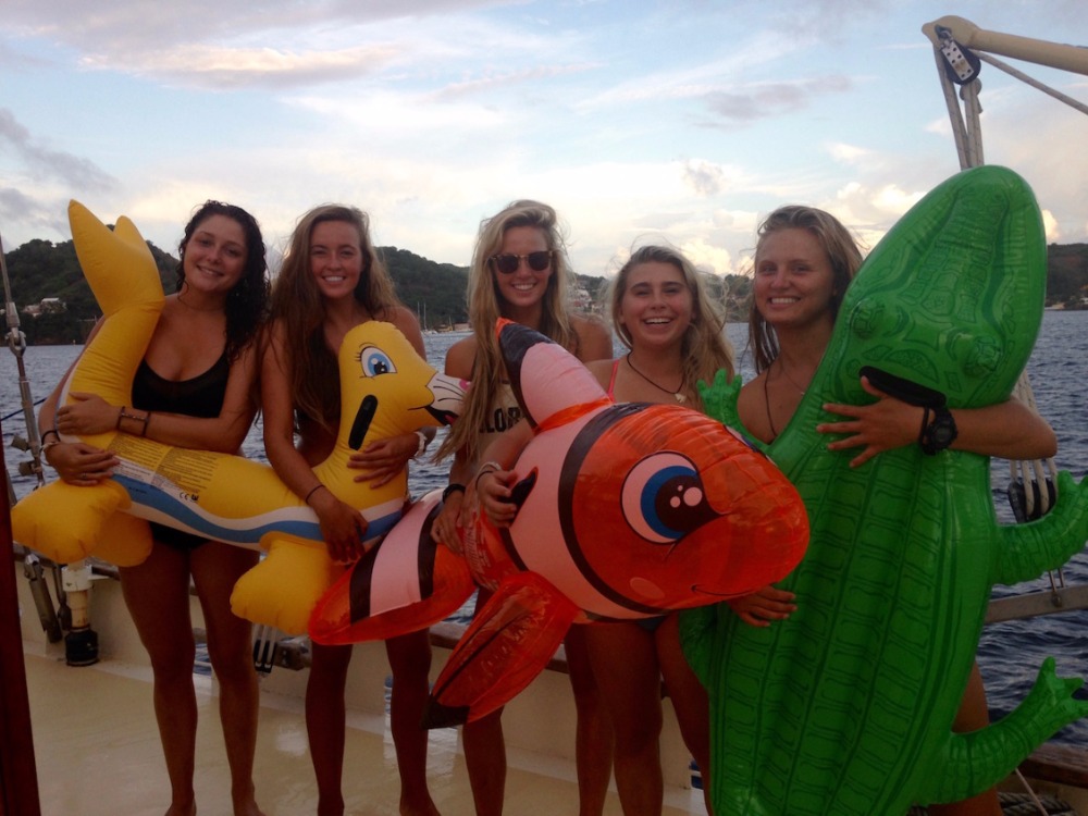 Today was a nice and relaxing day after our student-led passage yesterday. Waking up to some nice, warm, delicious pancakes got everybody in the mood for class and then some boat appreciation (BA). During boat appreciation, everybody was cheery and ready to lend a hand no matter what the task was. BA was nice and dry, but right when we finished up, it began to rain. Next was shore time. Wandering aimlessly around another French country was fun and confusing because most of us don’t speak French, but it was mostly fun. We also had Ty, Evan, and Carolyn go provisioning, which sounded fun by their stories, as they tried to figure out what some of the French-labeled food was also, while onshore Alex decided to buy some large animal-shared floaties, which the girls had a great time playing with during shower time. Having yet another wonderful meal for dinner, we ended the day with an SLS (Leadership) class taught by Nick and Tor. I would say today was a good day indeed.