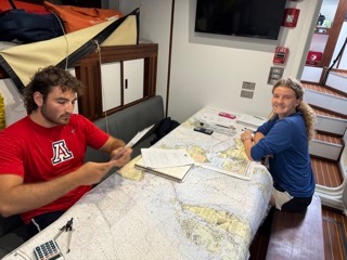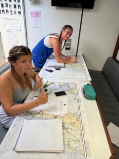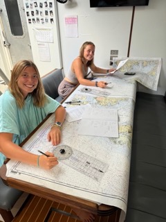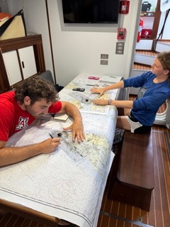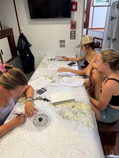 After a hot 8-12 watch under the tropical sun, everyone scurried down below for class. First, it was Oceanography, followed by Seamanship. In Seamanship, we are finishing up our Navigation master unit, a unit that consists of a deep dive into navigation techniques using only paper charts and charting instruments. Its quite a difficult unit, but everyone seems prepared for the test!