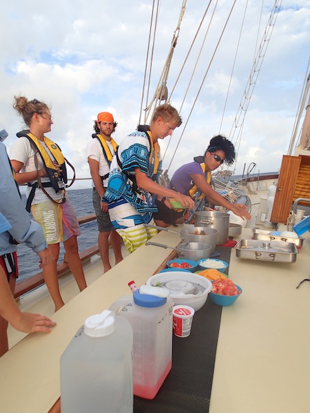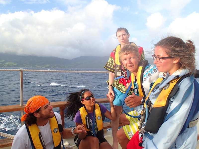 Today, we were on passage all day, traveling from Roadtown, Tortola, all the way to Nevis. We left last night at 9 pm and arrived tonight at 9 pm. The waters were rough, but we all got used to it with time. For passage, we split into three different watch teams of 4 crew plus one staff member. Each team ran boat checks on the hour smoothly, and everyone had a chance to take the helm. It was quite interesting at first getting used to living life on a fast-moving boat that’s heeled way over 15- 30 degrees. Frisby and Jake did a great job cooking underway and made us some really delicious Burritos and Mexican Salads. Another great day aboard Ocean Star, and looking for more to come. Your skipper of the day, Dave.