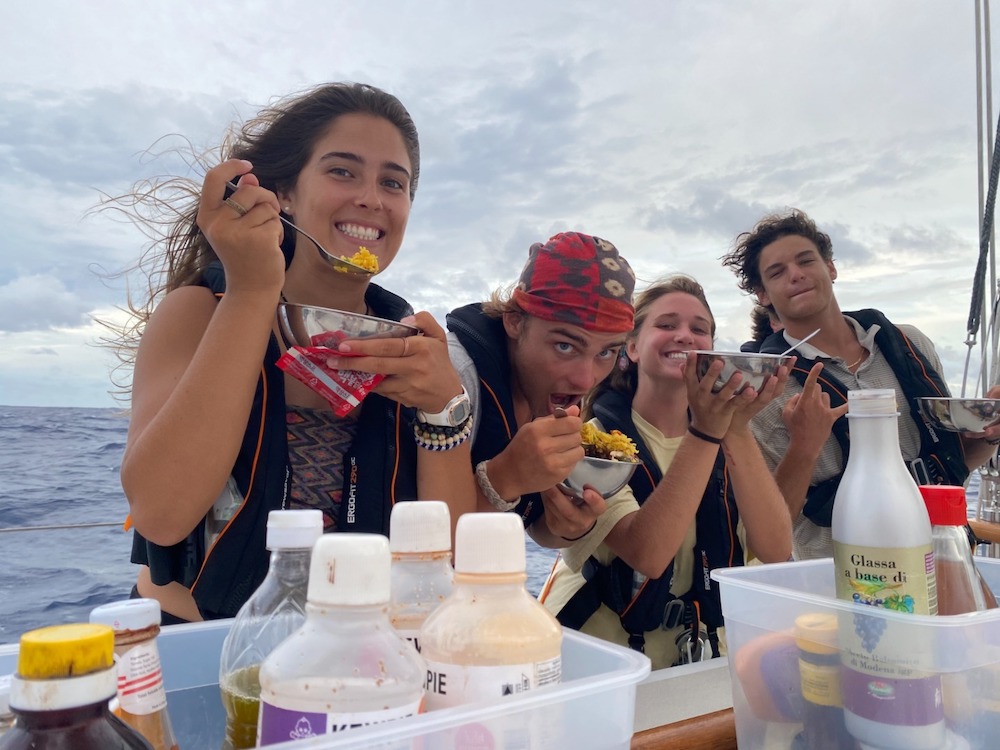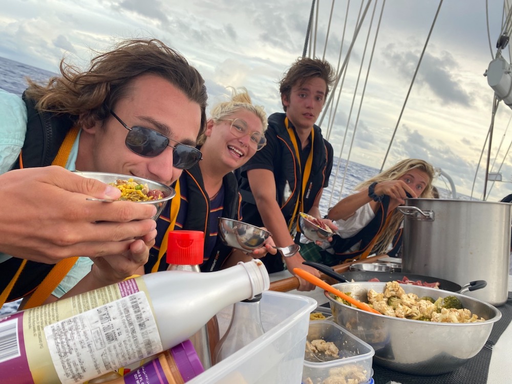 Daily sail raises and adjustments, post-meal jobs, and watch team rotations have given us the opportunity to become a competent and tightly knit team as well. While we can all recognize the immense weight of our experience, it is difficult to articulate just how much we’ve grown individually and how much we’ve all grown closer. Looking back on the past 30 or so days, we learn to trust that our future reflections will reveal the greatest changes which we are currently experiencing. Woah.