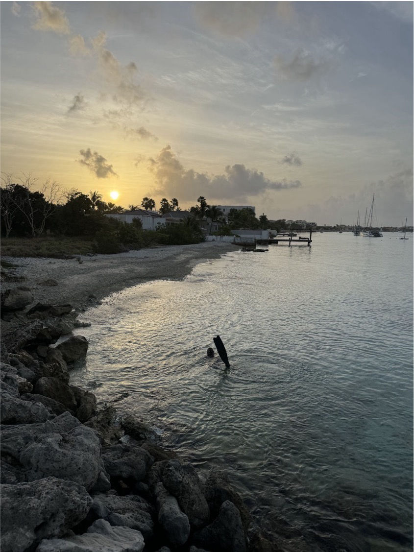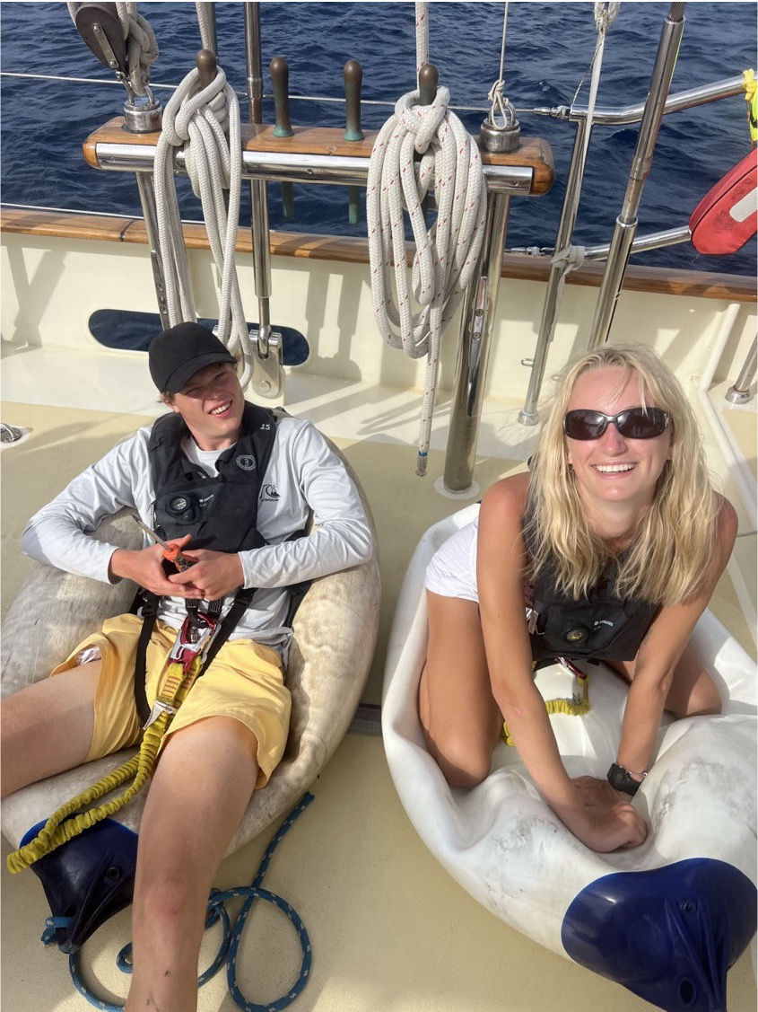 Hello or hej, as we say in Swedish! Today, when I woke up at around 6:45, I found Sandra and Jack snorkeling in the ocean on the reef next to us. It has been such a privilege to be docked next to a beach and a beautiful reef that we can snorkel and dive on whenever! Then, while I was drinking my morning coffee, I saw Filipe coming back from his morning run. He had run TEN kilometers!!! Very impressing. Then we had breakfast made by head chef Molly, and after that, we drove to the airport to clear customs. It was fun, except that almost everybody bought the same hat as me (I bought mine when we cleared in)… Coming back to the boat, we did passage prep. It was a lot to do. It took us about 5 hours. But since I was a skipper, I just had to delegate the tasks instead of actually doing them myself 🙂 Actually, I did some of the tasks, but only the easiest ones! Then we cast our lines, said goodbye to Bonaire, and got ready for a five-day passage to San Blas, Panama. Four of the sails are up, the wind is not very strong (15 kn east), the sea state is smooth, and we are all pretty tired, but still, everyone is in a good mood, and we have had a lot of good laughs. Now I am going to bed because I have to wake up at 04:00 for my next watch! Thank you for reading!
