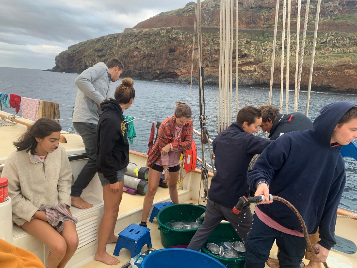 The afternoon hit with everyone enthusiastically jumping into passage prep. It’s no small feat to get Ago and her crew ready for departure, and I was surprised at how quickly we were able to mark things off of the checklist. With everything triple-checked, all of our things 40/40, and Argo looking neat and tidy, we raised the anchor and began our passage to Gran Canaria. Highlights of the afternoon included getting the forward staysail, main staysail, and mainsail up, seeing the guys snap the handy-billy line, seeing Lance be very confused on the density of his dinner rolls, and listening to Tim’s beautiful rendition of Usher’s Yeah! Feat. Lil’ John.