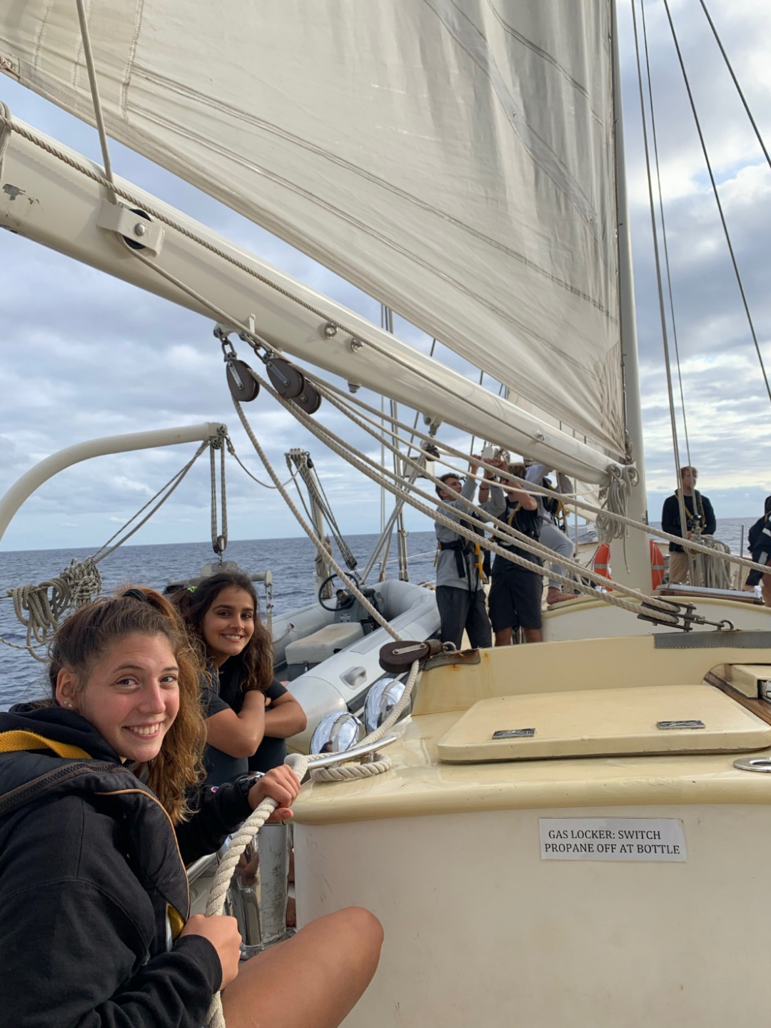 This morning, my oceanography research group got up an hour or so early to start taking our data samples. We were met with a peaceful morning and a beautiful sunrise, with cool temperatures perfect for sweats and a long-sleeved tee. 7:00 hit, and with the use of Brian’s speaker (thanks Brian), wake-ups were held to the tune of The Offspring’s Come Out and Play (Keep ‘Em Separated), and a full weather and breakfast report was given. The gophs got breakfast on the deck, and we all enjoyed some blueberry muffins and cereal brought to us by galley crew Marion (yes, head chef), Brian, and Ethan. The rest of the morning consisted of Leadership and Oceanography, followed by some free time until lunch (perfect for a deep nap).