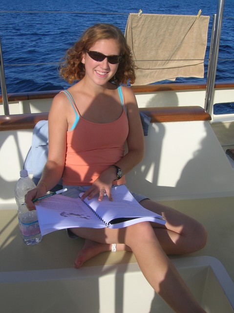 Day 17- we left La Spezia late last night. We started our watches at 11:00, and they have continued throughout the day today. All of the watch teams have confirmed very smooth sailing. Today we had oceanography and marine biology after lunch. After class, we all rested and hung out. Some people took naps, did homework, or sat in the sun on deck. This was one of the most relaxed days yet. It was really nice to spend time with each other without so much commotion going on around us.