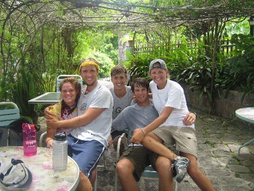 The anchor was pulled up at 0705, SBT (Standard Boomer Time), and we raised sails en route to Dominica. After a nice cereal breakfast was underway, we broke into watch teams. Early morning and afternoon travel was slow, barely making 4 knots. Rich, Winston and the skipper braved the sea-sick-inducing galley, slaving for hours on a 20o heel to make some “dang quesadillas” while the rest of the crew got us through a squall. Late afternoon saw more squalls, causing us to man the sheets constantly until we were clear of squall activity. We got a pretty good view of the active volcano on Monserrat, with clouds covering its tall peak. Pretty cool. By nightfall, after some great pasta, the wind turned in our favor, and we made a good 7 knots for the rest of the night. (Hi, mom).