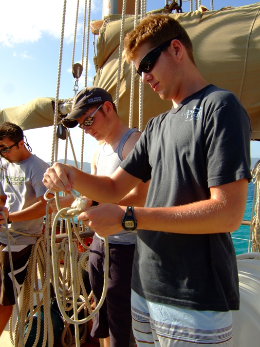 After a good breakfast made by our Captain, Boomer, we prepared the vessel for a 120-mile passage to Nevis. We started by heading back to West End to fuel up and have a bite to eat, and then we departed at 2 pm. We were split into watch groups and began our watches. Steve and Boomer made great chicken tortillas as we motored towards Nevis. The passage continued into the next day.
