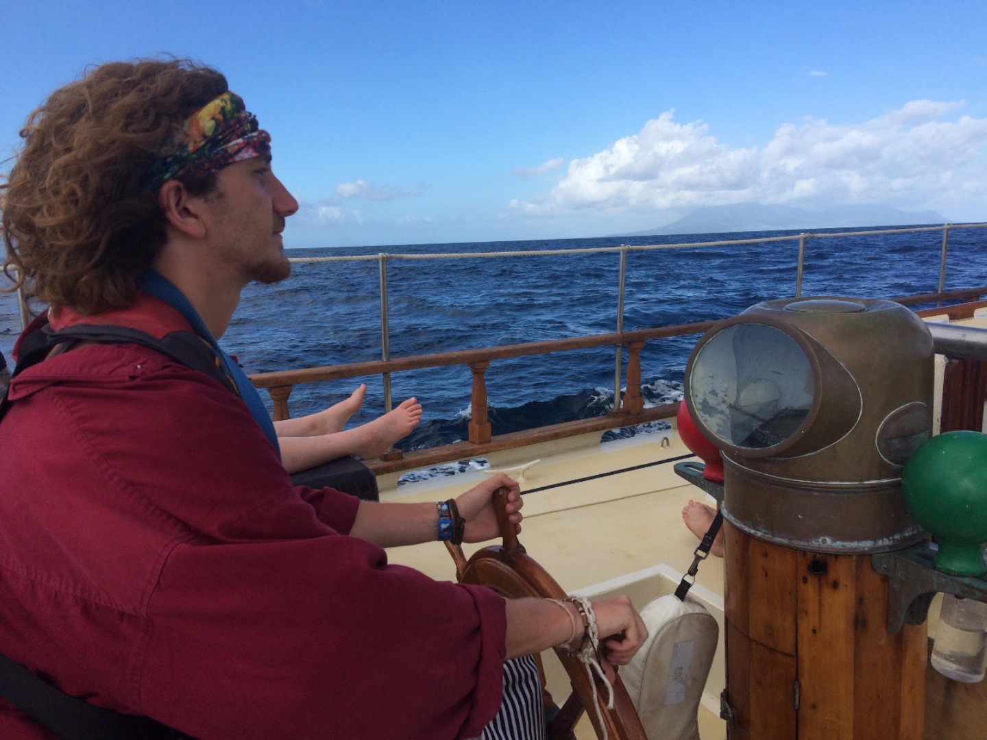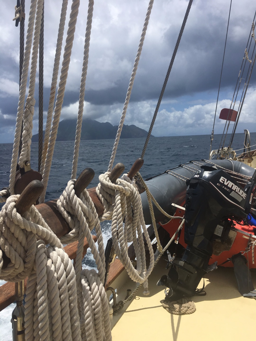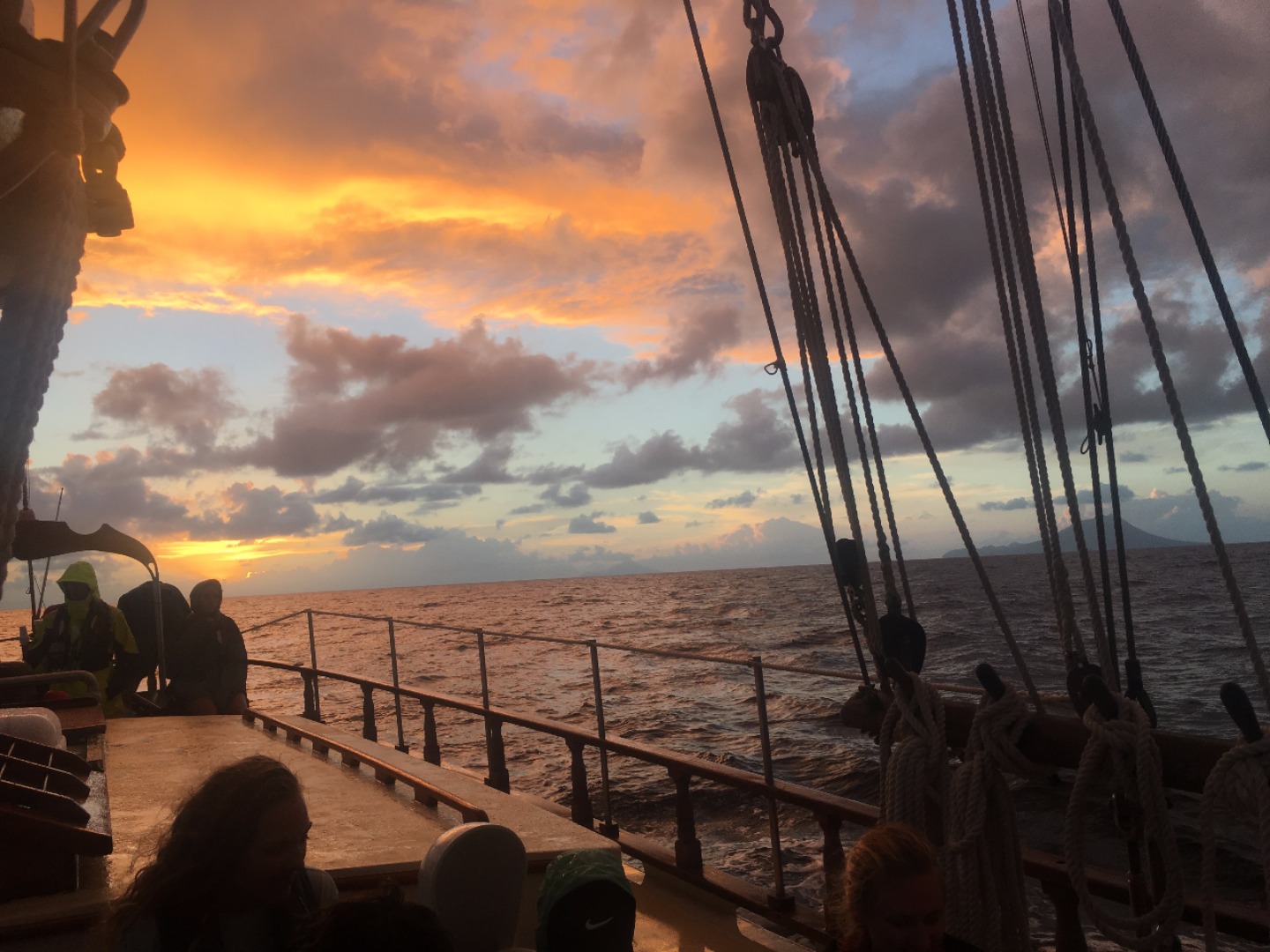 Spending the entire day at sea today was our first experience of seeing Ocean Star and its crew in full operation. The feeling of solidarity between the entire crew, the immense appreciation for Ocean Star, and all the beautiful views made today a really incredible day. At the end of the day, we were all exhausted, sweaty, and cold from the rain. But we all jumped to our feet when we heard “all hands on deck!” and we began the process of taking down sails and anchoring…we had finally reached Nevis! The crew got ready for some well-deserved rest after that in preparation for our excursions in Nevis tomorrow.