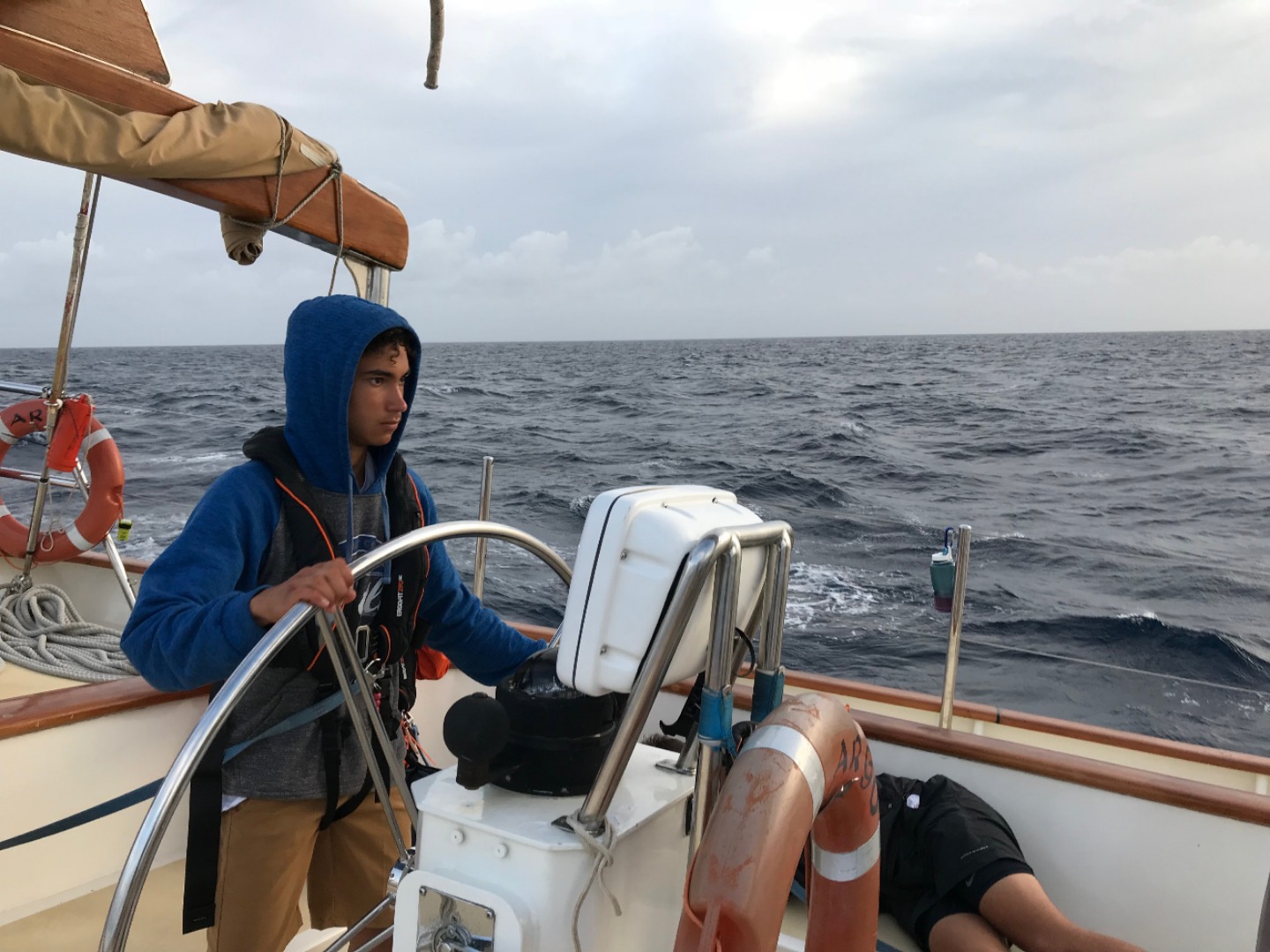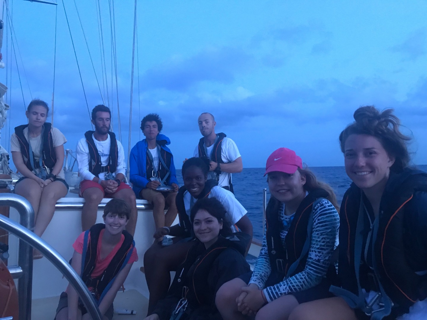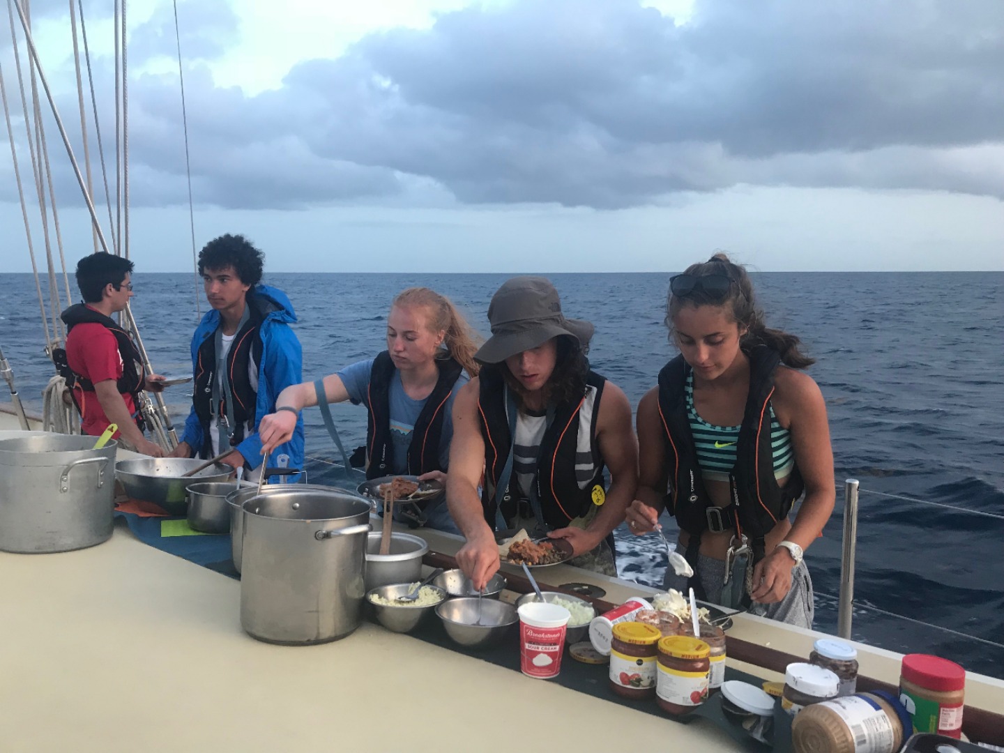 Four hours into our journey to Nevis, and the seasickness was in full effect, even for me, who has never been seasick. I couldn’t wait to wake up at 3:30 am for my 4-hour watch just to be above deck, breathing fresh air, and not trapped in the tummy twister cabin. Everyone took turns keeping watch, sleeping, and providing assistance to those who were less functioning. The chef made us a delicious-looking lunch, but unfortunately, only half of us enjoyed it, while some of us savored a plain flour tortilla or bagel to settle our stomachs. Watch teams ensured a safe passage and kept up on safety checks throughout the day. By dinner, everyone had rallied, and we sat together in the cockpit for a Mexican fiesta of buffet-style tacos. Only one more hour to complete our 24-hour trip, and we can finally put the anchor in some sand and enjoy a good night’s sleep, not fearing that you might roll off the top bunk.