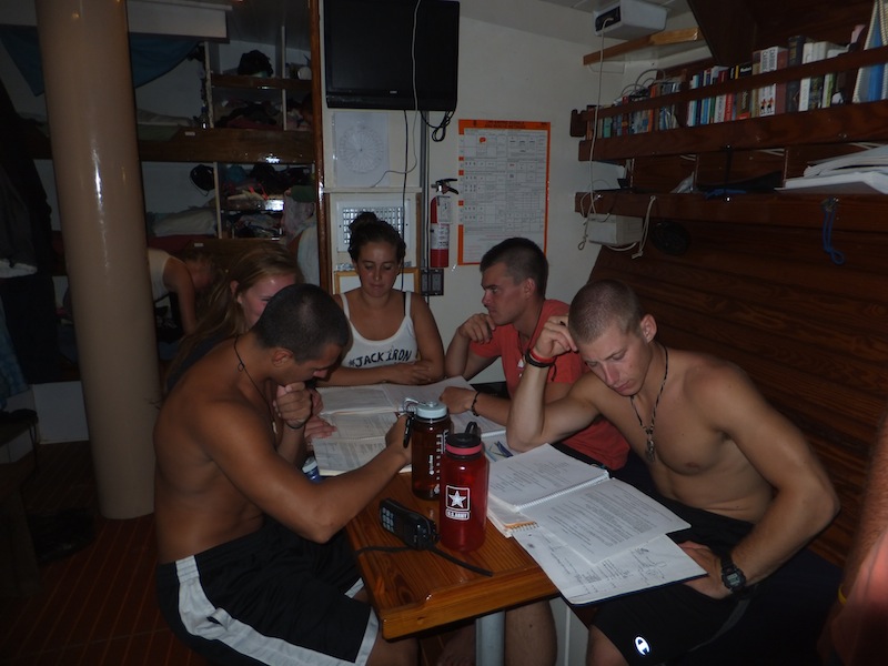 Overnight passages are such that one day merges into the next as you fall asleep off one island before waking to discover somewhere new. Last night’s passage was a prime example as we sailed the 48 nautical miles from St Lucia to Martinique. The rain that oversaw our departure last night ceased just in time for the first watch (Watch Team 2) to start at 2100, with the rest of us heading inside to dry off and attempt to get a couple of hours of sleep before starting the watch. Watch Team 3 (Ivy, Will, Bret, Shayna, Brooke, and I) had the graveyard shift from 0000 to 0300. You just get to sleep when suddenly you’re woken up and are thrust into the action. Fortunately, the rain had stopped by the time we came on deck (reports from Watch Team 2 were of a shift fighting off squalls, strong winds, and–by the look of the deck in the morning–rogue bananas. Fortunately, we had no such problems and maintained a solid 4 knots as we sailed towards Martinique.