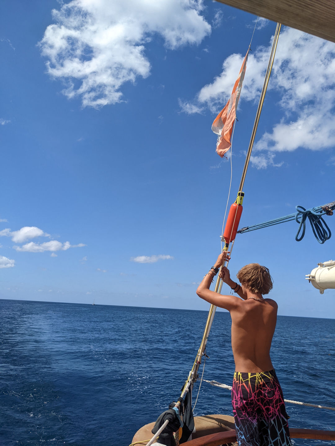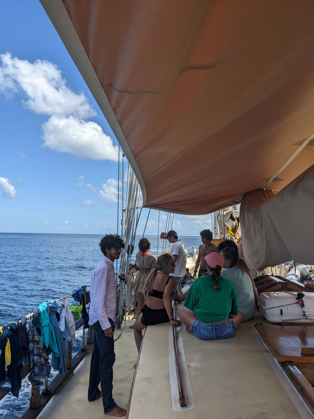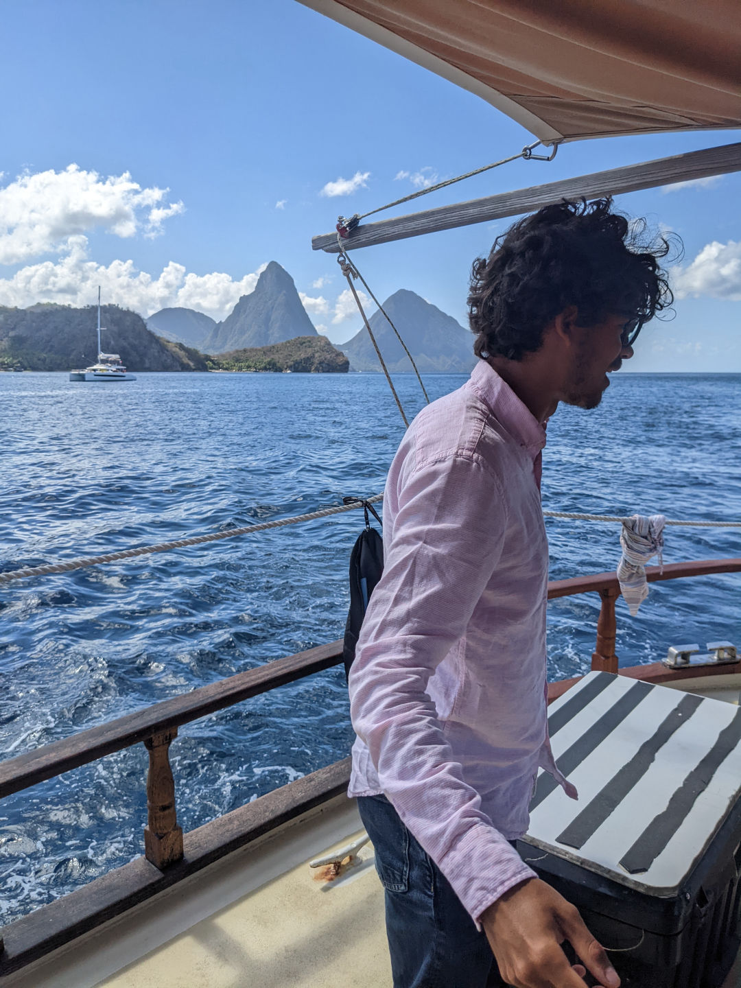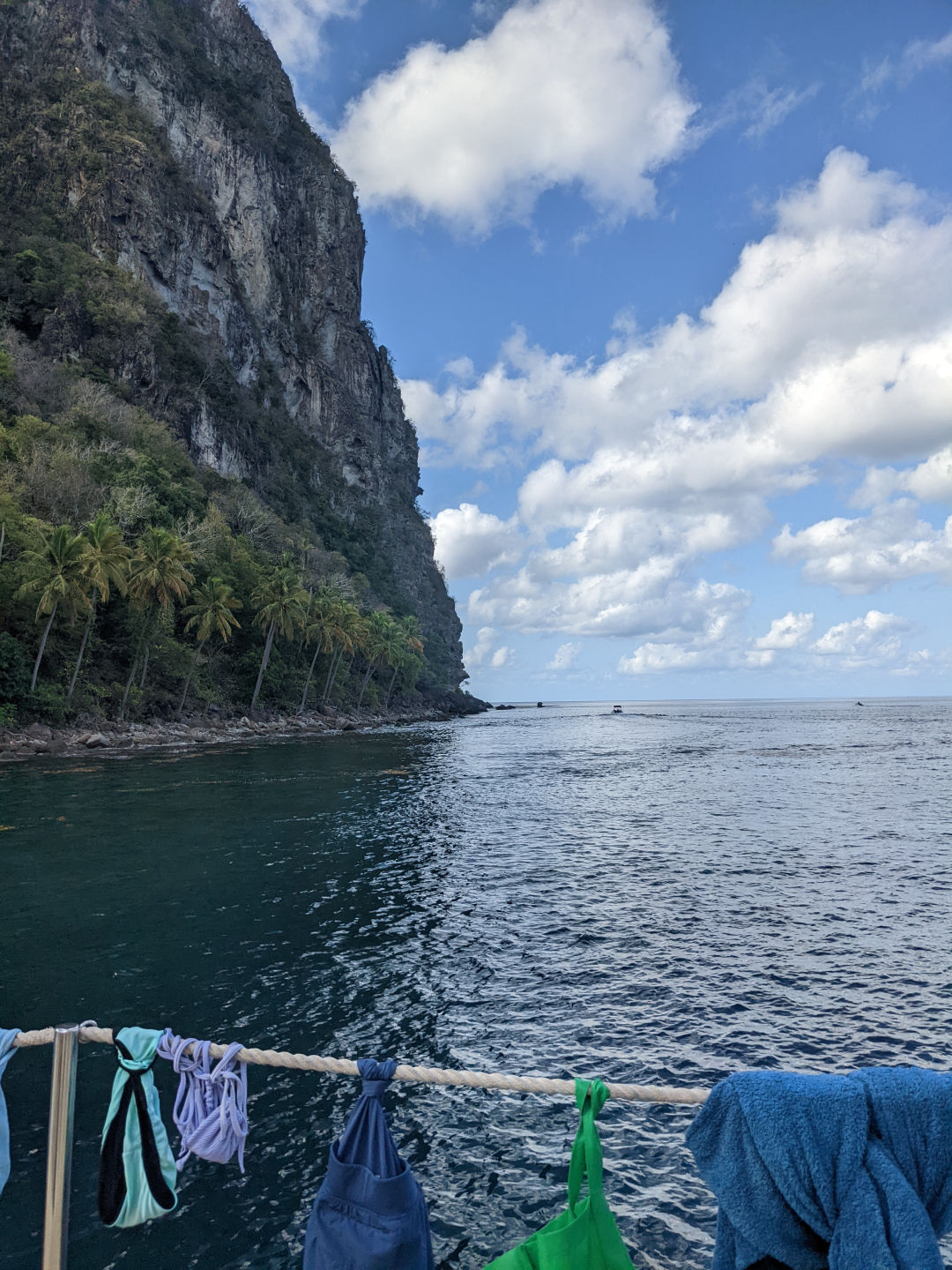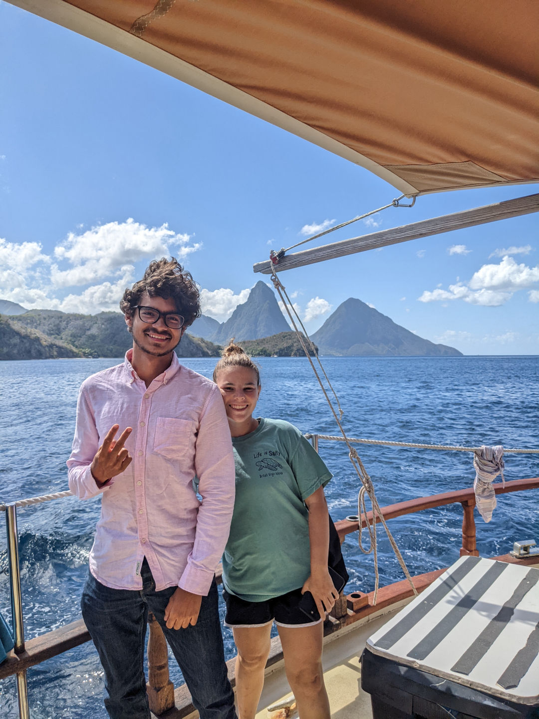 Anywhooooo. We ate breakfast – a classic yogurt and granola. And then we slipped our mooring and moved up to Rodney. While it’s always sad to say goodbye to the incredible Pitons, we are at least gifted with a beautiful and breathtaking view of their full ginormity as we leave (see photos). The trip up the coast was delightful, peaceful, and relaxing. And then Kiki and Jack graced everyone with, by all accounts, a very impressive, captivating Leadership presentation. They even dressed up for the occasion. I sadly missed said presentation as I was grading papers/exams for my own class (I teach Oceanography… you may remember a similar thing happening in my last blog post…).