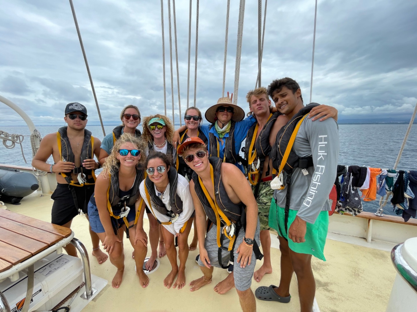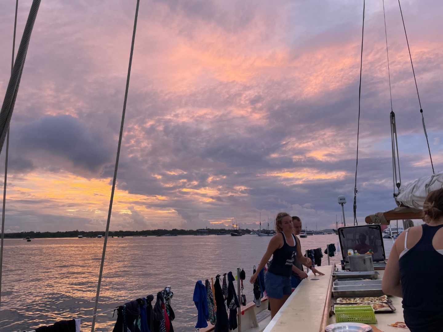 Hello. Today was a fun day. The staff woke up at 4:30 to get the boat moving to head back to Bali from the Gili Islands. I woke up at 7 am this morning to wake up the rest of the Argo people. Some of them didn’t approve of the music I played to wake them. Specifically, Preston who was very mad that I kept holding a speaker next to his head while blaring music. He was saying things that seemed combative, but I couldn’t hear them over the sound of my sick beats. Breakfast was crepes from E dog (Ian). After breakfast, watch team three was on watch, and, being on the team in question, I went on bow watch with a kid called Boulder Brenner. We looked out for other boats and logs and listened to Immortal by 21 Savage. After bow-watch, we all took a watch team group picture together. It was bittersweet. So lunch came around, and I ate a hefty amount of bacon. After lunch, we had our final Oceanography class with Amanda Shuman, which was also bittersweet. We have enjoyed learning all kinds of new things this semester. When we arrived at our destination, I went to shore for a PCR test with Sydnei, Bo, and Navarre as I am leaving the program early to spend so time in Bangkok. On the ride to the clinic, I took in the beauty of Bali in all its glory. What a beautiful place. The clinic was great. Sydnei, a staff member, was a great help to us children and made the process of PCR testing easy. When we got back to the boat, I engaged in a heated game of Polytopia with Gordon and Jack. Gordon’s strategy didn’t work out too well, and he was eliminated early on, but Jack and I are still waging a heated war. Dinner was BBQ chicken pizza, and it was delicious, and there were TONS of it! No complaints, and lots of full bellies.