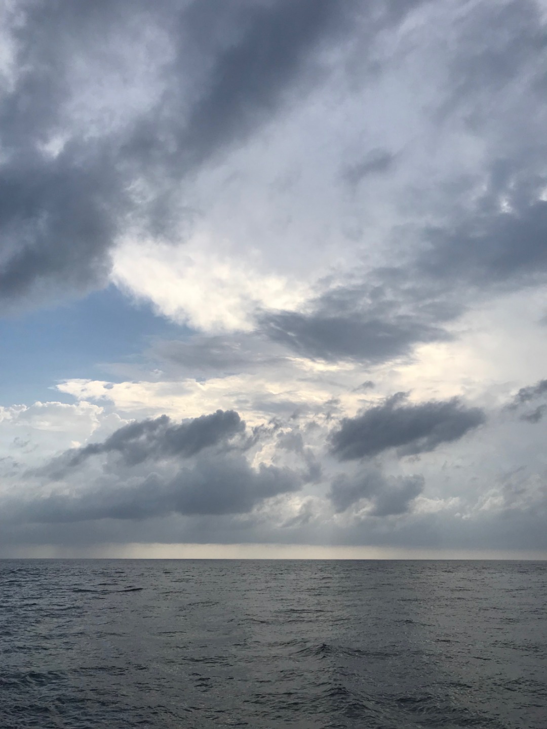 After a lunch of chicken stir-fry by Drake and his sous chefs, Alex and Eliza, we had our afternoon classes. First, the students had a Seamanship class with Meg and Tim. They learned about global maritime distress and safety systems, including radar, radio, and satellites. Soon the students will complete their exam to be certified in the procedures and regulations for using a VHF radio. Next, the students had Oceanography with me. We did the first lecture in our physical oceanography unit, and we learned about global winds and atmospheric circulation. After classes, a few students continued working on their group research projects for oceanography or their literature review projects. Deck showers were had in order to clean up and cool off in this hot weather we have been having. We are approaching the doldrums, and though we enjoy the calm, peaceful waters, it has been fairly still and thus very hot and humid.
