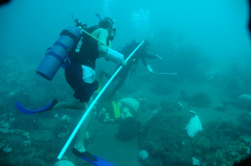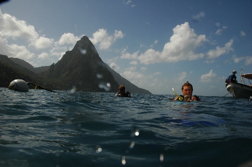 Today, we started by going to shore for an SMMA briefing and introduction. The SMMA ( Soufriere Marine Management Area ) exists to protect the marine life and reefs in the Soufriere area of St Lucia. After the intro from Nancy, the crew got started learning about the reef check process in which they would survey a section of reef in SCUBA gear and record their findings. After lunch, everyone geared up and headed to the Trou Diable dive site and got wet. Since the majority of our divers are newly certified, it was a challenge to not only pay attention to their diving but also to care for the research being done. The tremendous amount of rainfall on the island over the past few days decreased visibility, substantially adding to the adventure. The practice run was a success and was followed by a debriefing. The quiche was feasted upon this evening down below due to the rain, and the tank pumping continued into the evening to prepare us for the actual reef check tomorrowanother good day here on Near Enough.
