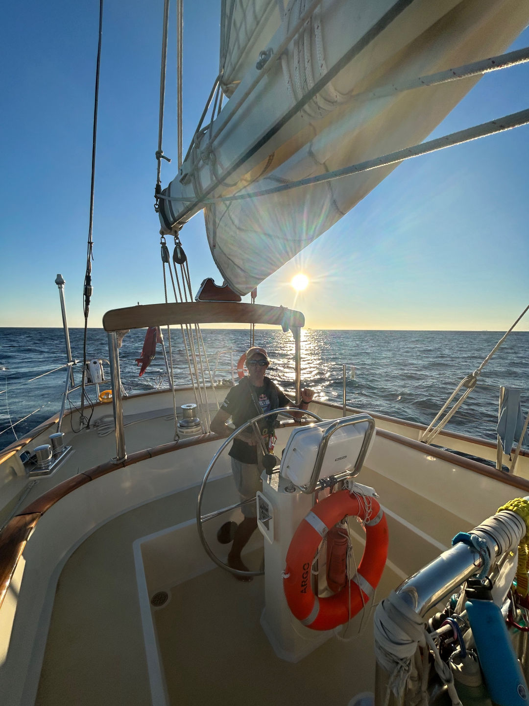 Beginning with yesterday evening’s watches that continued the ongoing Argo prank war fitting in all we can before passage comes to a close. Watch Team 2 conducted their elaborate plan to disrupt their wake-ups from watch Team 1. Will made his way below deck to wake up watch team 2 for their 1200-0400 watch and was greeted by a haunted house of jump scares. Leo, Santana, Maya, Cate, and Claire were one step ahead of him and had Will on the floor from fear. Once the prank had played out, one key member was still missing. Everyone was wondering, ‘Where is Drew?’ and there he came emerging out of the forward bilge to prank not only Will but his own watch team as well. This was then followed by watch team 2 hiding in bilges in an attempt to scare watch team 3; this was met with little to no reaction.