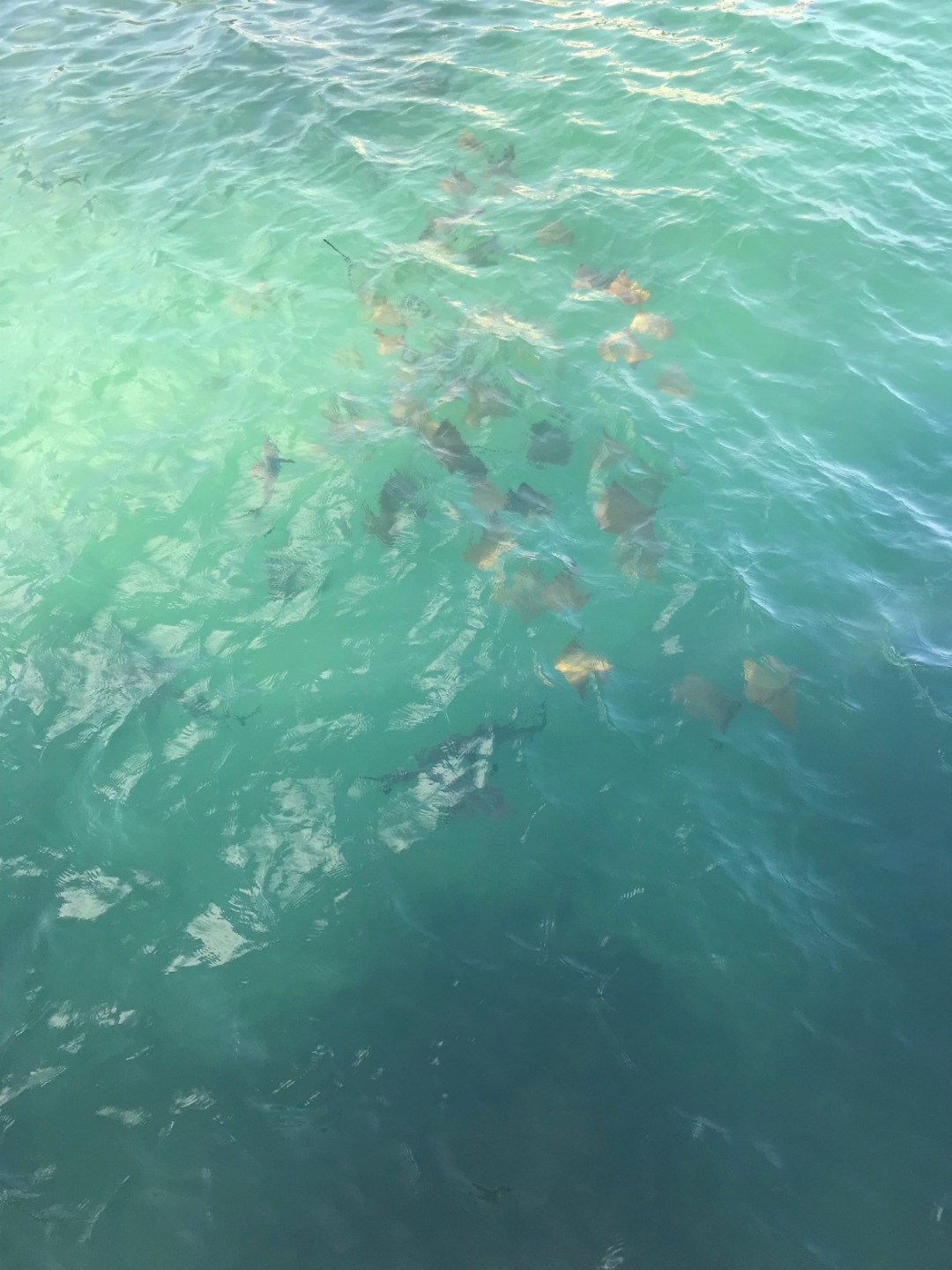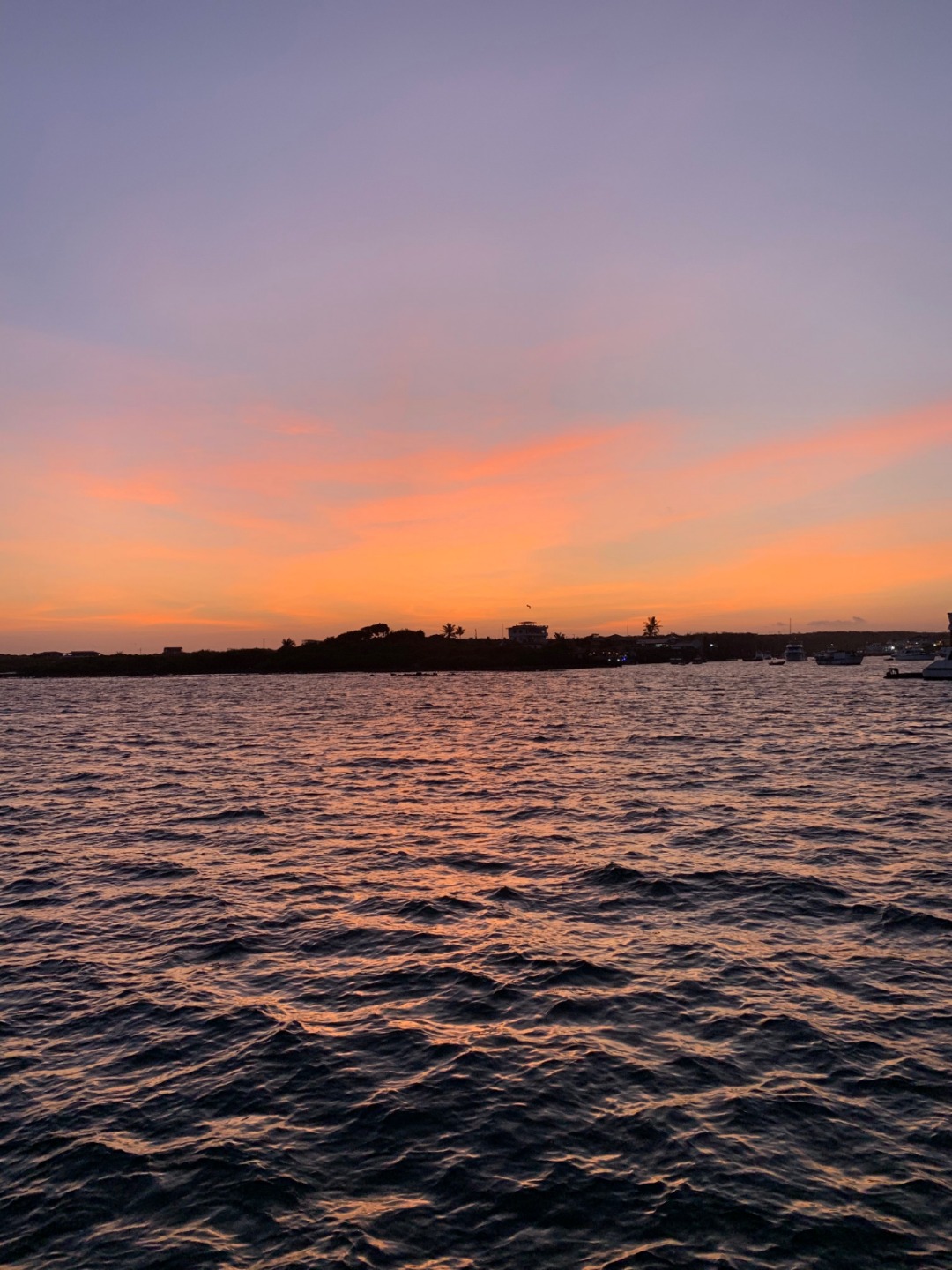 Last full day in the Galapagos!! We started the morning off with a nice Marine Bio lecture about sharks and rays. Everyone was a little bit sleepy, considering it was a morning class… then we rolled into passage prep. This passage prep involved a few extra steps due to the length of the upcoming passage. After a bit of prepping the boat and organizing our many personal snacks, we took our last jump in showers. We were a little sad about not being able to swim for almost a month. However, we took full advantage of the water. Everyone took turns showing off their diving skillz or teaching each other how to dive/flip. I’m proud to announce Seby completed his first dive, thanks to his instructor Alex. It took lots of faith and complete trust, but he got through it, never looking back. Later we took what we thought would be a short trip to customs. It turned out to be a couple of hours of sitting and waiting, but we got cleaned out, so I guess we did it well. Sadly, we were not rewarded with ice cream for our excellent performance, despite asking more than several times. While waiting to be dinghied back to Argo, a school of rays swam around the dock. They were so cute and little, and I’ll be adding them to our logbooks.