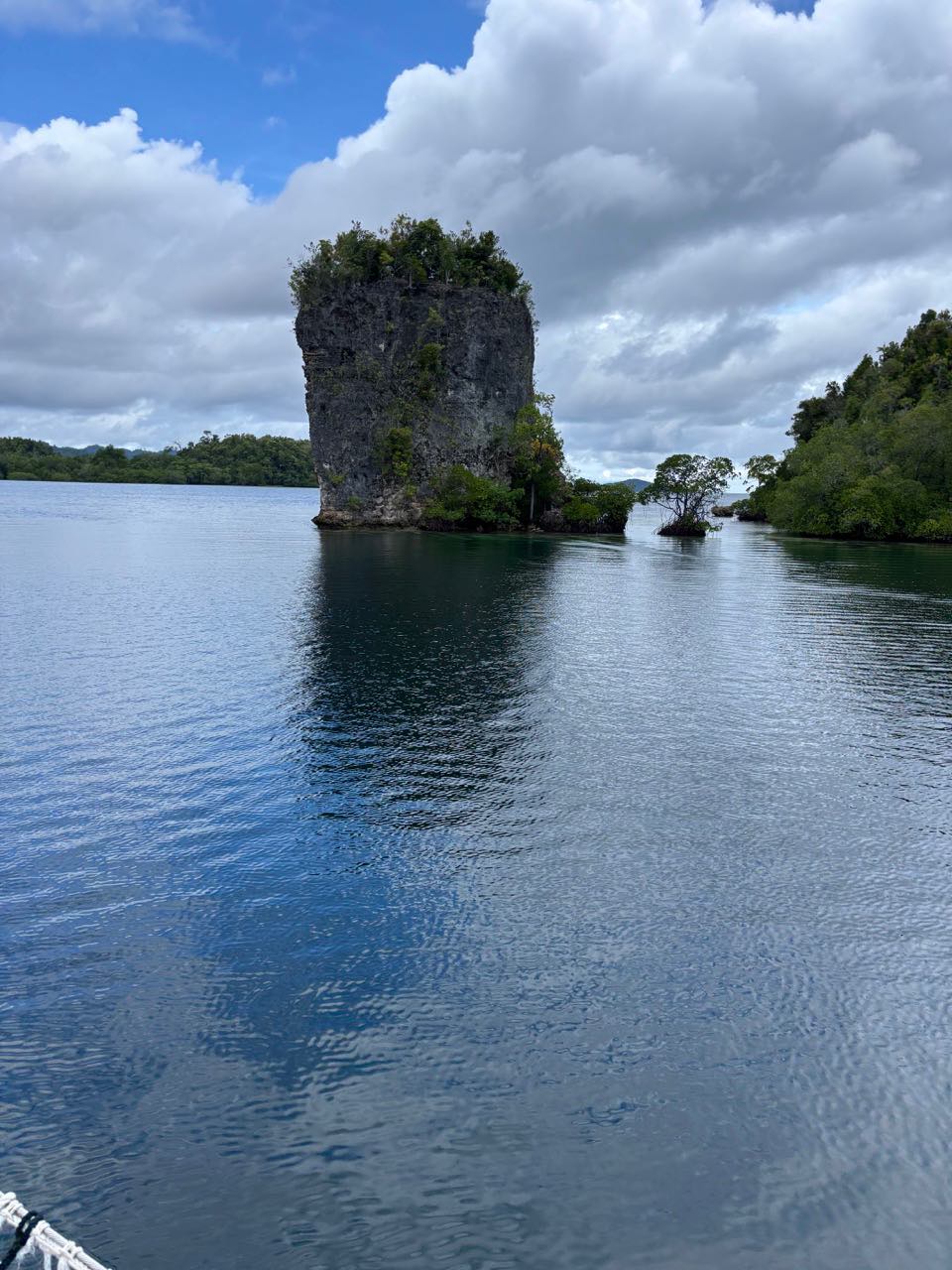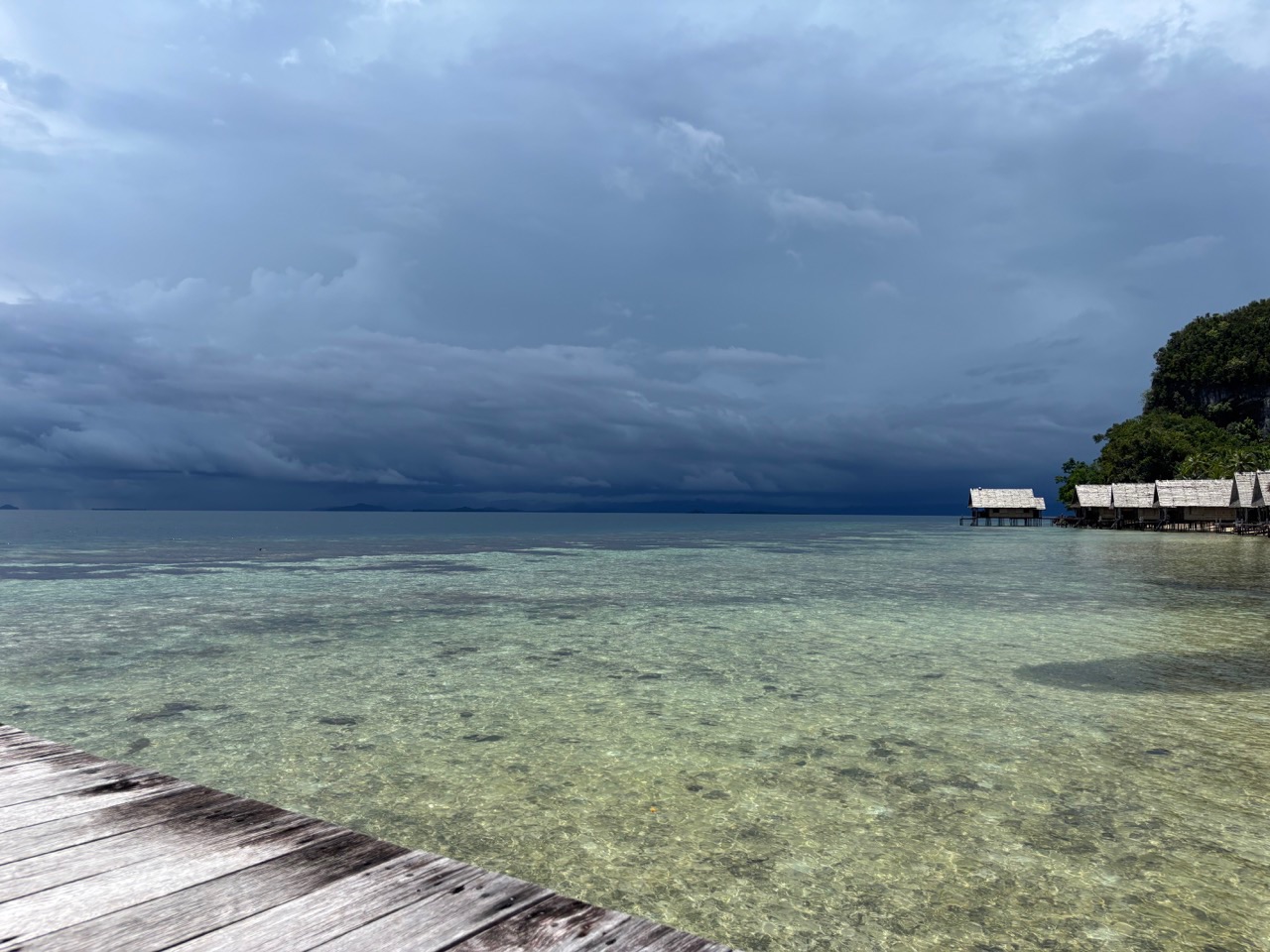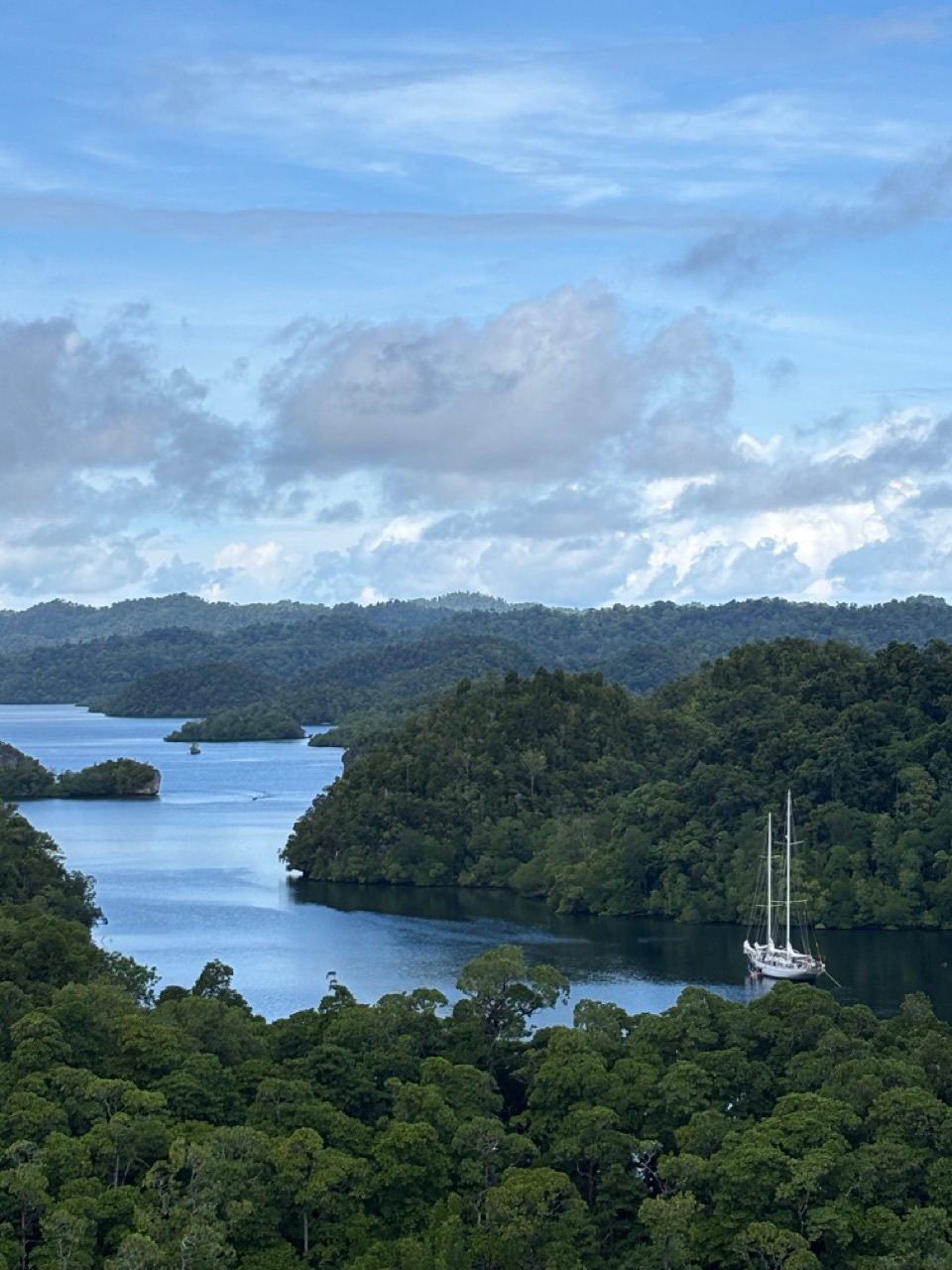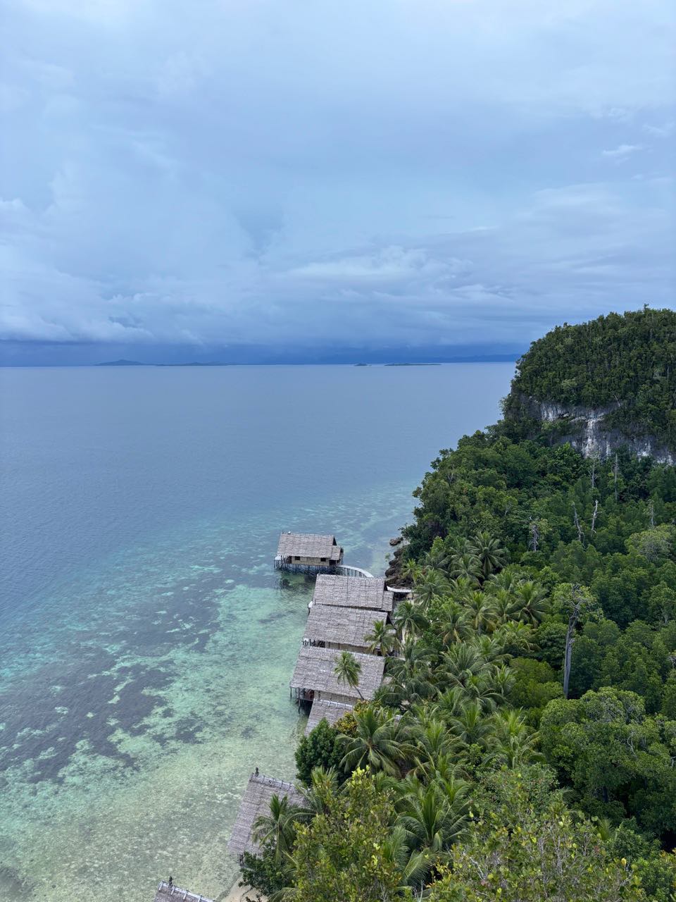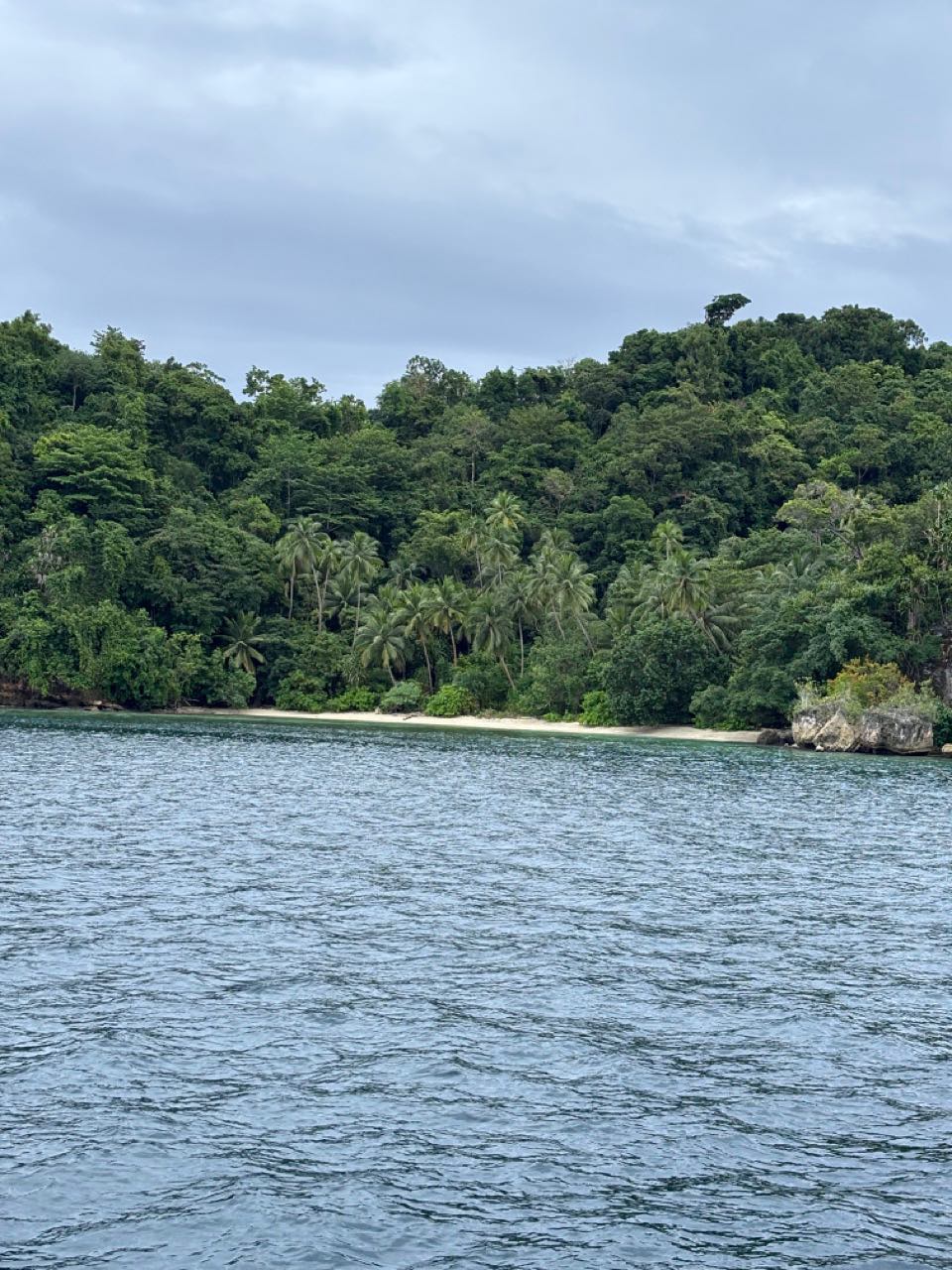 Today was a workaholic’s dream, the day started off as any other – a quiet sunrise in a secluded bay, the birds were out and chirping, and the water was calm, yet everyone decided to sleep. As skipper for the day it was my job to interrupt this, the wake-ups started with a pole prod to give everyone a chance to come too and get up, if this didn’t work for the very sleepy individuals the crashing pots and pans that followed 20 minutes later definitely did. After a breakfast of overnight oats, we broke into groups to prepare the boat for our passage. While some removed the sail covers, others braved into the laz at the stern. Those individuals’ sacrifices will be remembered. Anda and Kat were selected to provision and left after breakfast on a speed boat to collect supplies before passage. Once the boat was prepped most of the day had flown by, thanks to everyones work we were able to walk on shore for a a bit enjoying our last time on land for the next five days, while some enjoyed the view of the black tip reef sharks from the dock watching them wade though a sea of fish parting a path through them like snow plows others enjoyed the beach soaking up the water and sun. Arden, Joshua and I went on a little hike up a mound to a view point to experience the breath taking views of Raja Ampat, from there we saw the black tips from above the reefs and island that surround our anchorage as well as the storms rolling on in the distance which will serve as subtle foreshadowing for the conditions to come. Once everything had wrapped up on shore we got ready to leave and stared motoring to the arches which guarded our anchorage, from then on it was motoring though storms and sun the weather was tempermental and remains so as of writing this blog. as for now we sign of on day 22 /day 62.