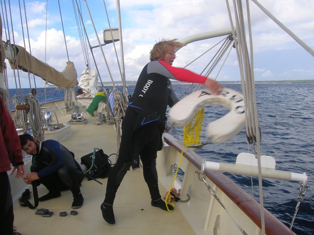 Today was a productive day for the scuba divers. We split into two groups and completed open water two (one group in the morning and one in the afternoon), and the rescue divers completed certain skills. Some downtime was spent studying and relaxing, and some brief shore time was allotted to those who wanted it. Just before dinner, the anchorage was moved, and the boat prepared for tomorrow’s passage. An oceanography class will conclude the day in Formentera.