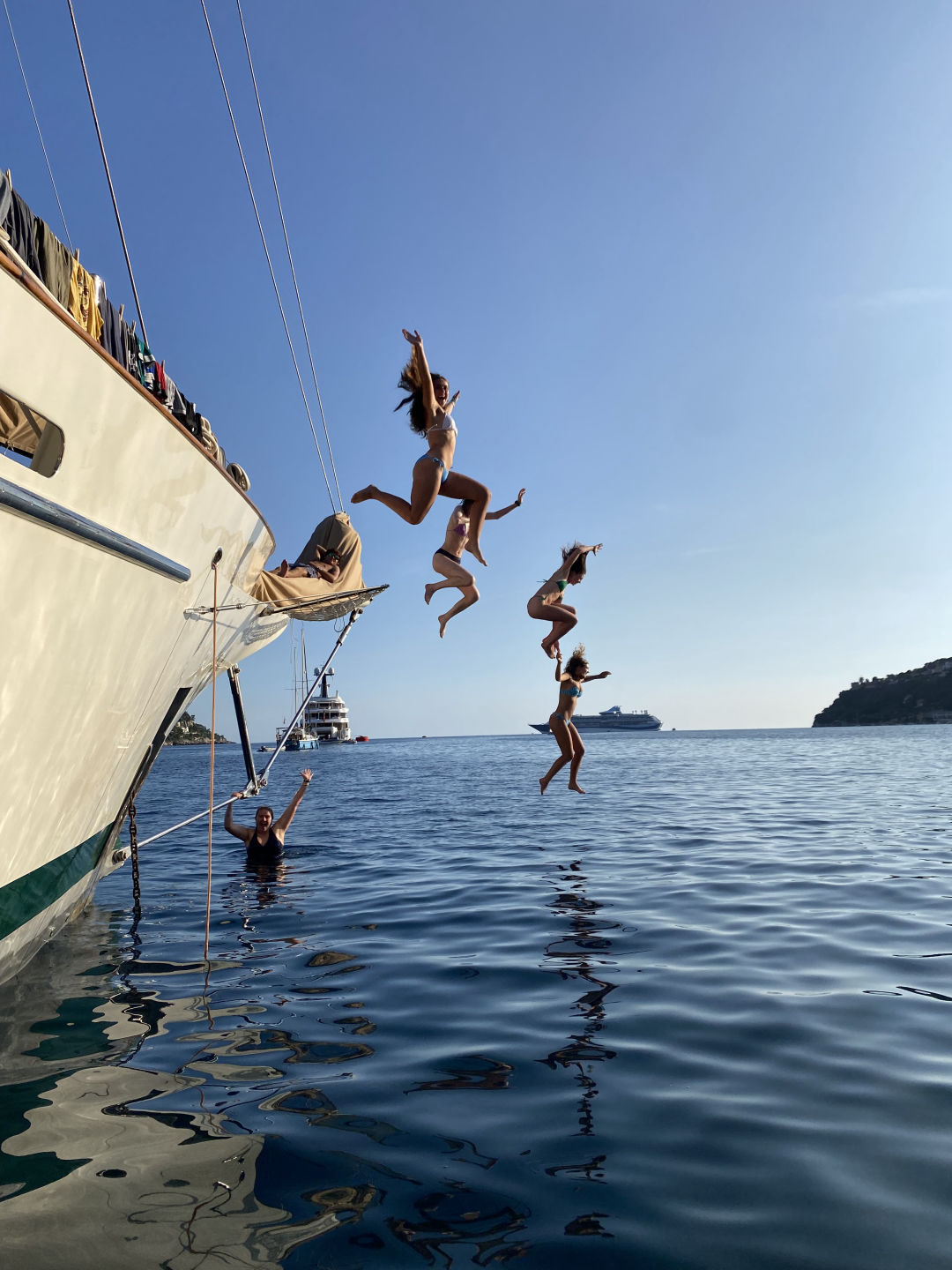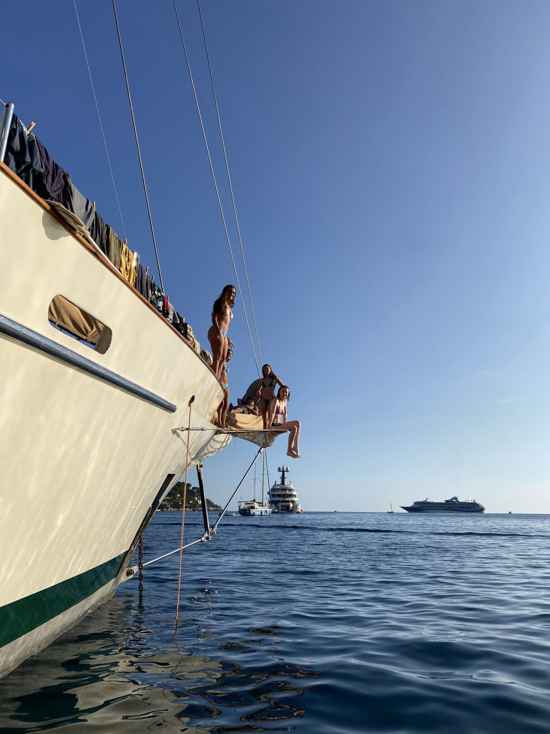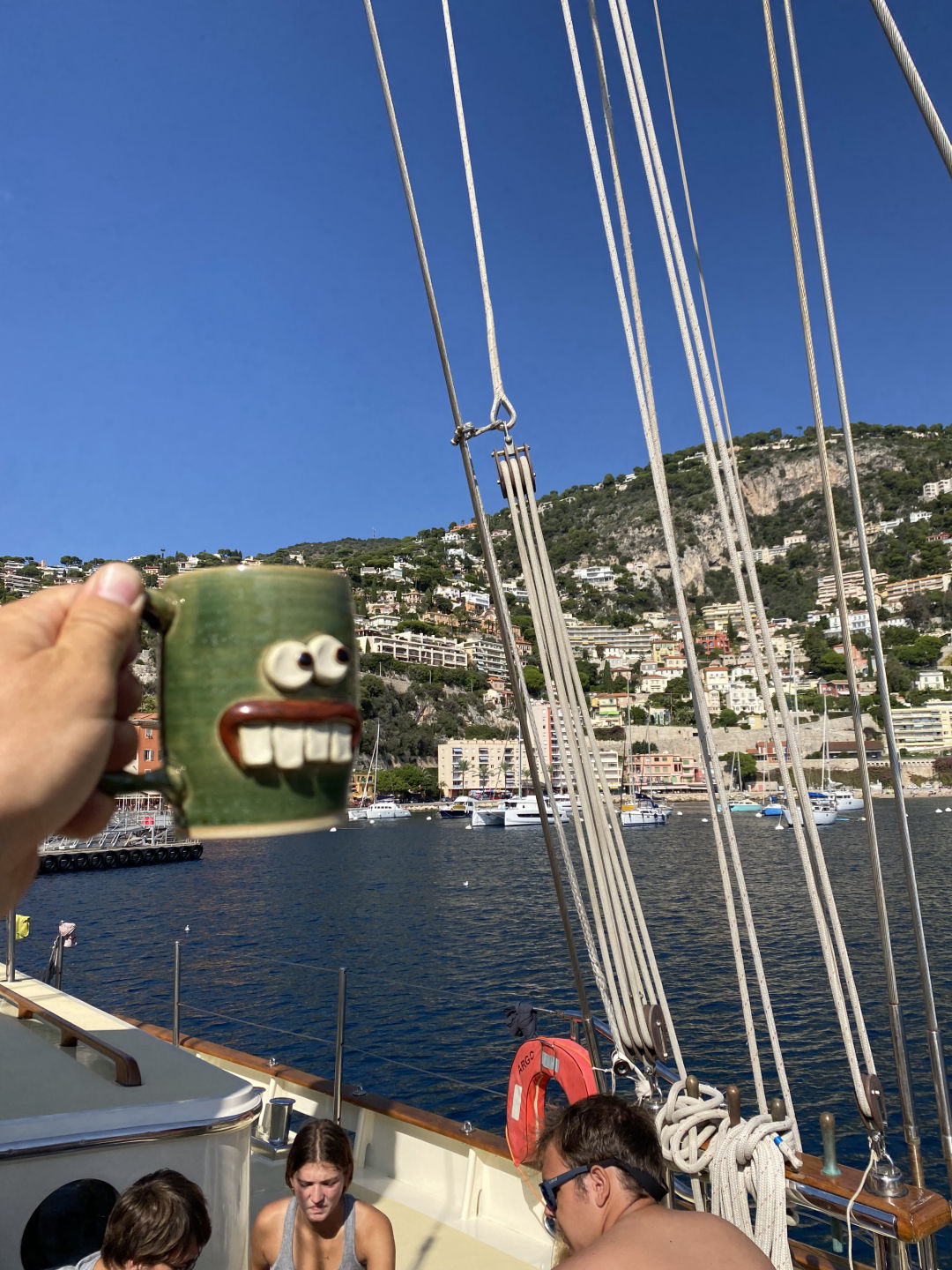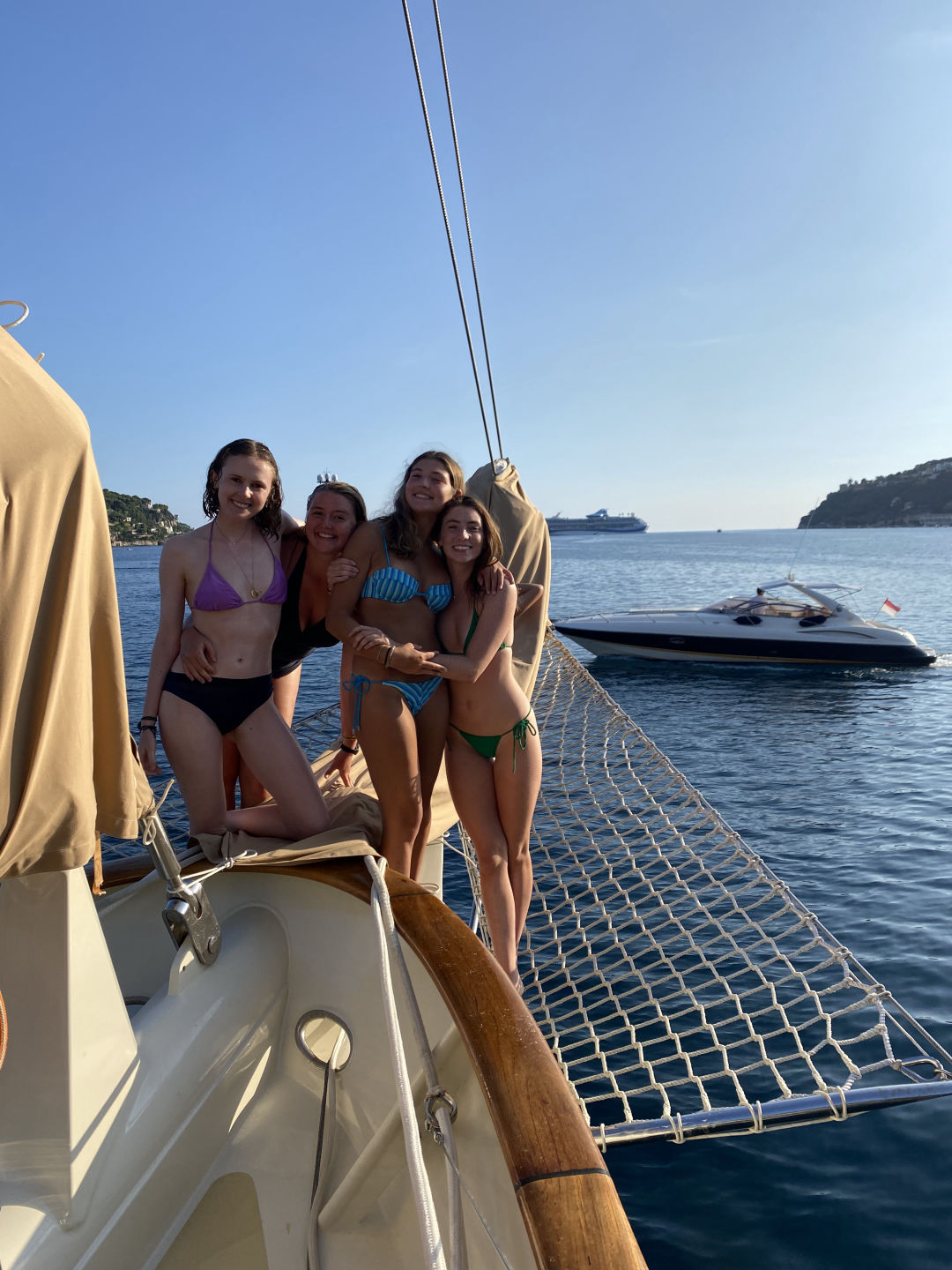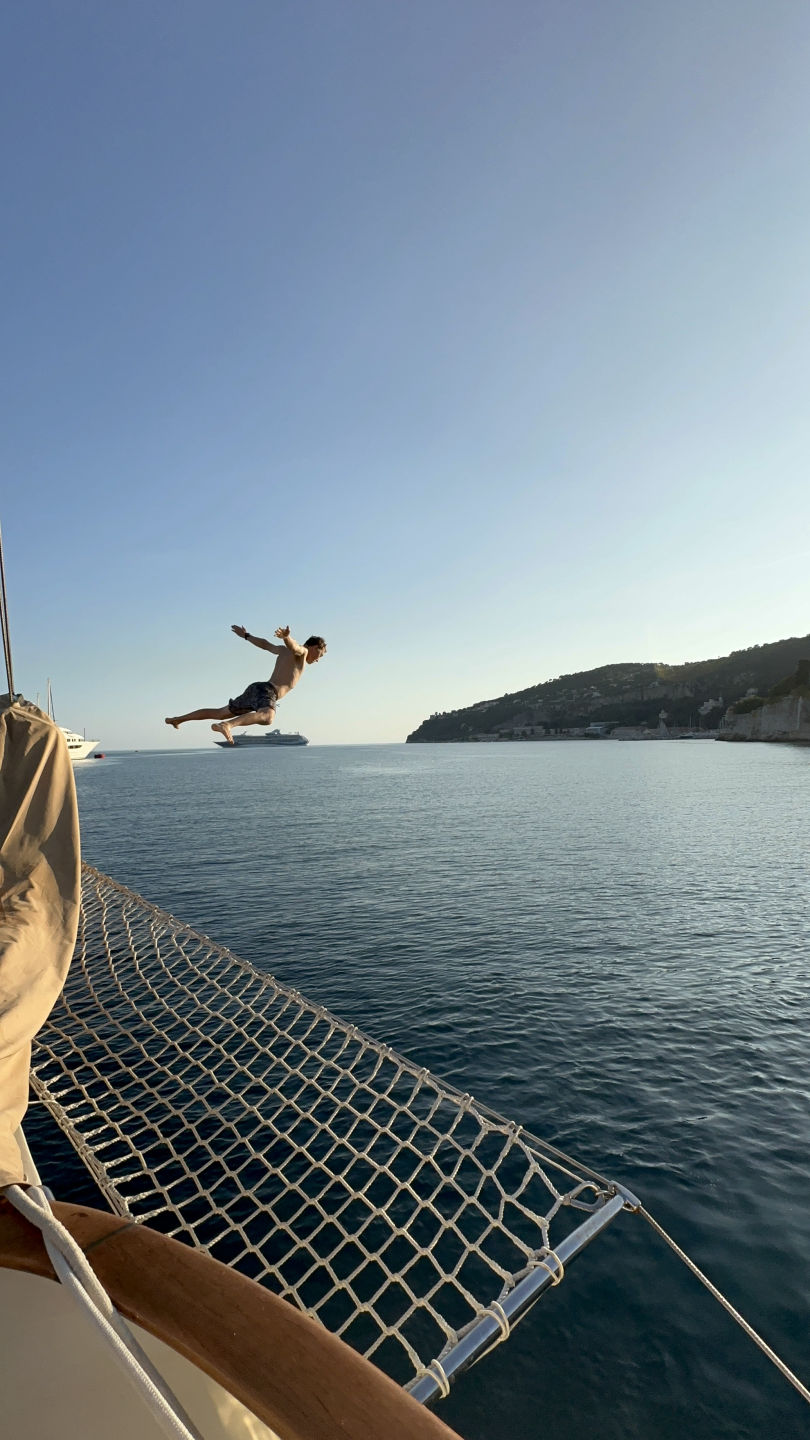 Wow, what a day to have another birthday on board, Argo. We dropped anchor in Villefranche around 0730 and caught up on some studying and laundry before lunch. Xavi learned a valuable lesson about where not to leave his water bottle on deck as it mysteriously wound up high up the flag halyard… After back-to-back classes with Amanda and Anna, we all went out on deck for a swim before supper. The swim quickly escalated to a crazy bowsprit jumping session highlighted by Gordon’s backflip belly flop, Stich’s kitten pounce, Calum’s sailors dive, and everyone else’s attempts at a new belly flop dive combo (we are yet to find a proper name for it).