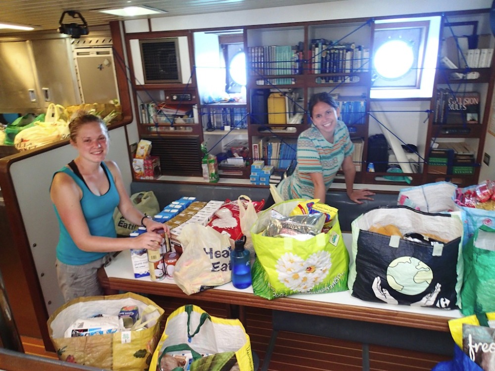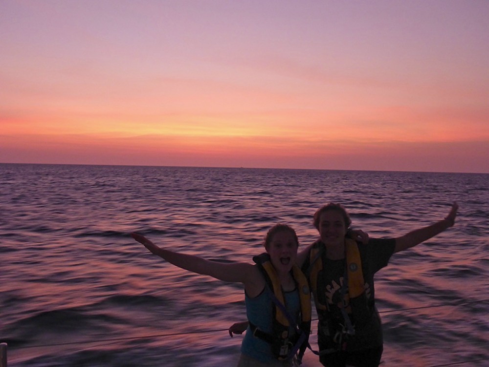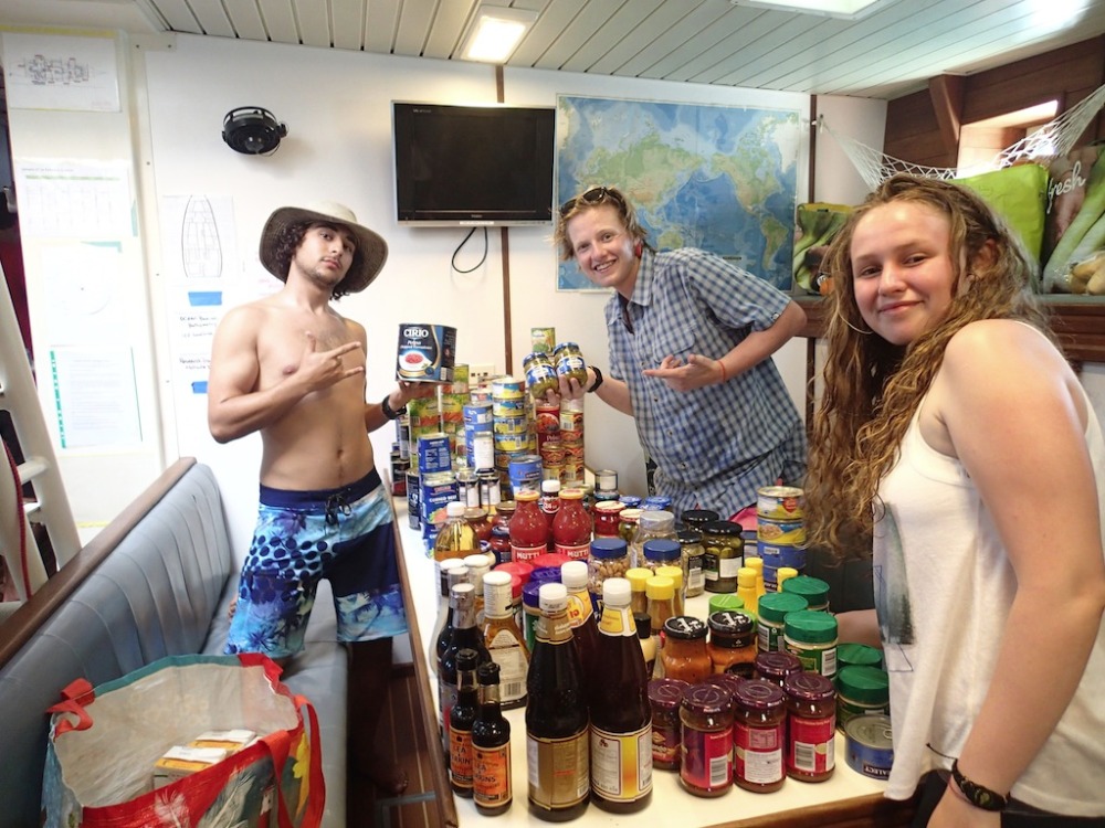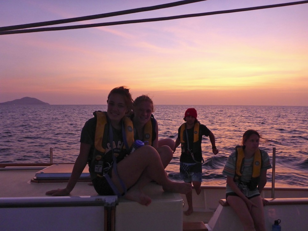 Today was a busy day for the crew of Argo. We arrived in Phuket after an overnight passage from the Similans. It was our first shot at Boat Appreciation (giving a little love back to Argo in the form of cleaning), and we rocked it. Midway through bleaching down the galley and listening to Beyonce at full blast, we found out that in order to clear customs, we all needed to go to shore. Lickedy spilt, we made ourselves presentable and lined up outside the customs office, waiting for our passports to be stamped. Once cleared, several of us embarked on the insane journey of provisioning. We nearly cleared the store out of tortillas and UHT milk – filling 16 carts with grocery bags. The process came to a halt when trouble arose with the cash register, but eventually, we were carrying our bags into the taxi. With hopes of leaving for Langkawi by 3 pm, we made it our goal to get the groceries from the pier to our boat as quickly as possible. The process was on par with training for a triathlon. Red-faced and sweaty, we sprinted back and forth on the pier, loading our dinghies. I’m sure we looked insane to anyone witnessing the spectacle. Once all the food was loaded onto Argo, we packed it away in sneaky compartments under our beds and floorboards. We ate delicious Pad Thai for dinner, lifted our sails, and transitioned into our watch team rotations. The125 nautical miles to Langkawi were bumpy, and everyone emerged from bow watch soaked by the waves, although almost everyone (especially Joe) will admit to loving it. We are all excited to explore Malaysia before our major passage to the Maldives in a few days!