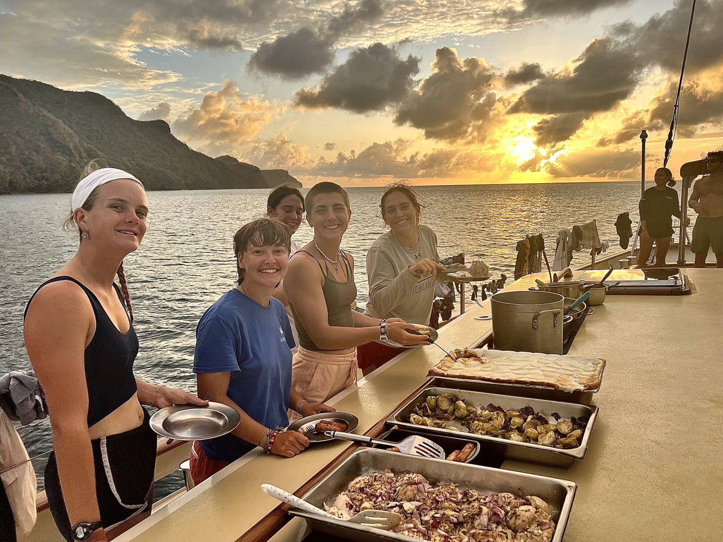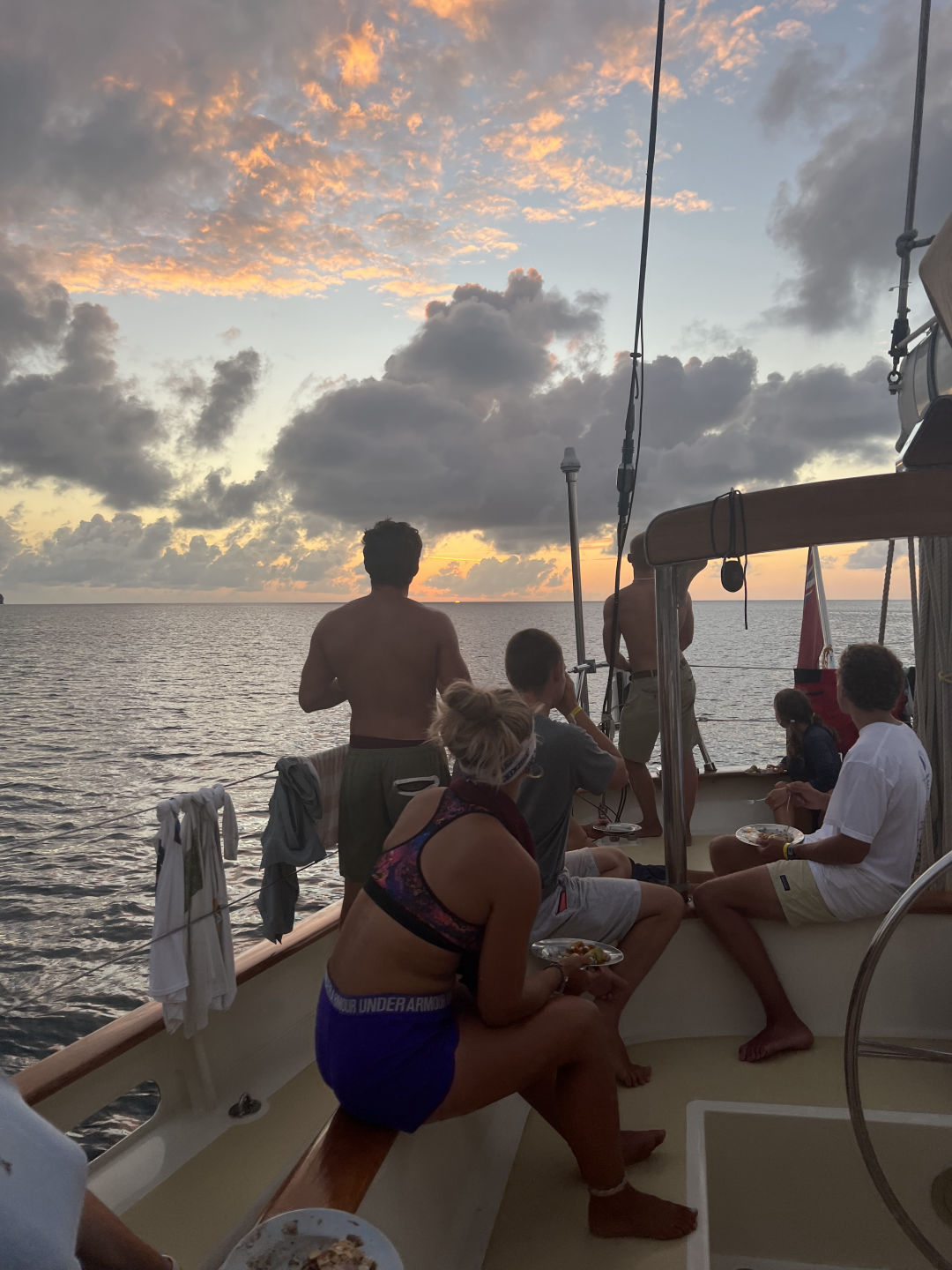 Right before Thanksgiving Dinner, courtesy of Audrey and the knights of the Round Table (her sous chefs), we arrived in Bequia, marking the end of the Student-led passage. Peter and the cabinet (Zoe, Elisabeth, and yours truly), as well as watch team leaders, led us valiantly to the promised land of Bequia.