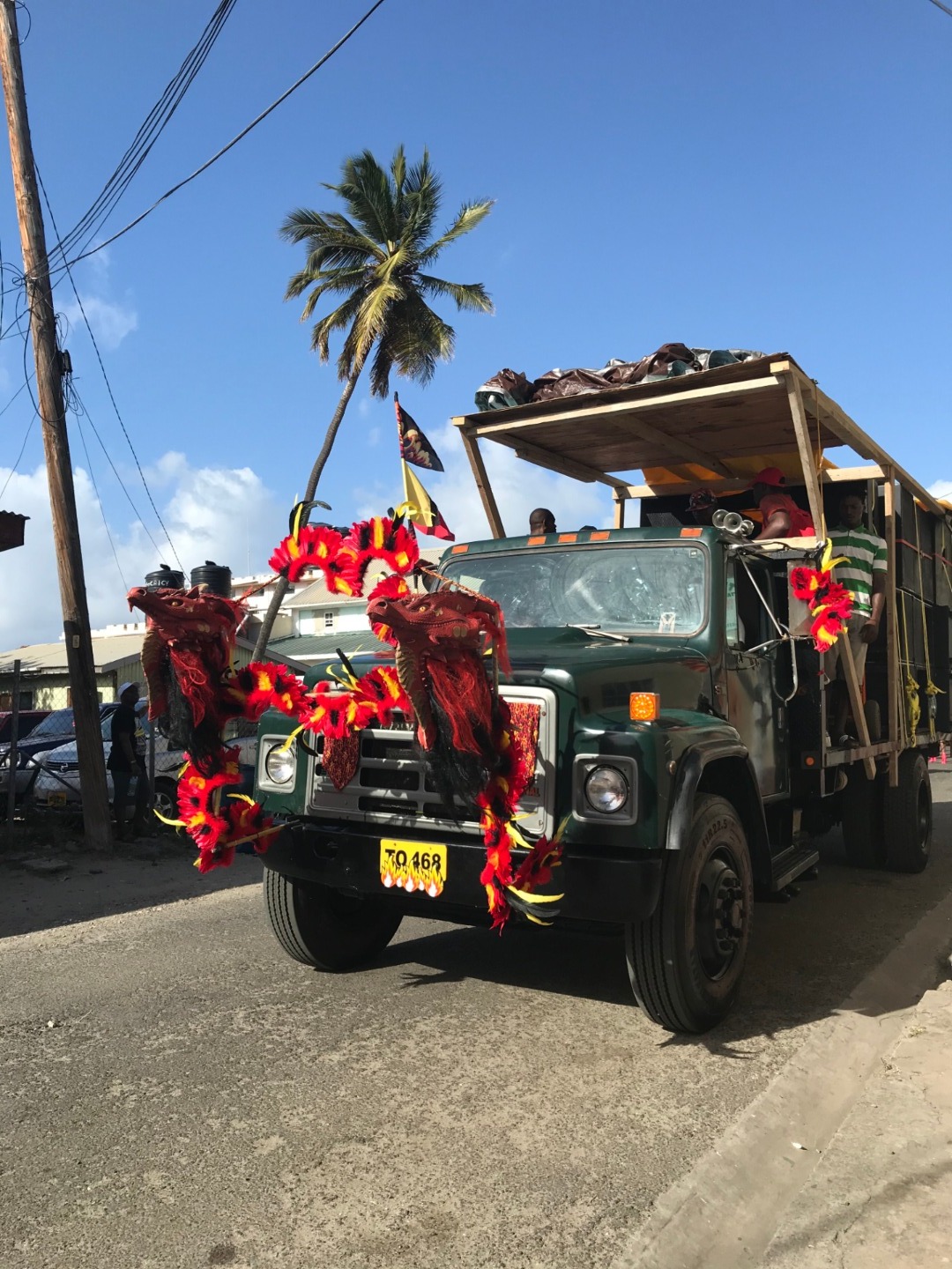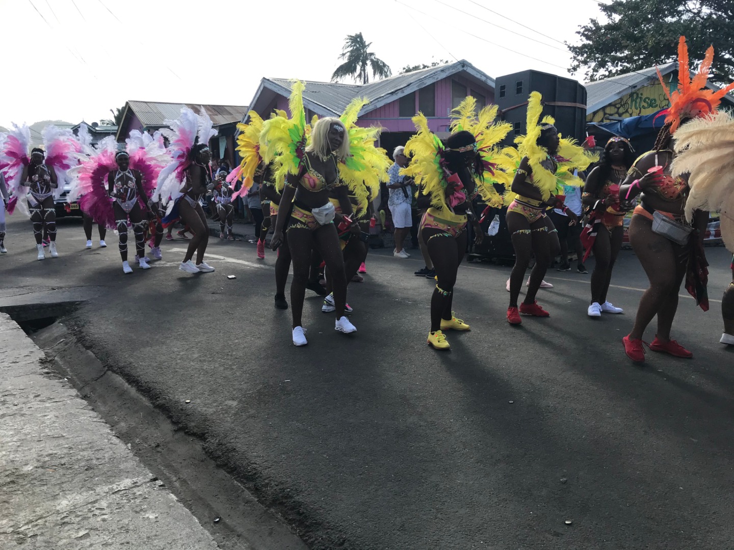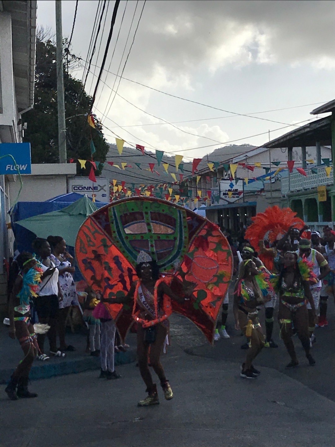 What a crazy 24hrs has it been. Our day started out very nice and peaceful, having some amazing French Toast for breakfast and some delicious fruit. But due to our maybe not so great scheduling skills, we’ve been hit with three quizzes and an exam all in the past 24hrs. Safe to say our brains are fried. Don’t worry, though, there has been a light at the end of the tunnel. For example, before lunch today, many of us spent the late morning swimming, tanning, painting, and overall just relaxing. The weather could not have been better, and we all took advantage of it. Then after a delicious lunch, we had some review time for our Marine Bio exam, and after that, we were off to experience carnival. The carnival is one of the most popular Caribbean festivals, and it did not disappoint. For the last two days we’ve been hearing the loud music and cheering from shore, and today we finally got to enjoy it. There were hundreds of people walking down the street, dancing, eating, laughing, singing, drinking and overall just having a great time. Many of us went to a local cafe, where they had the best smoothies and milkshakes which were very delightful and refreshing. We got to see the many foods stands the carnival had and even bought a couple of items from the different local stores. We also got to see Ms. Carriacou 2020 and all her dancers around her. Safe to say their outfits were hard to miss and actually pretty awesome.