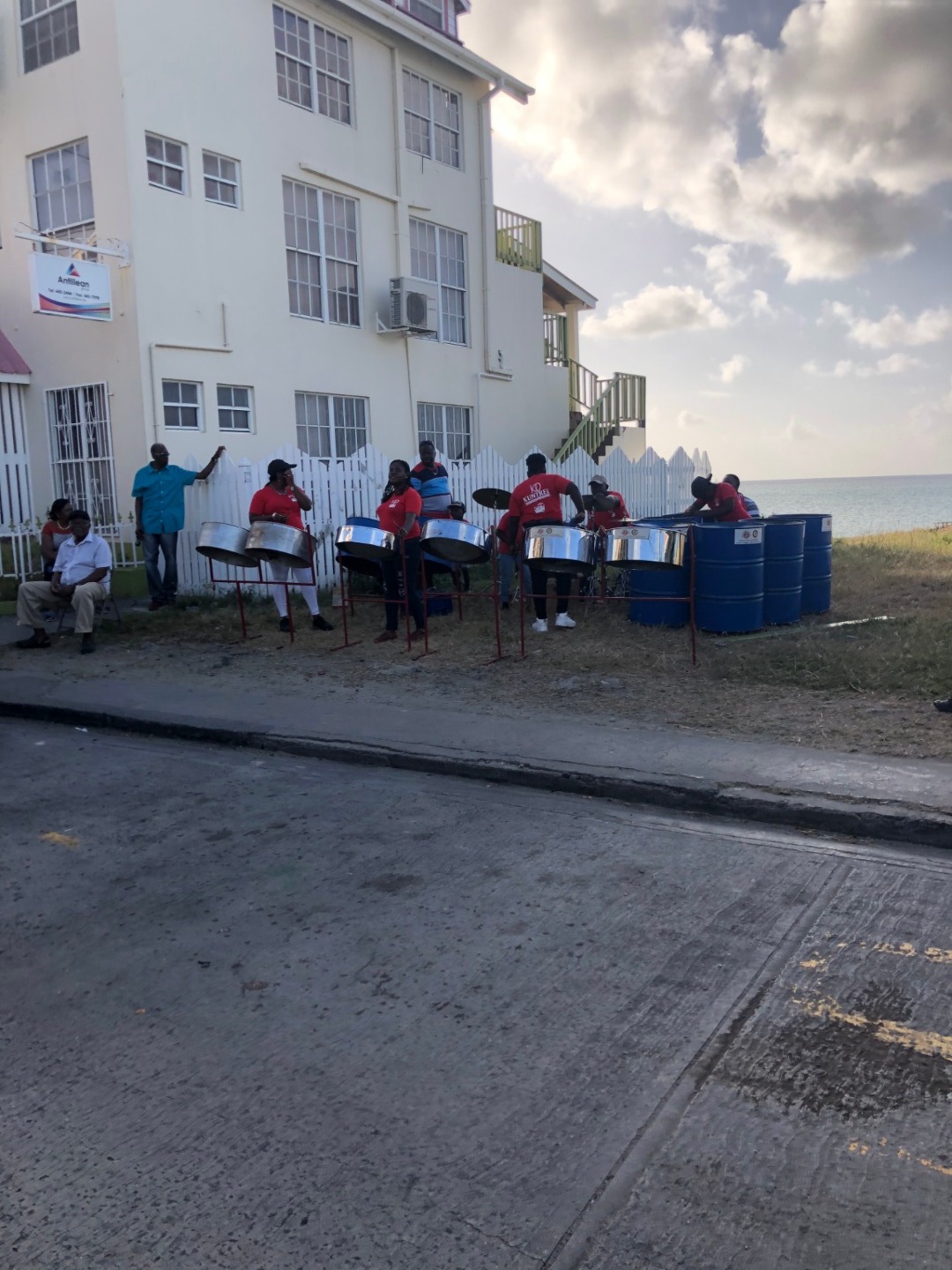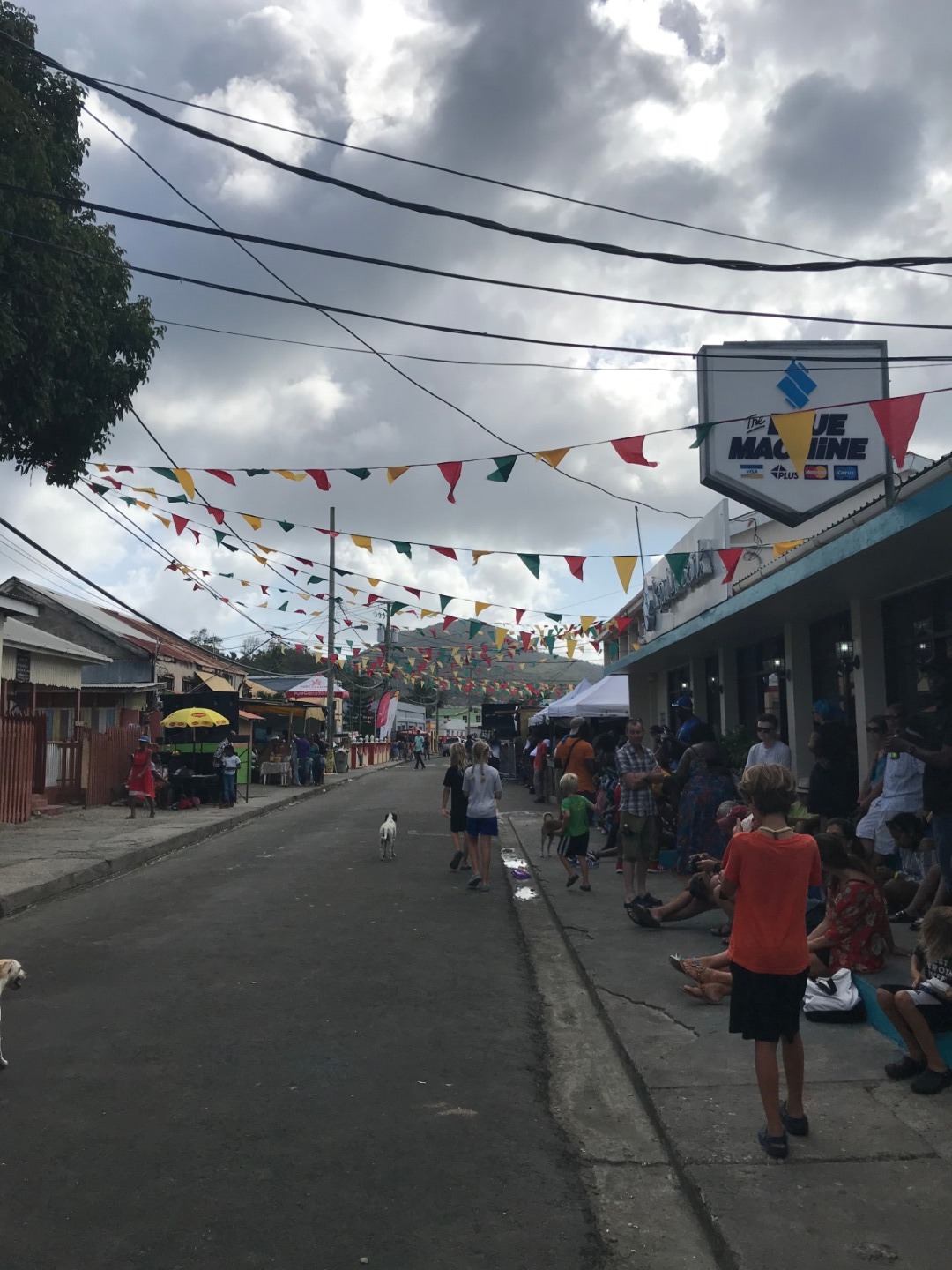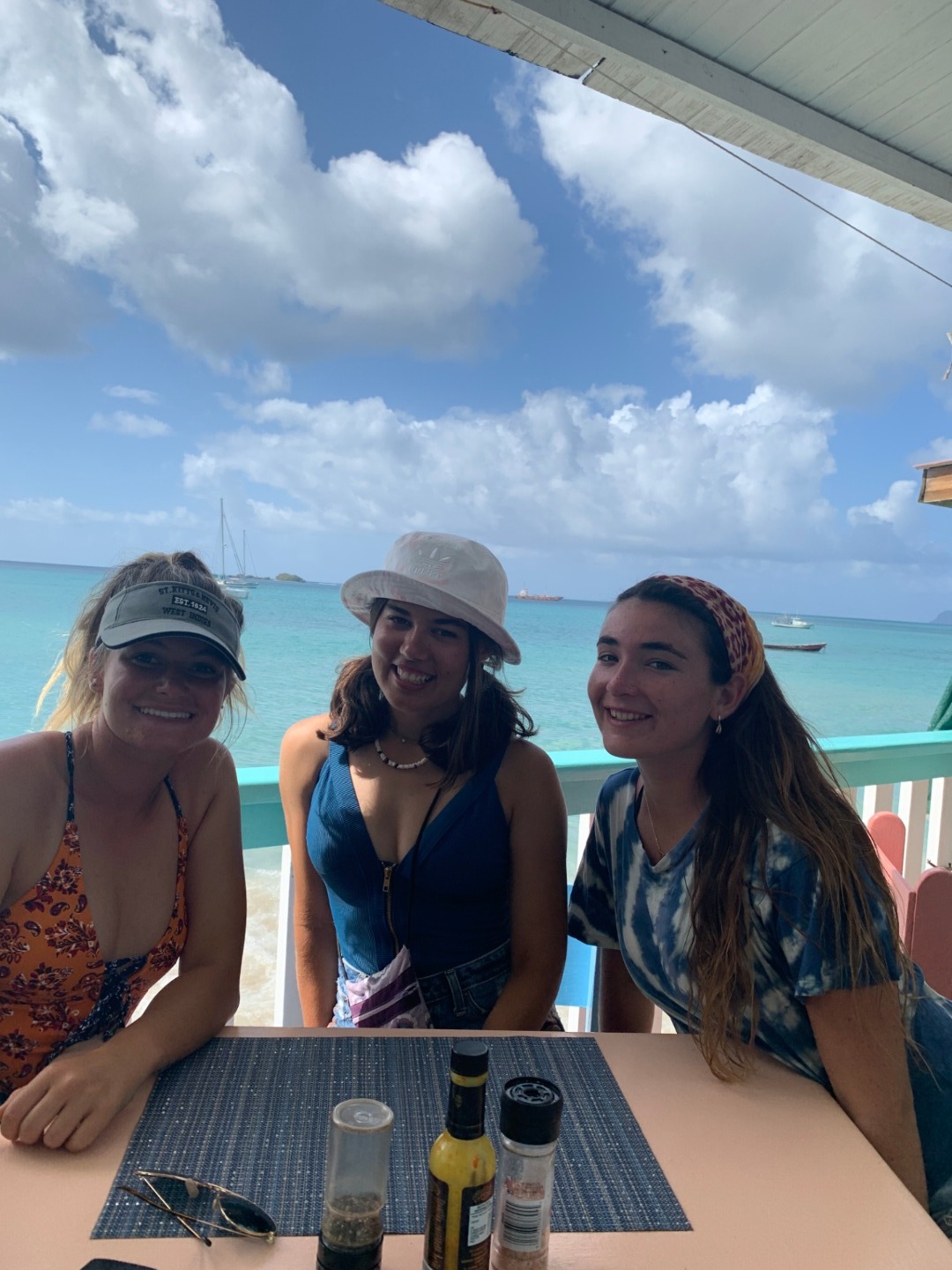 What a crazy 24hrs has it been. Our day started out very nice and peaceful, having some amazing French Toast for breakfast and some delicious fruit. But due to our maybe not so great scheduling skills, we’ve been hit with three quizzes and an exam all in the past 24hrs. Safe to say our brains are fried. Don’t worry, though, there has been a light at the end of the tunnel. For example, before lunch today, many of us spent the late morning swimming, tanning, painting, and overall just relaxing. The weather could not have been better, and we all took advantage of it. Then after a delicious lunch, we had some review time for our Marine Bio exam, and after that, we were off to experience carnival. The carnival is one of the most popular Caribbean festivals, and it did not disappoint. For the last two days we’ve been hearing the loud music and cheering from shore, and today we finally got to enjoy it. There were hundreds of people walking down the street, dancing, eating, laughing, singing, drinking and overall just having a great time. Many of us went to a local cafe, where they had the best smoothies and milkshakes which were very delightful and refreshing. We got to see the many foods stands the carnival had and even bought a couple of items from the different local stores. We also got to see Ms. Carriacou 2020 and all her dancers around her. Safe to say their outfits were hard to miss and actually pretty awesome.