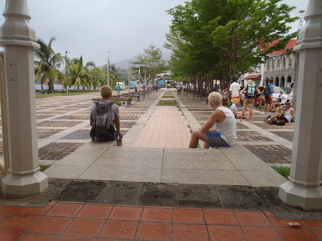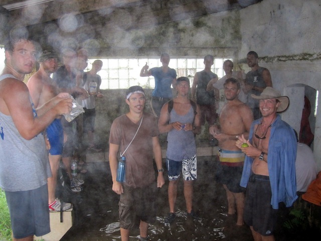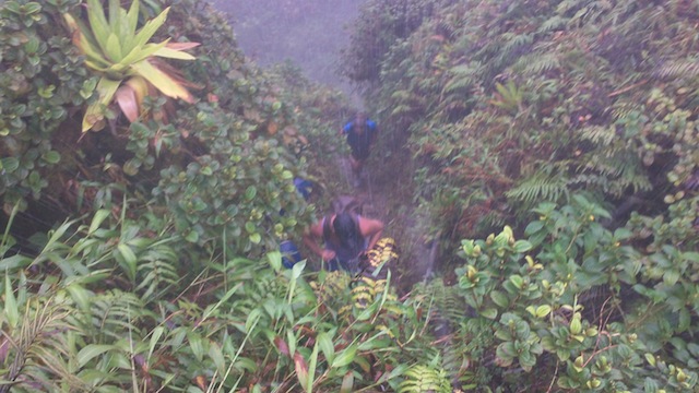 Today started off with an early wake-up and an apple pancake breakfast to make it worthwhile. The reason we got so early was to catch an 8:00 taxi to our hike of Mt. Pele. The 20-minute drive was full of rolling hills and pleasant scenery. When we arrived, it started to downpour, a little discouraging, but we continued onward. The trail had winding turns, ups and downs, and a steep rocky path to make the hike more interesting. As we got higher, the fog and mist got thicker, and of course, the rain got heavier. When we reached the halfway point, we decided to stop at a little shack to eat lunch. The water had been flooding the abandoned building, making it a 12-inch deep swimming pool. After lunch, we made the decision to head back down because of the heavy rain. The trail that we had used to make our way up had become a rushing waterfall, but we made it down with the help of our goat noises. The day was finished with some pizza baguettes and apple pie.