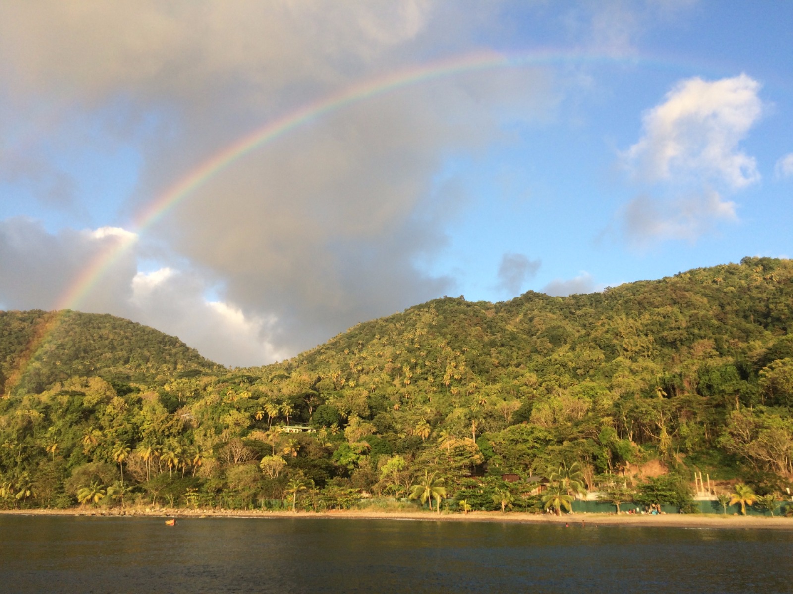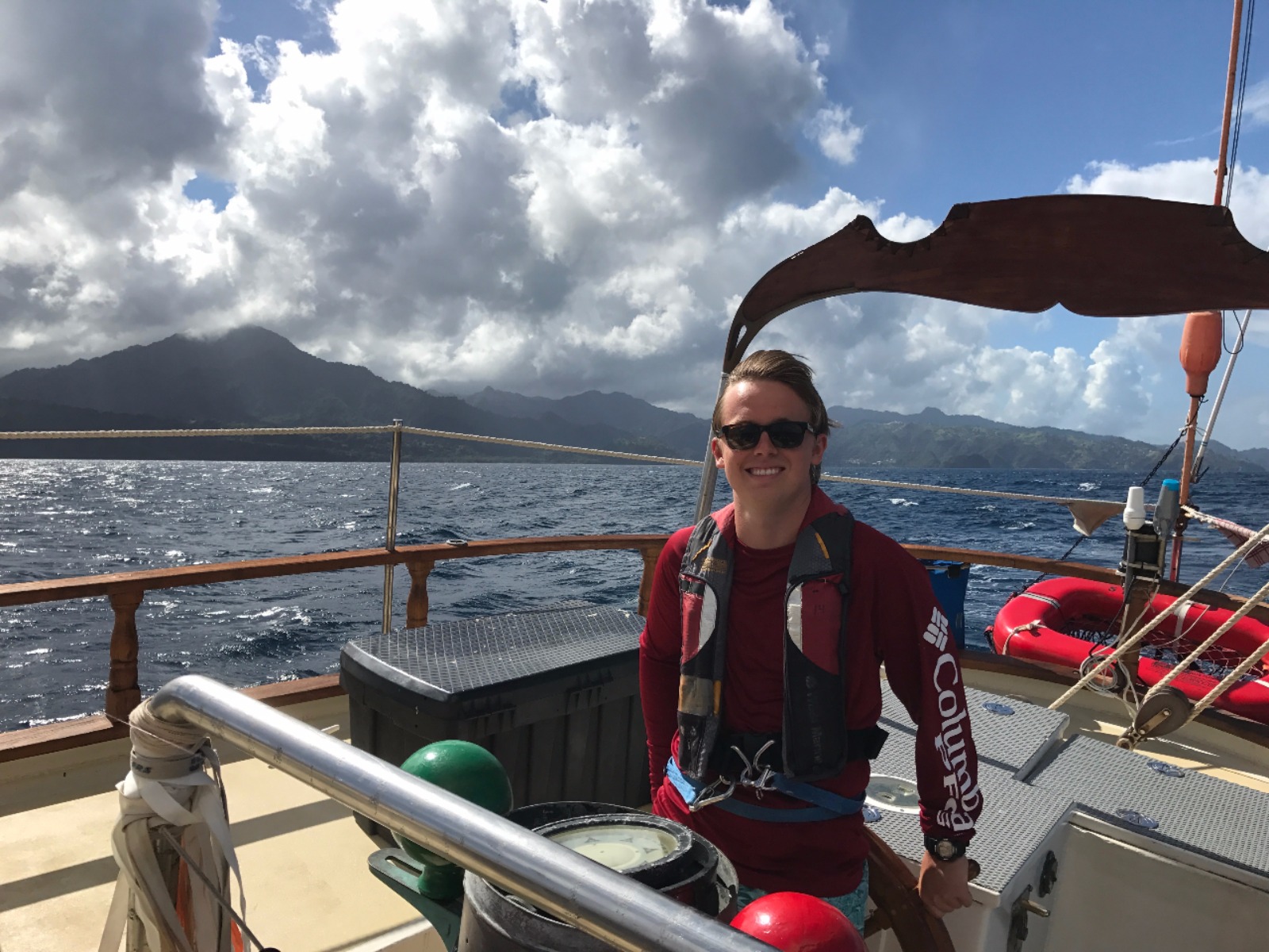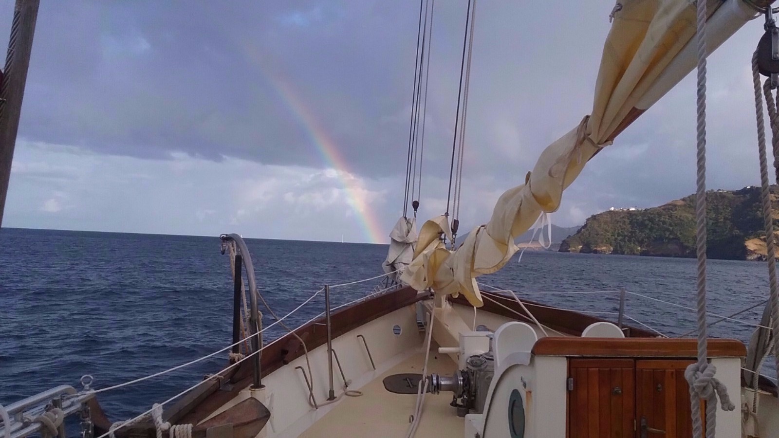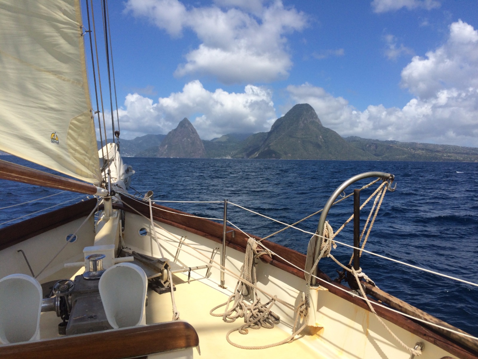 Today was full of rainbows. We had an early wake-up this morning because some of us decided to go hike up a nearby rock to a historic outpost in St. Vincent. After hiking, we had delicious waffles with Nutella and strawberries for breakfast. During breakfast, a double rainbow appeared over St. Vincent. What could be more perfect than rainbows and waffles? After breakfast, we finished doing passage prep for a short passage to St. Lucia and set off. On the way to St. Lucia, we saw several rainbows. We split into watch teams for the passage, and some of us even got in a nap today! The view coming into St. Vincent was gorgeous. We moored right next to one of the pitons, which are two tall ancient volcanoes. Before dinner, we got the chance to do some boat appreciation and clean all the salt and grime off the deck of Ocean Star. After yummy pad Thai for dinner, we had our student leadership class. It was an awesome day! Tomorrow we will go explore St. Lucia’s botanical gardens, hot springs, and another volcano.