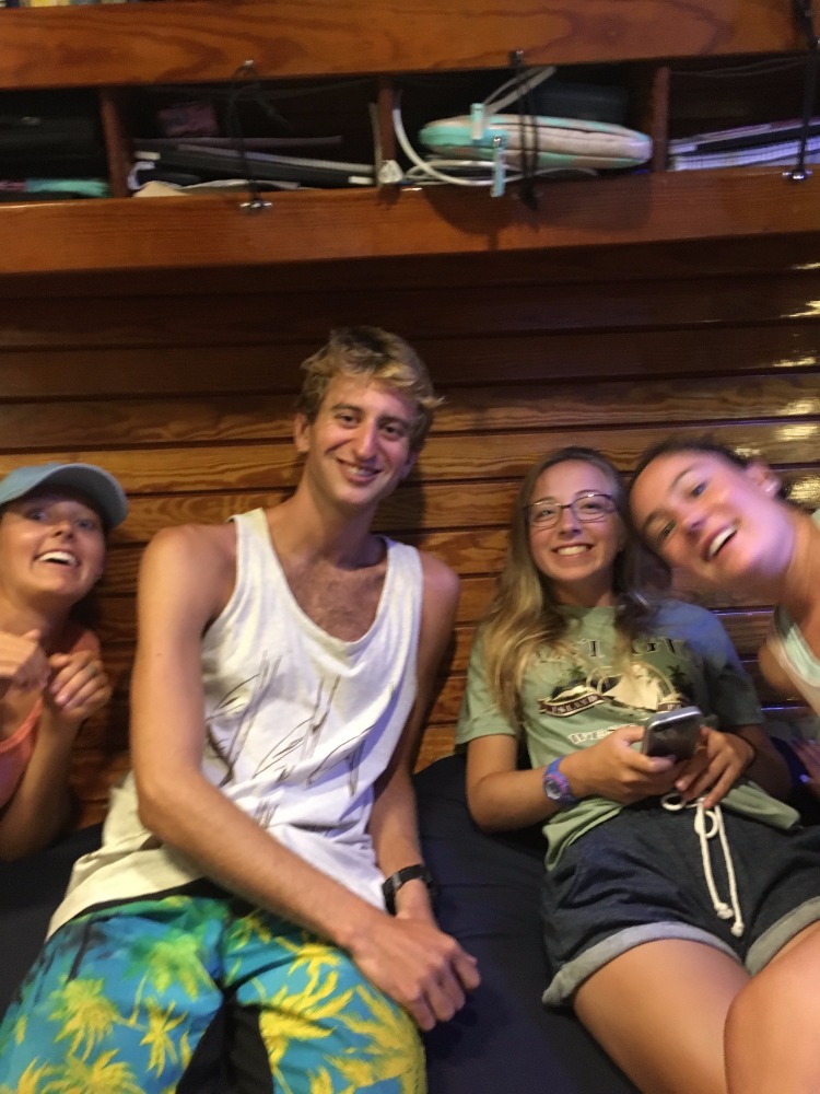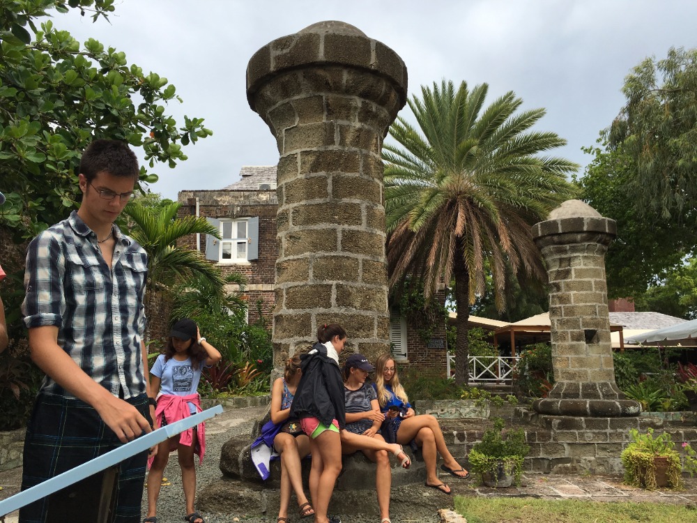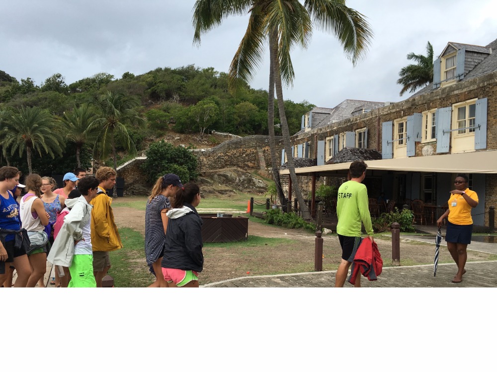 So today, everyone woke up to some rain, which cleared up for breakfast, only to start pouring again halfway through. I should mention that our passage to Barbuda was canceled because of some stormy weather, and today we sat at the dock and tried to get ahead with classes. Our first mad dash from the rain was within an hour of waking up and really set the tone for the day. After drying the salon, we eventually settled down for an MTE class on dead reckoning. Ian made up the most descriptive and dramatic scenarios for why we couldn’t use electronics to navigate, including dialogue between crew members and even a couple of thunder impressions. Then we went on a tour of Nelson’s Dockyard, a historic fortified anchorage for British ships in the 1800s, and currently Ocean Star. Riley broke a tree, trying to get some fruit. Anya cooked a fantastic lunch, and halfway through, it started raining. This one was a lot more dramatic because we saw the wall of rain coming over the hills, so we started running around, grabbing food, and closing hatches. There was a lot of yelling involved, but looking back, I think it was pretty organized. After lunch, we had an OCE class to finish up those lit review presentations, then divemaster Dani and divemaster Lo, as we addressed the divemaster candidates, practiced a rescue scenario while the rest of us sorted through photos, caught up on journal entries, and enjoyed some free time. For dinner, we opted to just eat down below, as one day can only contain so much rain fleeing. Everyone’s just cleaning up now, but soon we’ll be heading over to a nearby restaurant to practice navigation. Hopefully, tomorrow we’ll be able to sail to St. Barths if the weather clears up, but otherwise, it’ll just be another chill day to catch up on sleep and schoolwork and enjoy Antigua.