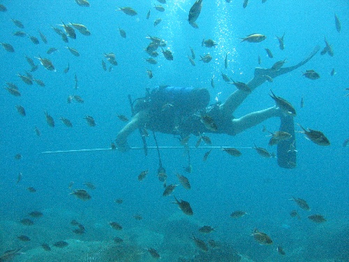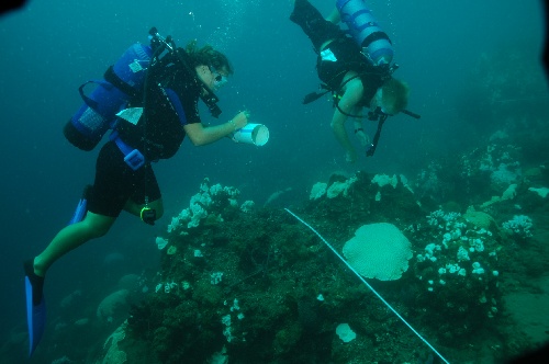 Today, I woke the chefs and crew to a beautiful morningthe first without rain in the past few days. Today was dedicated to science. We were doing Reef Check surveys with the SMMA. We had a dive at 8:30 a.m. and another one at 1:30 p.m. It was fun to dive but also to help the reef community. After the dive, we had a little time to relax before dinner. We had a delicious stir-fry and ate watching a beautiful sunset, not eating in the rain. Morale is good, and we are looking forward to a fun day on the island tour tomorrow.