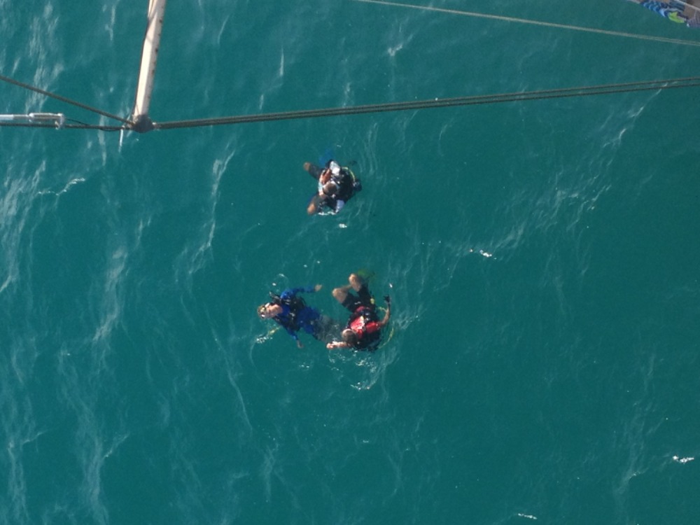 Today was a very relaxing day. We had a short trip to Green Island, a small island right beside Antigua. During the trip, we had time to watch Pirates of the Caribbean and play cards. Once we anchored off the island, we had our delicious lunch, followed by the OCE class, where we learned more about the ocean. Then we had time for swimming and working on our science research projects. Some also decided to sit on the crow’s nest while one of our crew worked towards his rescue diver certification. For dinner, we had a special treat of pork chops and mashed potatoes. It was a great day, with a combination of driving the boat, science, and just laying on deck and relaxing.