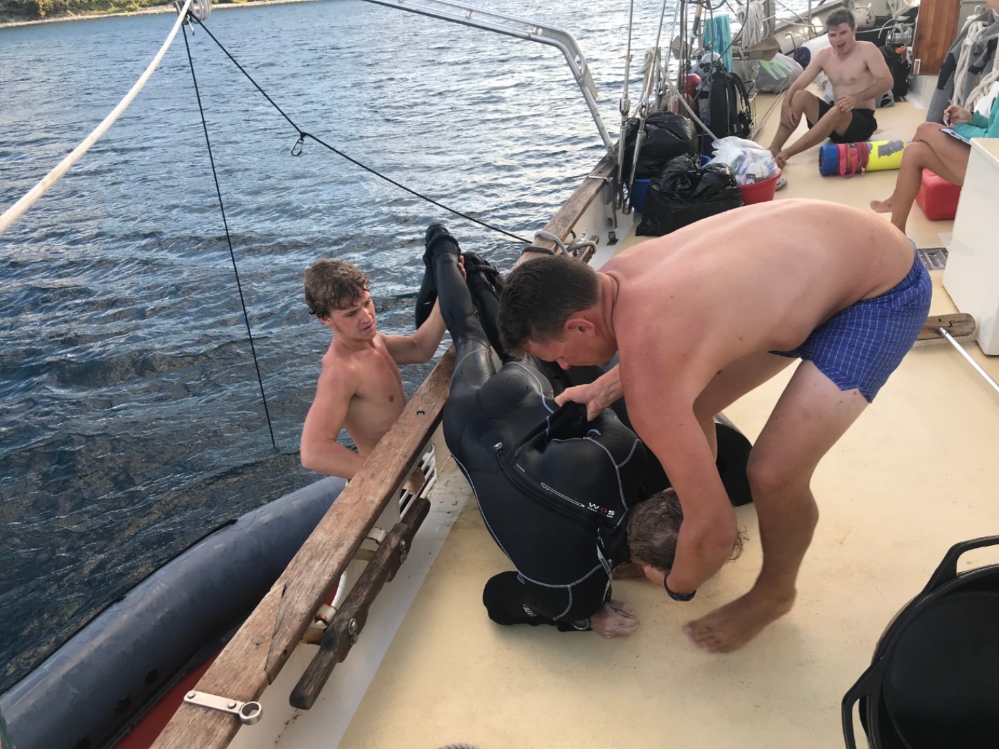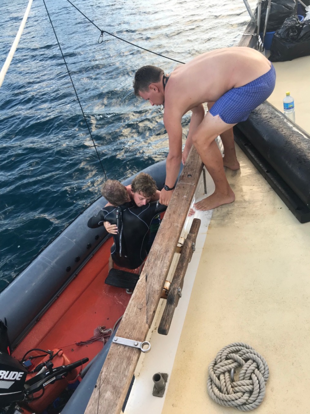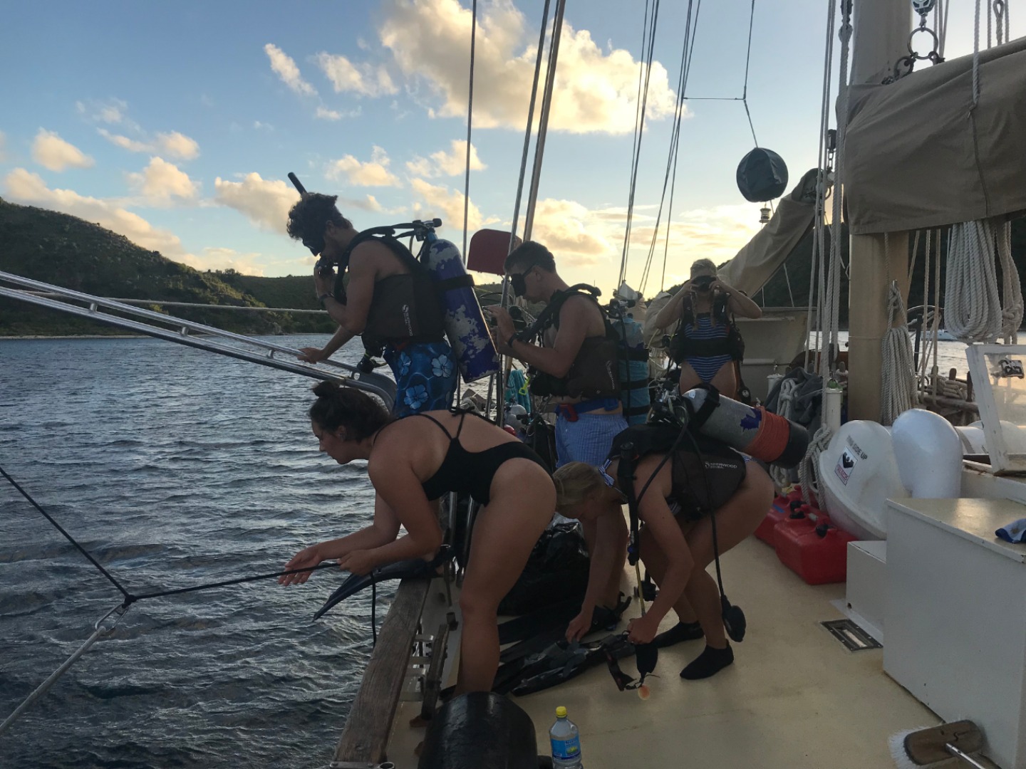This morning, we were woken up to a rescue diver scenario where Steve was unconscious and not breathing on the anchor line. We all popped out of bed, knowing that we had to respond quickly. After 7 minutes, we found Steve and began the process of getting him back onto Ocean Star, remembering all that we had learned throughout the rescue diver and emergency first responder courses. After the exciting morning, we had a nice breakfast of oatmeal, loading the bowls up with fruit, peanut butter, and so much more. We then did some more emergency first responder practice scenarios, and after getting into free/study time, we enjoyed some rest time and made the final adjustments or run-throughs of the Oceanography group project presentation. After some good study time, we had a refreshing and delicious salad with some show-stopping sweet potato chunks, crisp greens, and a variety of other delectable additions. Postlunch, we had some free study time, which was followed by the group presentations. One group presented their study of plastic surveys on the leeward and windward sides of islands, and the other shared their research on sediment found near the anchor at multiple locations. We then had a fajita/taco night, where most of us over-ate, then went to leadership and had some meaningful discussions, despite our sleepiness from a food coma creeping upon us, which inevitably took us to bed right after class for a good night’s sleep.
