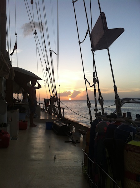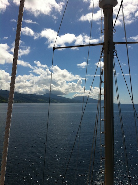 Today, we woke up in Portsmouth, Dominica, ate a cereal breakfast, and then had to say goodbye to that wonderful, water-rich island. Music from a party that had been going on all night petered out around 730 as we cleaned up our breakfast dishes. We proceeded to prep the boat for sailing, a process that has become so much shorter; it’s hard to imagine how long it took us in the beginning. The wind was good, and we sailed off the anchor. The sail was a bit nauseating for some, but for the most part, we enjoyed the sun and the remaining fruit collected on the tour in Dominica. The sail took us 24 miles to Les Saintes, a familiar place. The harbor area that we had left what felt like only a couple of weeks prior was now filled with yachts as the season had begun. We ate a fitting French Onion soup, then gave our boat a good scrub-down. Afterward, Ivy gave us a brief class on nutrient cycling and primary production up on deck. We then showered and did some work for an upcoming paper on Marine Protected Areas for Marine Bio, followed by a Bio class on animal identification. The animals are beginning to be familiar, and those that aren’t hopefully will be before the time is up. Tomorrow, we have shore time, and then we head north again for some new adventures.