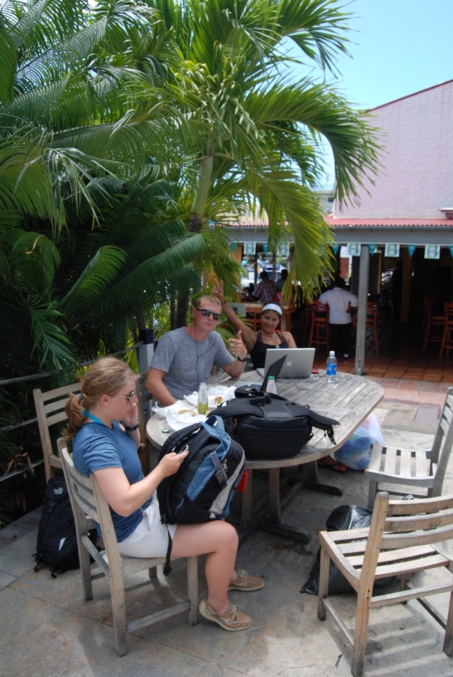 Buenos Noches Padres y Amigos, greetings from Spanish Harbour. We have returned to the Harbor after a thrilling day in Gorda Sound, learning the specific ins and outs of sailing. My day started out smoothly. Awakened at 6 am to a beautiful and calming sunrise. It was almost too calming because my eyes stayed pretty heavy until the chefs (Tiffany and Melissa) presented my favorite breakfast: cheese, eggs, and salsa. In fact, they continued to serve my favorite meals all day, with Turkey Sandwiches for lunch and a Mexican Dinner. Right away, basically at the crack of dawn, Kevin jumped right into the water and stunned the shipmates with his skill and talent for kiteboarding. He was literally able to shoot himself 20ft in the air with nothing but an oversized kite. Our motor back to Spanish Town went smoothly; well, actually, the wind was kicking today, and it rocked and rolled us, so much so that I got to sneak in a quick nap on the way (Thank God for sunscreen!). In the afternoon, after a brief review of some of the SCUBA techniques, we headed to land. Real land. Last night, we hit up an isolated restaurant that could only be reached by boat. This afternoon was the real deal. All the parents out there waiting for phone calls from the kiddies should be made aware that there were NO PHONE CARDS AVAILABLE on this Island. By the look of the shopkeepers, I’m not sure if any of the islands we visit will have them available (sorry, Mom, I’m trying!), but we will continue to look. Onshore I got to get ice cream and ice-cold coca-cola, a nutritionally healthy meal to keep my mind and body sound for the next month. I also had the amazing opportunity to challenge a local to a few games of pool (probably the only sport that doesn’t require aerobic activity, my favorite!) 3 games later, and the results were as follows: Game 1- Lynn wins; Game 2- Lynn wins by default; Game 3- Lynn loses by default. They have pretty even skill levels. This place was one of the coolest pool halls I have ever played in if you could call it a pool hall. It is completely open-aired, with only a real standing wall. Reggae music was playing in the background, and everyone was speaking a language I couldn’t placedefinitely one of the coolest and most unique experiences I have ever had. I have found that with a game like pool, everyone in America tends to have different variations of the rules, but surprisingly, this young man played by exactly the rules I was brought up playing with. I also met a man whose son goes to school in Greensboro, a town right outside of the town of Winston-Salem, where I just so happen to go to schoolsmall world. Tomorrow is going to be a very exciting day, and I have an anchor watch tonight from 4 am to 5 am, so now is my time to sign off. Peace.