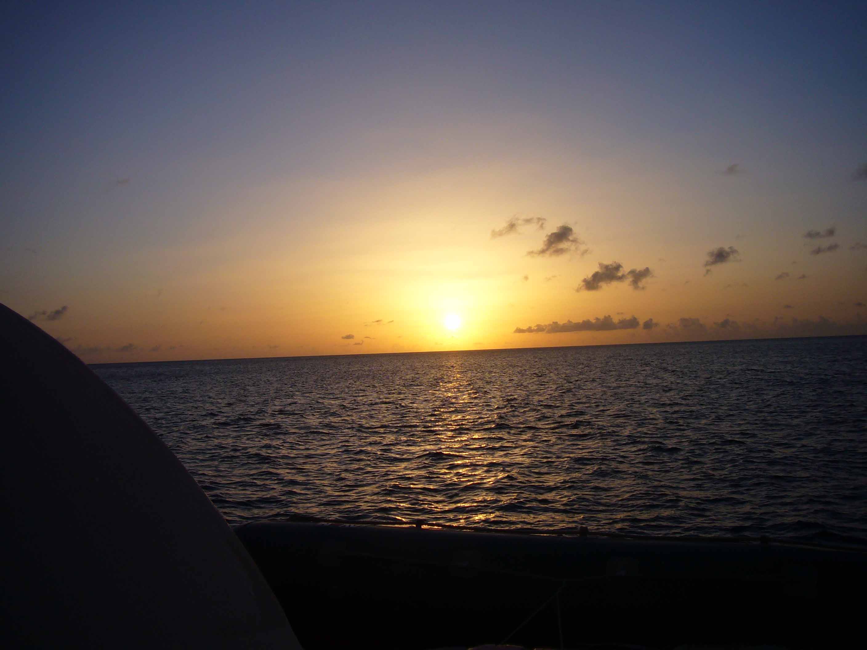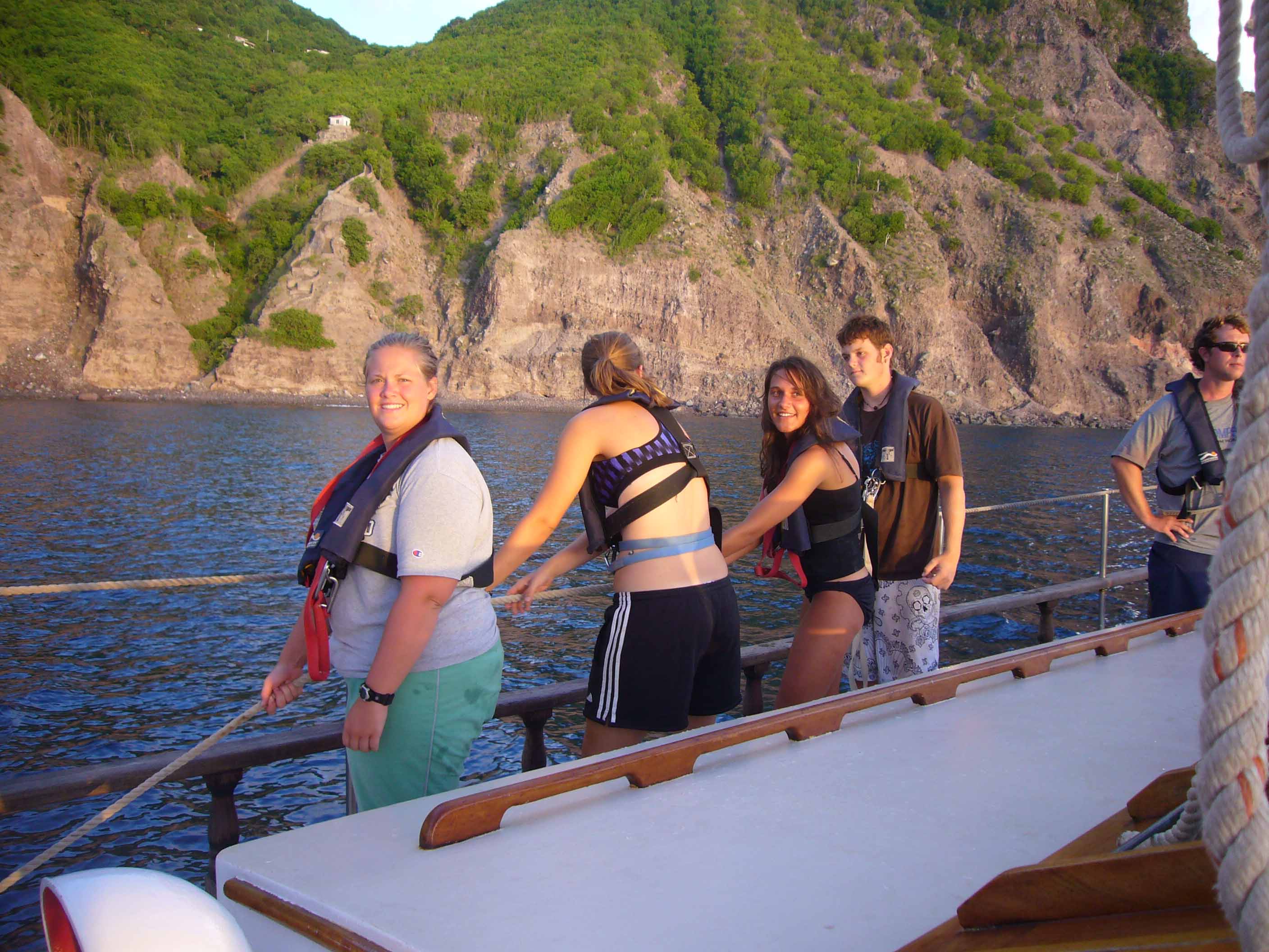 Yesterday, we explored below the waters of Saba. Today was the opposite. We hiked up from sea level to nearly 3,000ft at the summit of Mt Scenery. The hike up was pretty strenuous, with hundreds of steps that were 1.5 times too tall and too long. The views as we hiked were amazing, and the vegetation in the cloud forest was very dramatic. The clouds cleared briefly while we were at the top, and we were able to see the tiny runway of the airport. We then headed down to the town called Windwardside, where we visited the studio of Jo Bean and learned to make glass beads. Most of the crew enjoyed pizza for lunch at Saba’s Treasure, a local nautical restaurant. We then headed back to the town called the Bottom and, from there, traced our steps back down the “ladder” from the old customs house, a little easier than on the way up. Back aboard, we showered and prepared the boat for our final passage back to the BVI’s. We set sail into the sunset after dinner. The evening was perfect, the seas extremely calm, not a cloud in the sky and many shooting stars. Everyone enjoyed some final quality time with their watch members as we made our way back to our starting point, the BVIs, where we began this adventure many days ago.