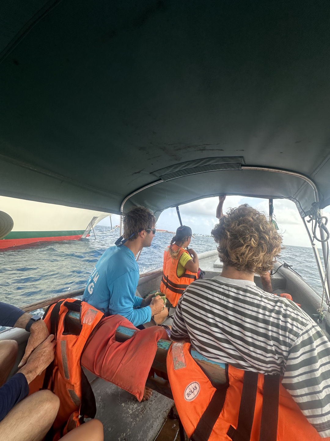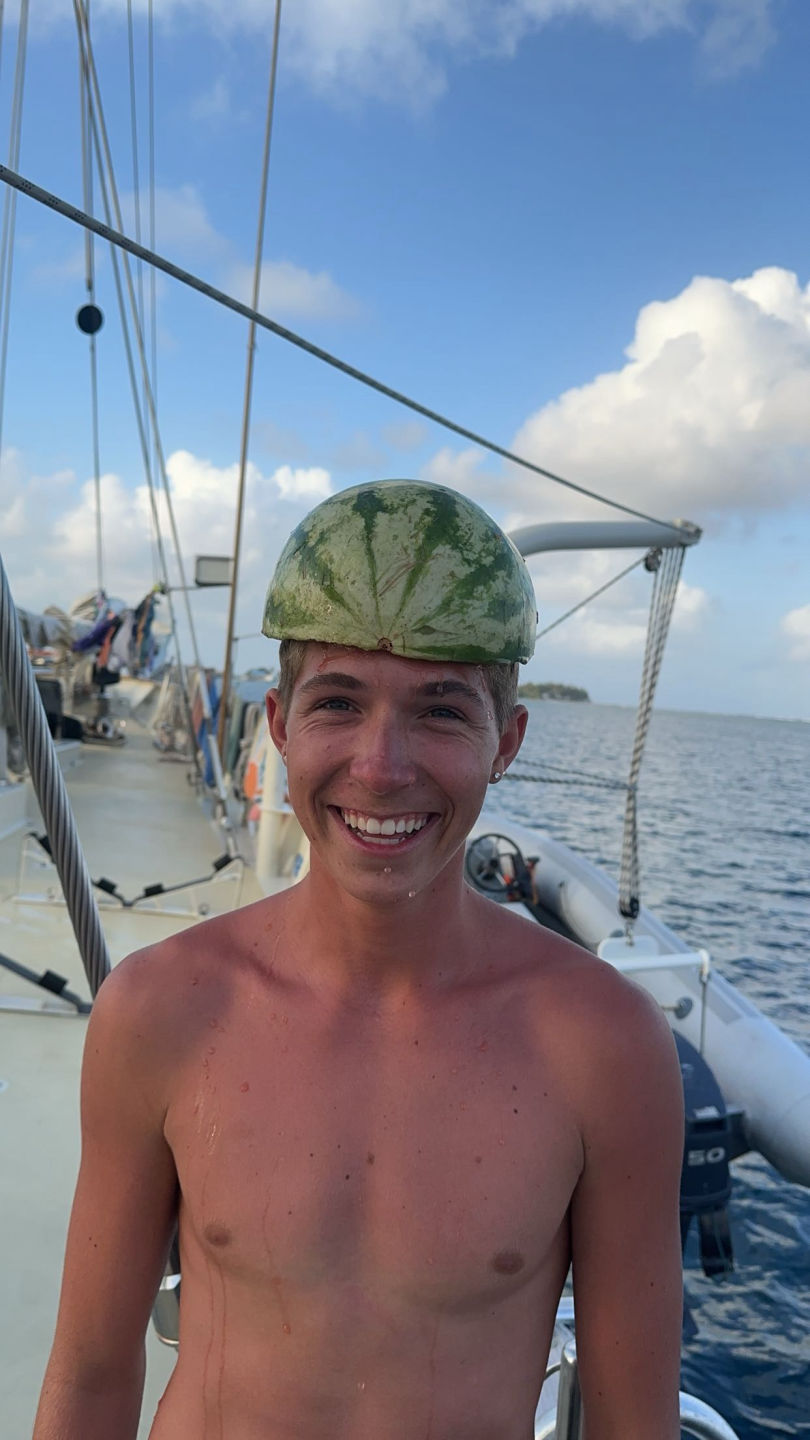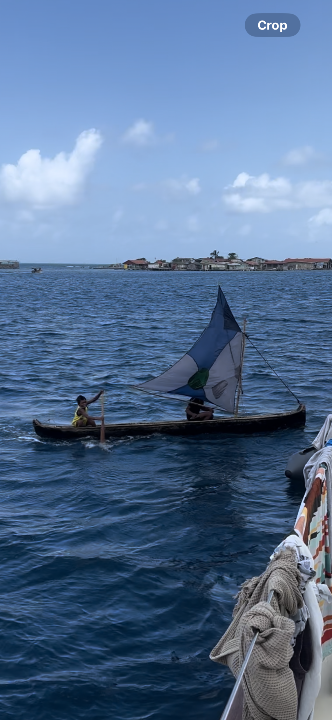 I quickly split the crew into groups to be shuttled to an island that consisted of a small runway, a volleyball court, two hammocks, immigration services, and a military base, of course. Afterward, we came back to the boat to start getting Argo ready for her next date with the ocean. While we were preparing to wash the deck, Mac bought ten coconuts to share from a local man who pulled along our starboard side in his dugout canoe. For lunch, we had some amazing baguette sandwiches prepared by Alexandra, which reminded me of the time we spent in Les Saintes. I spent a good amount of time cleaning and wiping down different bilges below the deck while others either cleaned the saloon, prepared food, or washed the deck. BA is an all-hands-on-deck activity, to say the least. We finished up the day by having some jump in showers and a quick oceanography class before getting into dinner. It is an odd feeling thinking about how every student on this boat decided to embark on this journey for a multitude of different reasons, and less than a month ago, we had no idea what to expect getting onto a boat full of people we’d never met before. Yet now we are a family of sorts, dysfunctional like most, yet determined to achieve a common goal. Can’t forget that some of the locals will put a mast, boom, and small sail on their canoe and sail around the bay, which I think is sick!