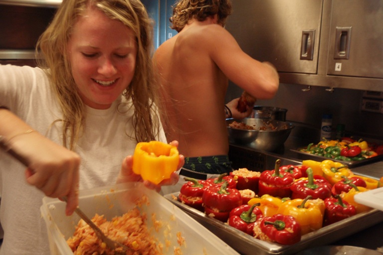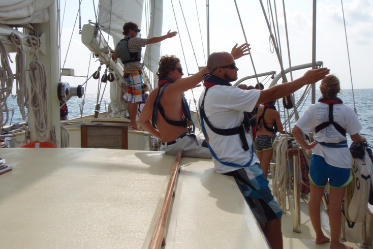 Another good day in the Java Sea! We are currently about halfway into our passage from Kumai to the Gili Islands. Watch Team 2 continues to have fun on watch – this morning’s theme was riddles, and we had a few people stumped for the whole 3 hours. Spirits were high as we went to bed at 6 am, with thoughts like “10 fish I caught without the eye. I can do the bottle dance, can you!” running through our minds. We were back on deck for the lunchtime shift from 12-3. During this time, we had classes and lunch. Today, we had an MTE (Sailing) class followed by an OCB (Marine Biology) class, where we learned about some of the interesting ecological relationships in the marine environment. At 3 pm, we jumped forward an hour to Bali time, allowing us to take advantage of the daylight for dinner underway. Showers were enjoyed under the saltwater “power shower,” and dinner at 6 pm. As we continue on our journey, the deck quiets down again, and the watches continue through the night. The most amazing thing on our 9-12 watch was the bioluminescent plankton, which was extremely bright due to the lack of moon tonightanother great day on Argo.