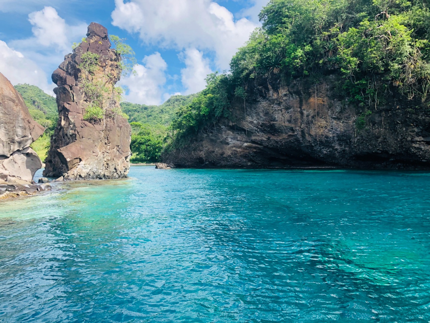 Pic 13: The volcanic island drop off 2m depth to 40m in a single photo