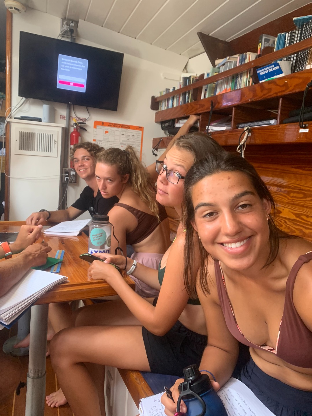 Lunch was vegetarian tacos complete with guacamole and ~spicy~ salsa. After lunch, we split off into two groups to go diving. One of the first official fun dives of the trip, this dive set a high standard. The dive had unique topography and loads of marine life. People saw squid, eel, smooth trunkfish, and a fireworm. While one group was away, the rest continued to work tirelessly on their papers. Around 2:30, dive group 1 returned, and the roles were switched. Any free time today was spent working on the literature review or procrastinating the paper with yesterday’s snacks. Dinner was eggplant curry with yams and rice, and the squeeze question was what Crayola color best describes your personality.
