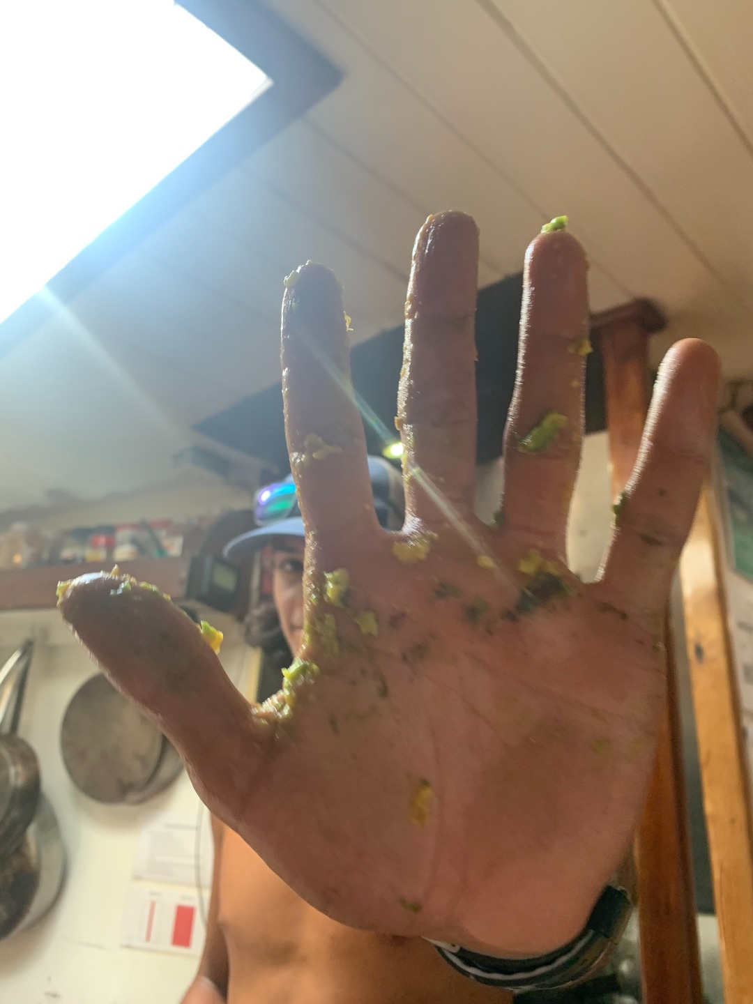 Pic 7: Luke attacking the camera with mushy avocado hands