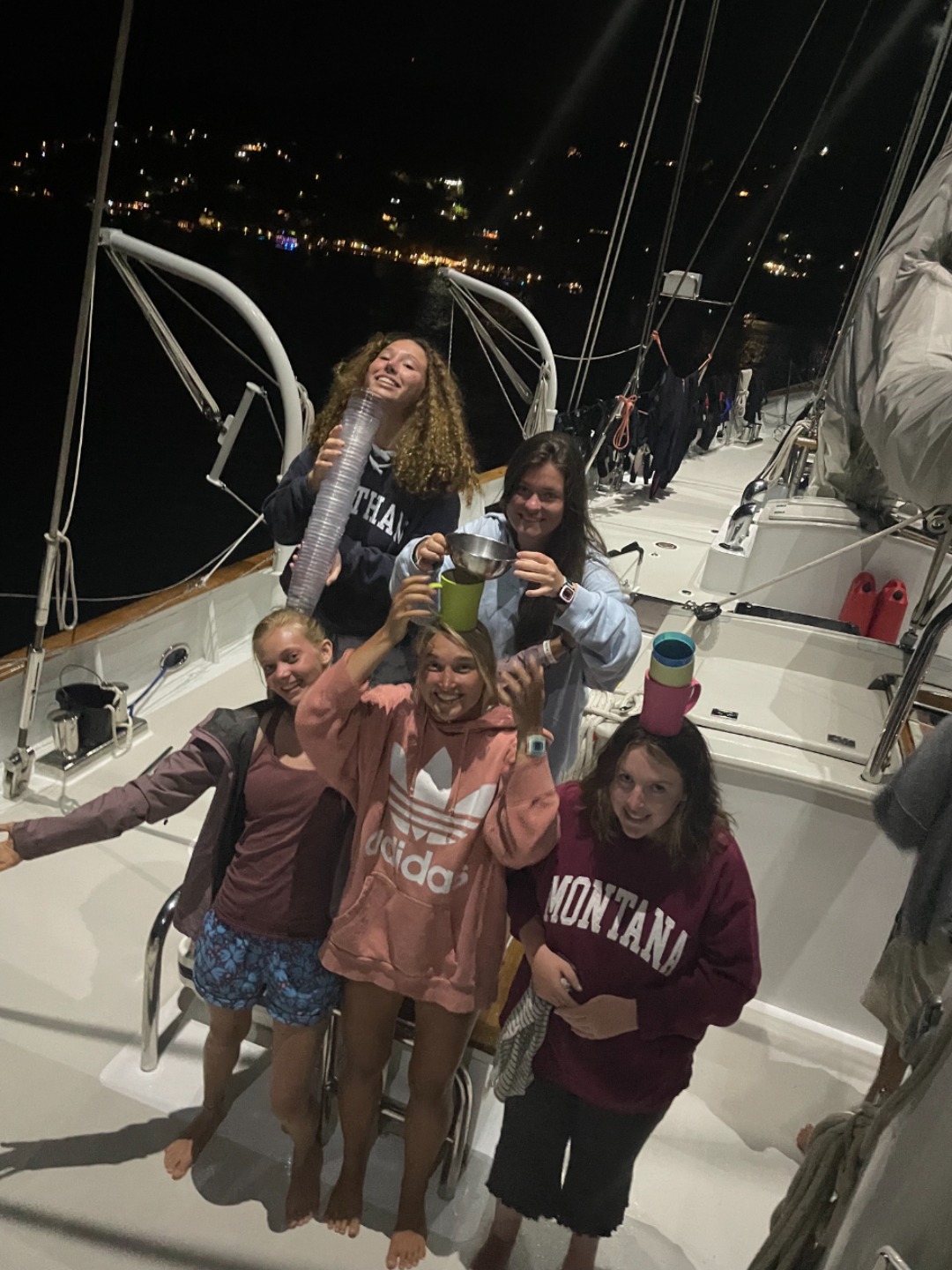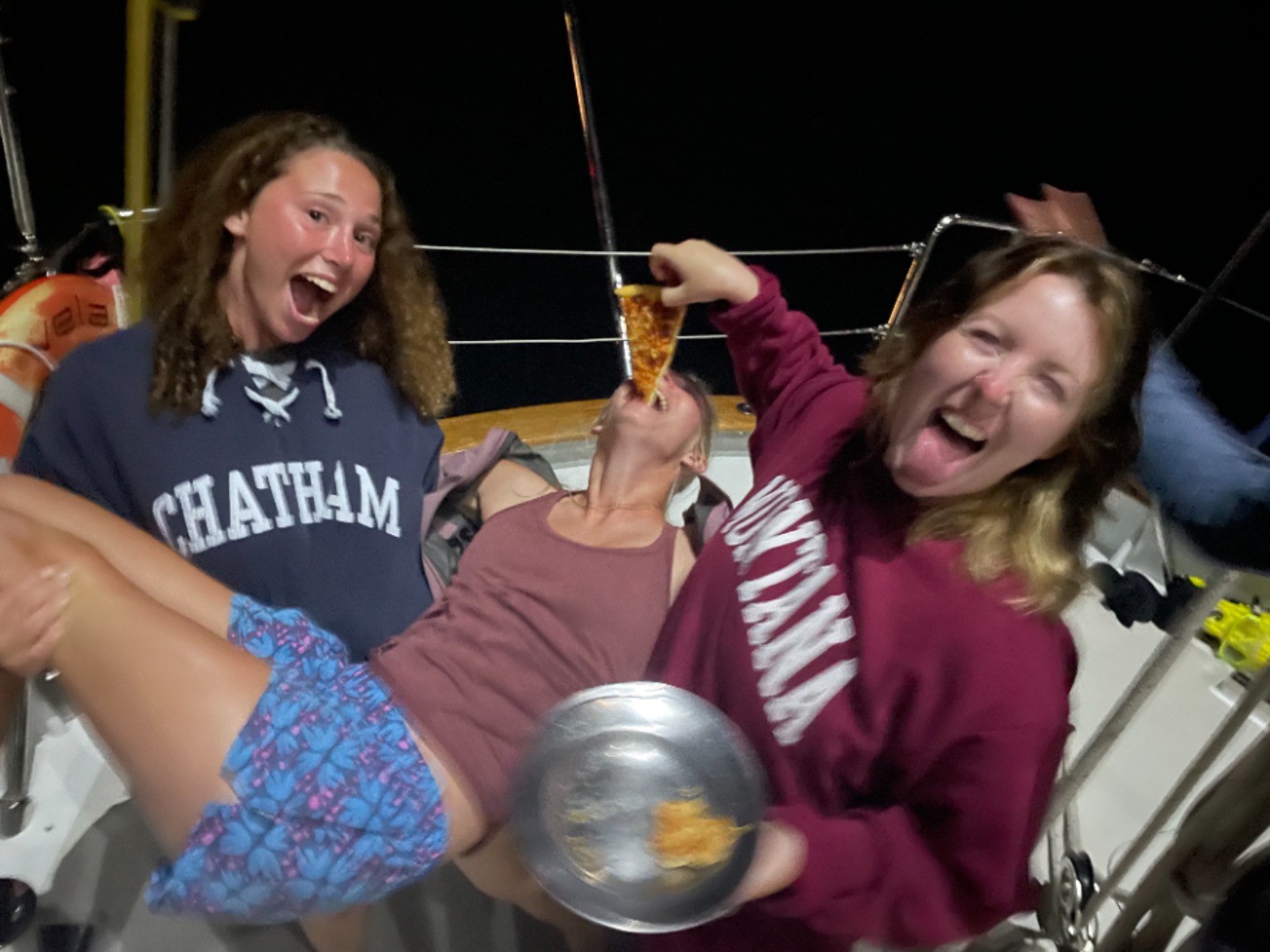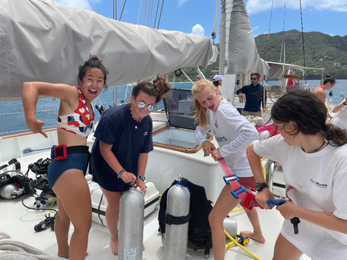 Today was a busy day filled with diving, EFR class, and a pizza party with our new friends from Ocean Star! We started the morning with a delicious banana bread breakfast, thanks Smash! After cleanup, half of the group embarked on a fish identification/ fun dive. They saw sea turtles, dozens of fish species, and beautiful coral. Back at the boat, the other half worked towards our Emergency First Responder certification. For lunch, we had delicious BBQ sandwiches served with fresh plantains. After lunch, we swapped activities and the second group went on their dive. We saw so many trunkfish, eels, and the most massive yellow snapper. At one point, Carolyn and Anna excitedly pointed to a rock. Only when part of the rock started moving did I realize there were two camouflaged scorpionfish! I also saw so many sponges, which, thanks to Dylan, I now know are actually animals. We dove for over an hour before surfacing and returning to Vela via an extremely choppy dinghy ride. Back at Vela, we prepared to meet our Ocean Star rivals. Ellie drew them a map of the boat, including a key of Alyssas several hot sauce bottles and Audreys miscellaneous belongings spread throughout the boat. The Ocean Star crew arrived in the evening, and we all enjoyed getting to know each other. We loved comparing the boats, and now the Vela crew has an added appreciation for our flushing toilets and freezer in our spacious galley. Everyone loved the pizza (brought in from the shore, NOT cooked by our pizza chef Audrey). We spent the evening dancing and singing sea shanties with our new friends. Were so excited to reunite during Classics in Antigua!