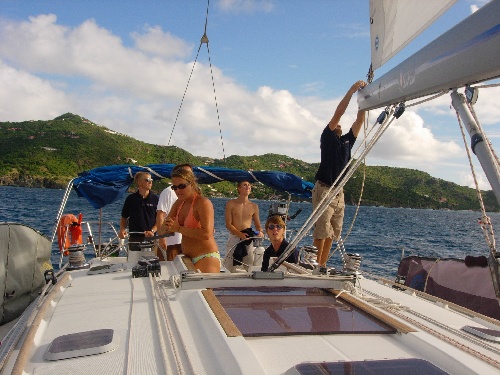Today was my 20th birthday, which proved to be a memorable occasion for me. We cruised into Gustavia at 7:30. All decked out in our Sea|mester polo shirts. Upon seeing us looking so fine and orderly, some of Ocean Star shipmates burst into laughter, which was painfully obvious to be rooted in jealousy. After clearing out of France for the last time and taking on more freshwater, we headed to Statia. It was a rocky downwind sail, during which our fine vessel broad-reached and jibed for 30 miles to our destination. A few felt sick, but none had booted by the time we rounded the northern tip of the island and navigated through the tugs and oil tankers at work off Statia. After dinner (and a wonderful birthday cake), we met on Ocean Star for our last Oceanography lecture, a fun 30-minute affair. The male crew switches boats in a couple of days. We will certainly be sad to leave Near Enough. It feels good to not be a teenager anymore.