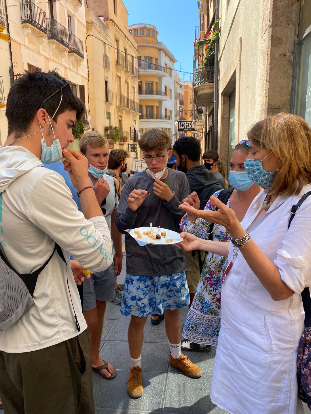 Our walk through the city was lovely. Lores led us through the quaint little streets and the large busy avenues, which are rich with history and culture. The buildings were practically built inside the ancient city wall! We stopped at a farmer’s market for lunch, where many of us bought an ample supply of fresh fruits and Jamon sandwiches, and we were again on our way. Lores brought us to a turron shop where we all had a taste of the local delicacy, and we then went to the National Archaeological Museum of Tarragona. We then finished our tour at the Roman amphitheater. Following the tour, we went our separate ways, some to the beach and others to shops and restaurants. Today was a day of history, appreciation, and goodbyes, and it was a great experience.