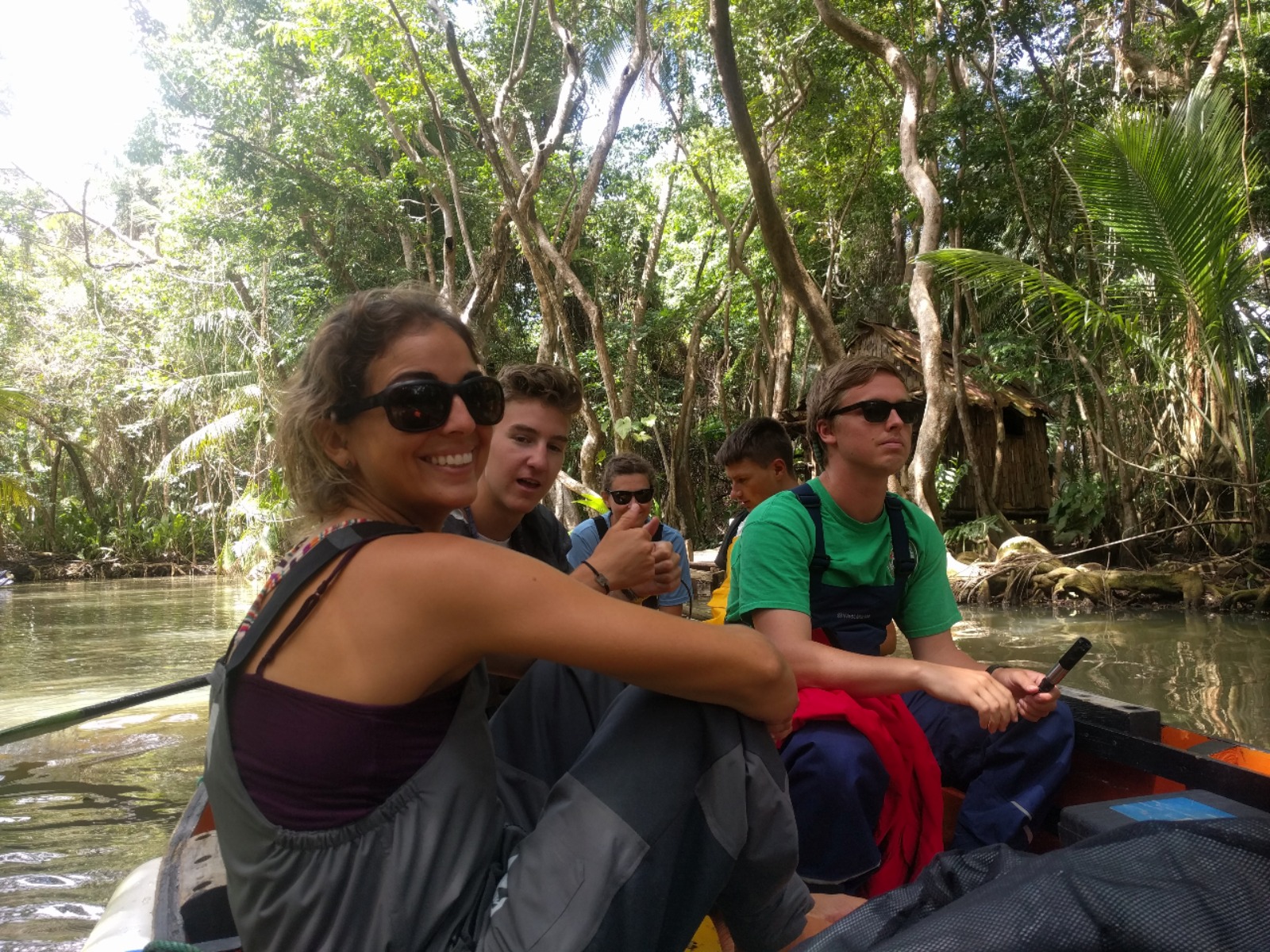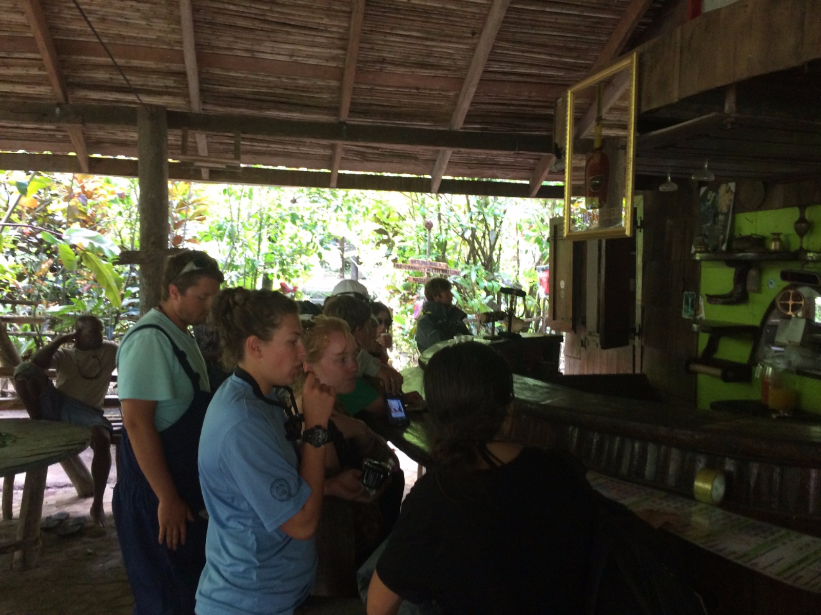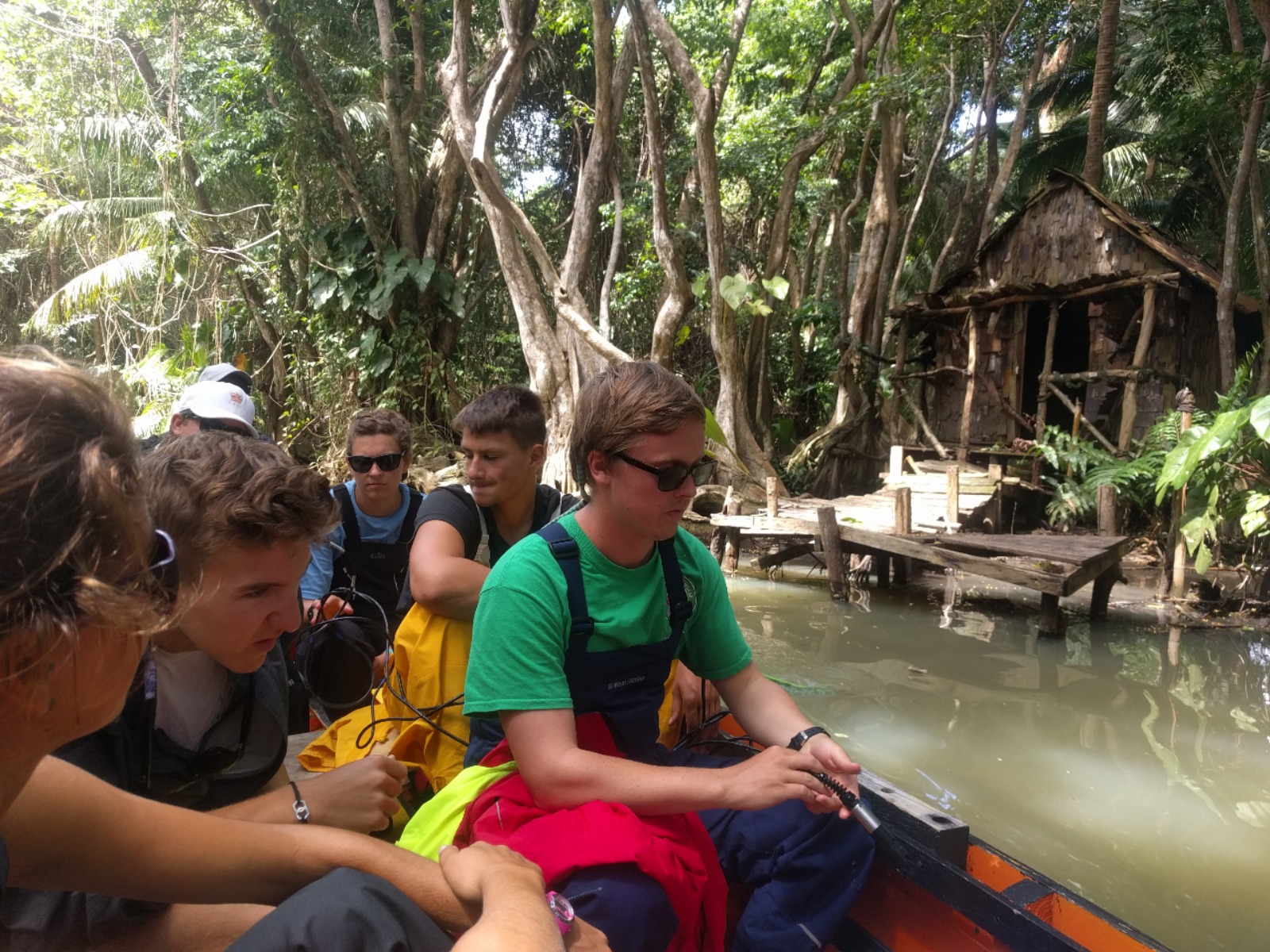 Additionally, Sea|mester has been taking readings along the Indian River since 2006, which helps us, students and locals alike, to better see trends in the information. As our tour guide paddled us up the river, we made a stop at the location that was used to film Tia Dalma’s shack in Pirates of the Caribbean 2. While the original shack is no longer there, another similar one in appearance has been built in its place. Seeing a variety of crabs and birds along the way, we continued up the river until we reached a small bar/hut where we stopped, ate our lunch, ordered a few local fruit juices, and explored a few small trails. With our stomachs now full, we piled back into the boats for our trip back downriver. This time, the front boat took the same readings to verify our accuracy, but also to ensure that everyone had a chance to use the equipment. Once we arrived back at Ocean Star, it was time short OCB class with Steph, followed by a rescue dive class, and then a little bit of “free” time, which most of us used to study or complete assignments. Micaela and Ciara presented us with an amazing homemade pizza dinner, which was eaten so quickly you wouldn’t have even known it was there, were it not for the dirty dishes the crew would soon clean. After finishing this trip log, it is off to leadership class with Ian and then to bed to rest up for the adventures tomorrow holds.