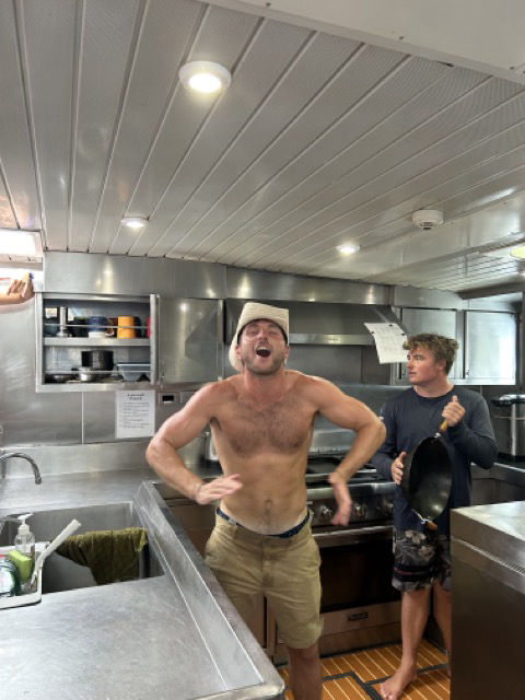 Now as the sun slips below the horizon, the bugs return, and the temperature is dropping. The humidity isn’t, though. We have one more class period to go before more free time and studying, which is Leadership with our captain, Tom. Not only are we learning about the Ocean around us with our wonderful professors, Ben and Heather, but we get to learn about people as well. Leadership is shaping up to be a fun and engaging course, and there is more fun stuff planned for leadership very soon, but I’ll let that day’s skipper tell you about it. ;^)