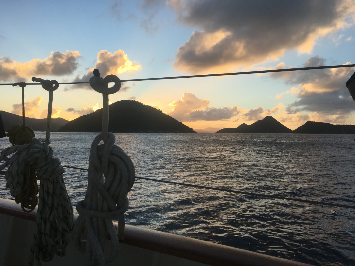 As our time on Argo nears its end, we have to remember, way back 88 days ago, to what our home looked like when we first stepped on board. Although we tried our best to keep her looking spotless, Argo needed some severe deep cleaning. After a delicious breakfast of burritos and home fries, we geared up to get some work done. Rust busting the Laz (scrubbing off the rust from the under-deck storage compartment), cleaning the grey water tanks (everyone’s worst nightmare), deep cleaned both the fridge and the freezer (this involves getting inside of them), cleaning out all of our dive gear; BCD’s, weight belts, regulators and dive bags, rust busting the deck boxes and line lockers, removing the fisherman sail and flaked it extremely well (‘it really sucked’ -Natalie), and many more dirty jobs. Sadly by the end of the day, our bunks were emptied, and we threw all of our dirty clothes into our duffles; the forward cabins are now looking slightly less like 22 students took them over. Once the dirty jobs were over, we had some free time to enjoy the beautiful water for one of the last times. Backflips and front flips were attempted, and some were successful, others not so much. It felt like day one again, with no worry in the world, just some friends hanging around having a great time. Some more paperwork completing our dive certifications, as well as final grades and transcripts, were passed out. Our last dinner around the cockpit was a yummy teriyaki chicken with rice and veggies. The last squeeze question was, ‘At this time next week, when you are home alone eating a bowl of cereal or freezing your butt off, what are you going to miss the most about Argo?’ As our second-to-last night came to an end, everyone was hanging around on deck, taking in the beauty that is Argo and her crew.